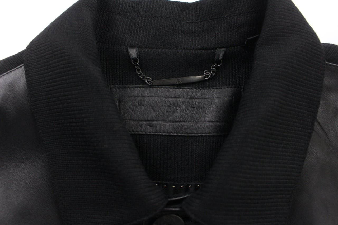 ボディ前面のパッチ部分と袖口がレザーで、それ以外の袖や背中、前面下部などがニット素材で構成されている1着。