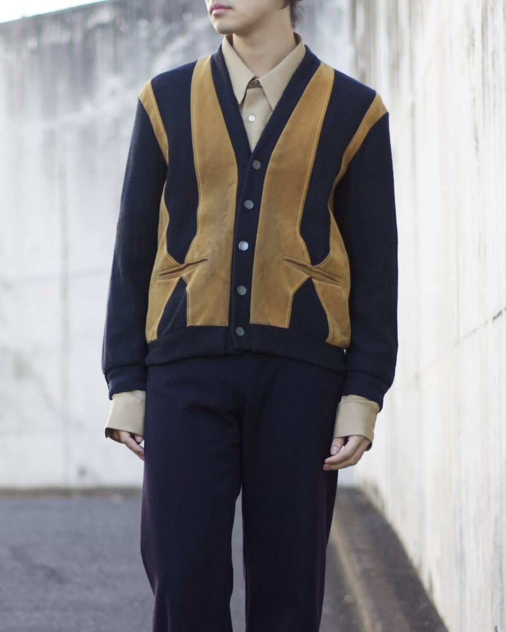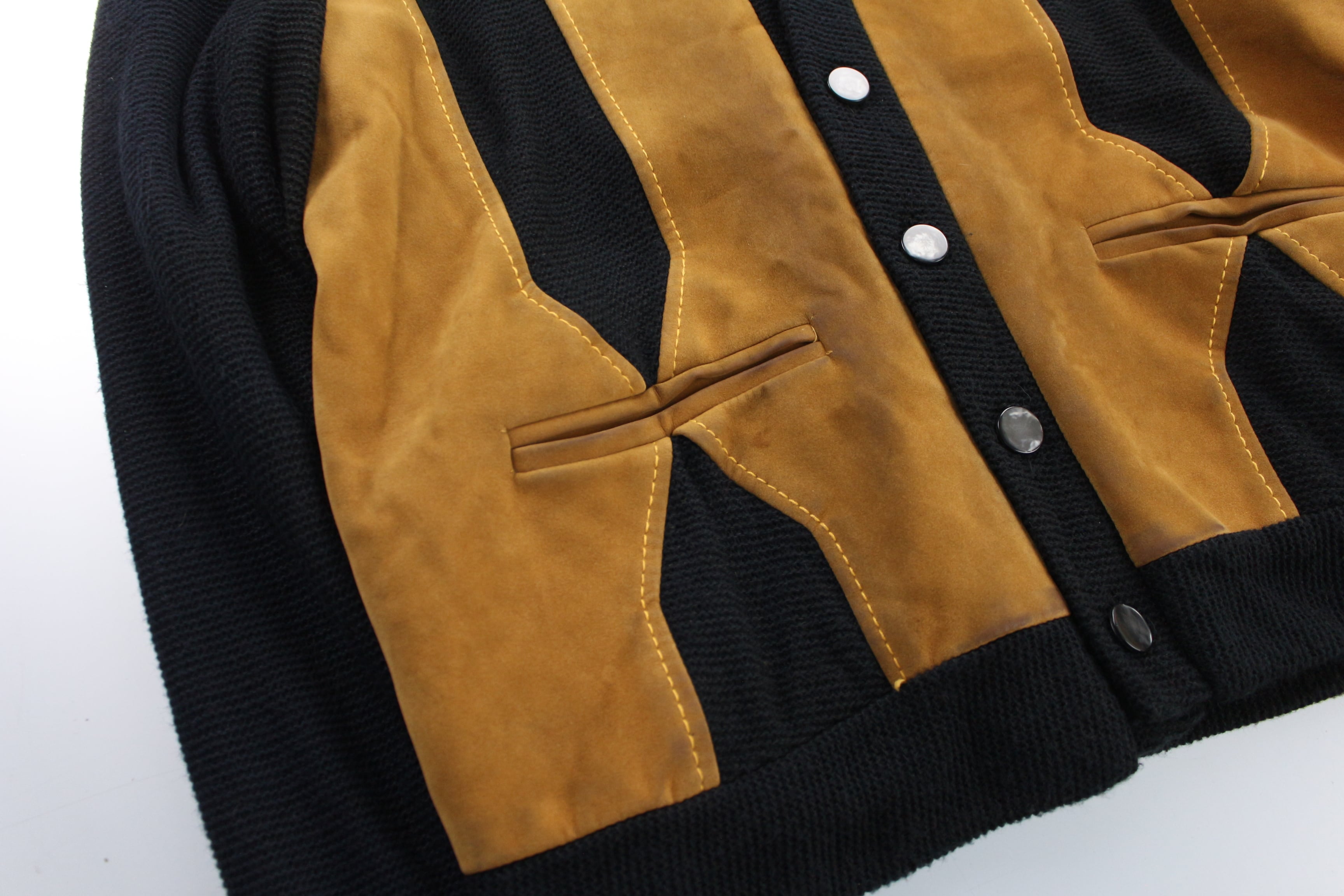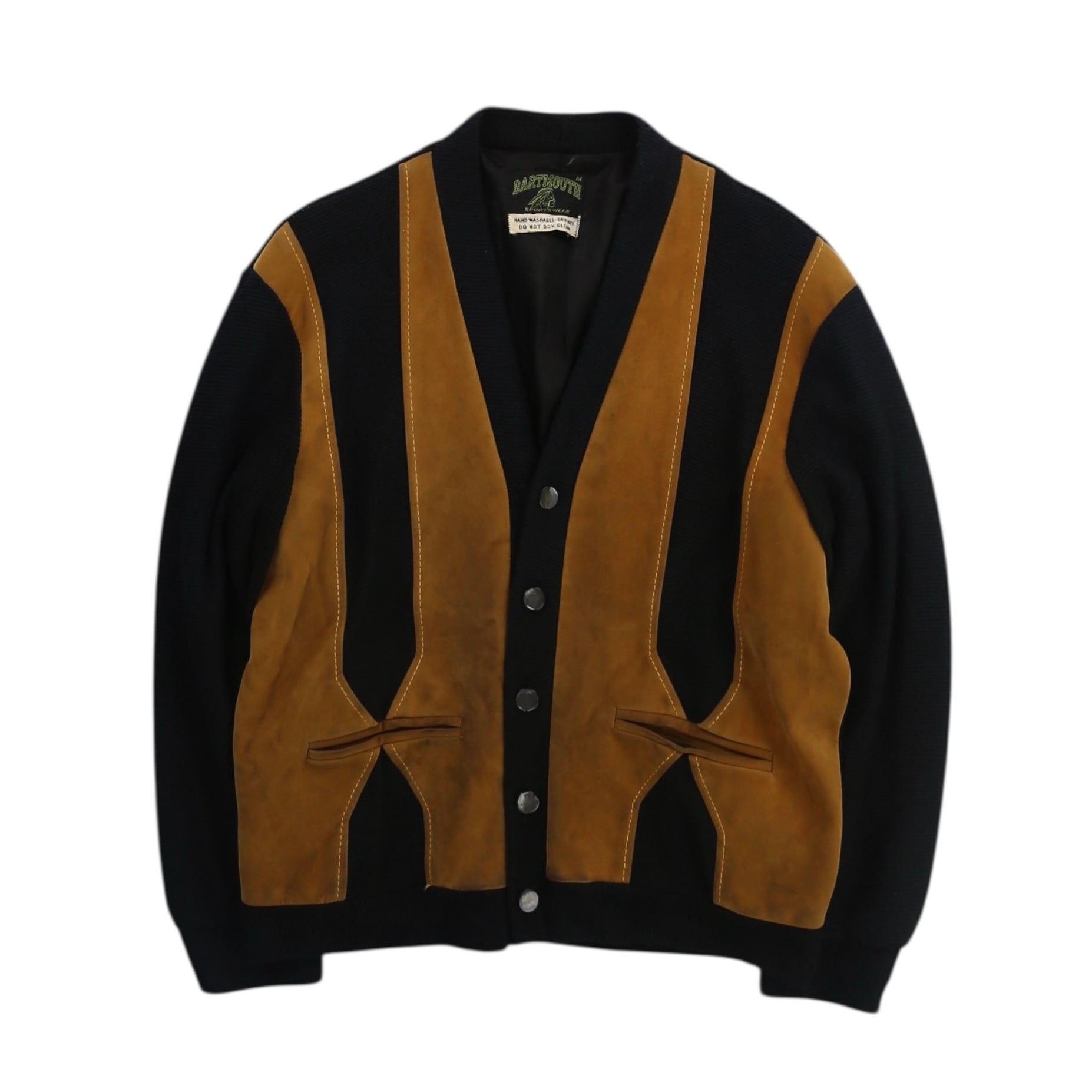 1960's~1970's "DARTMOUTH" leather switching knit cardigan