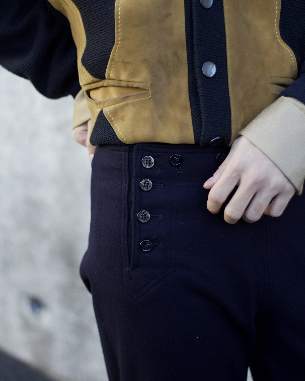 ダークネイビーとイエローベージュ。