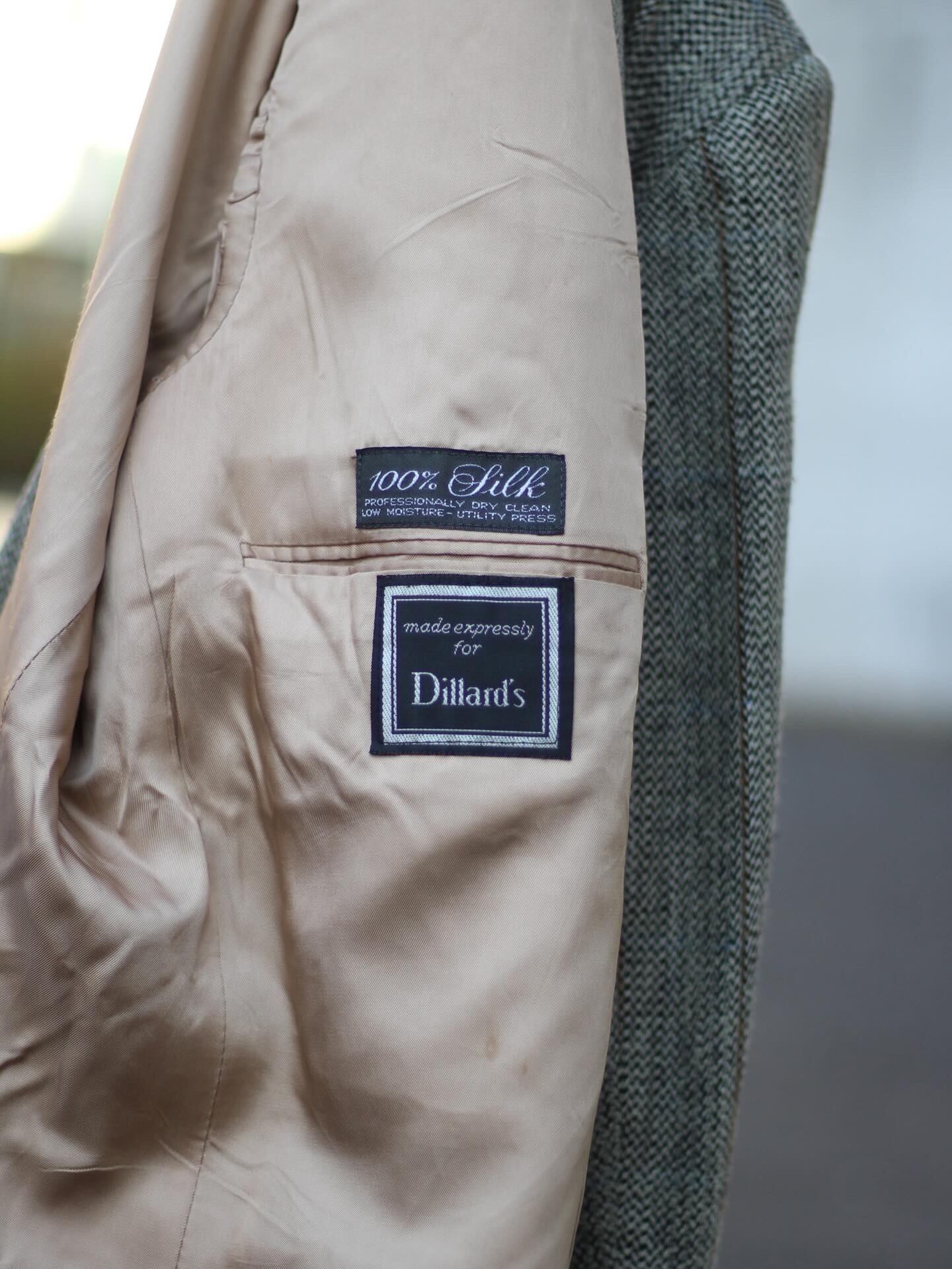 2ボタン構造のクラシックアメリカン寄りのデザインで、Dillard’s(デパート)別注の仕様。
