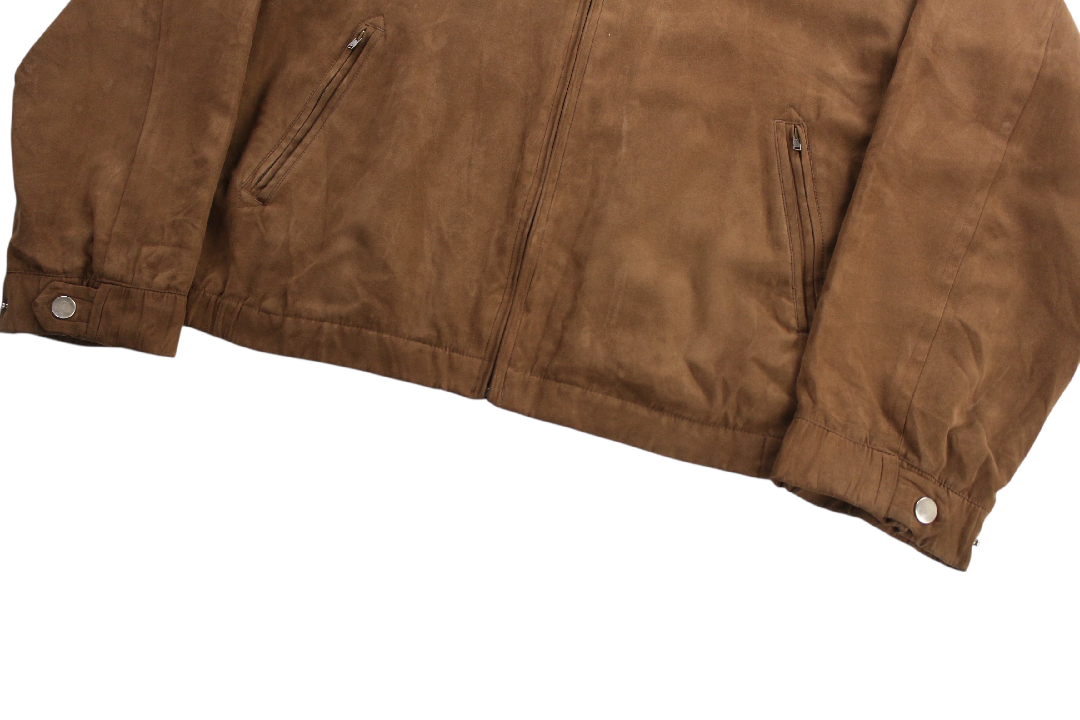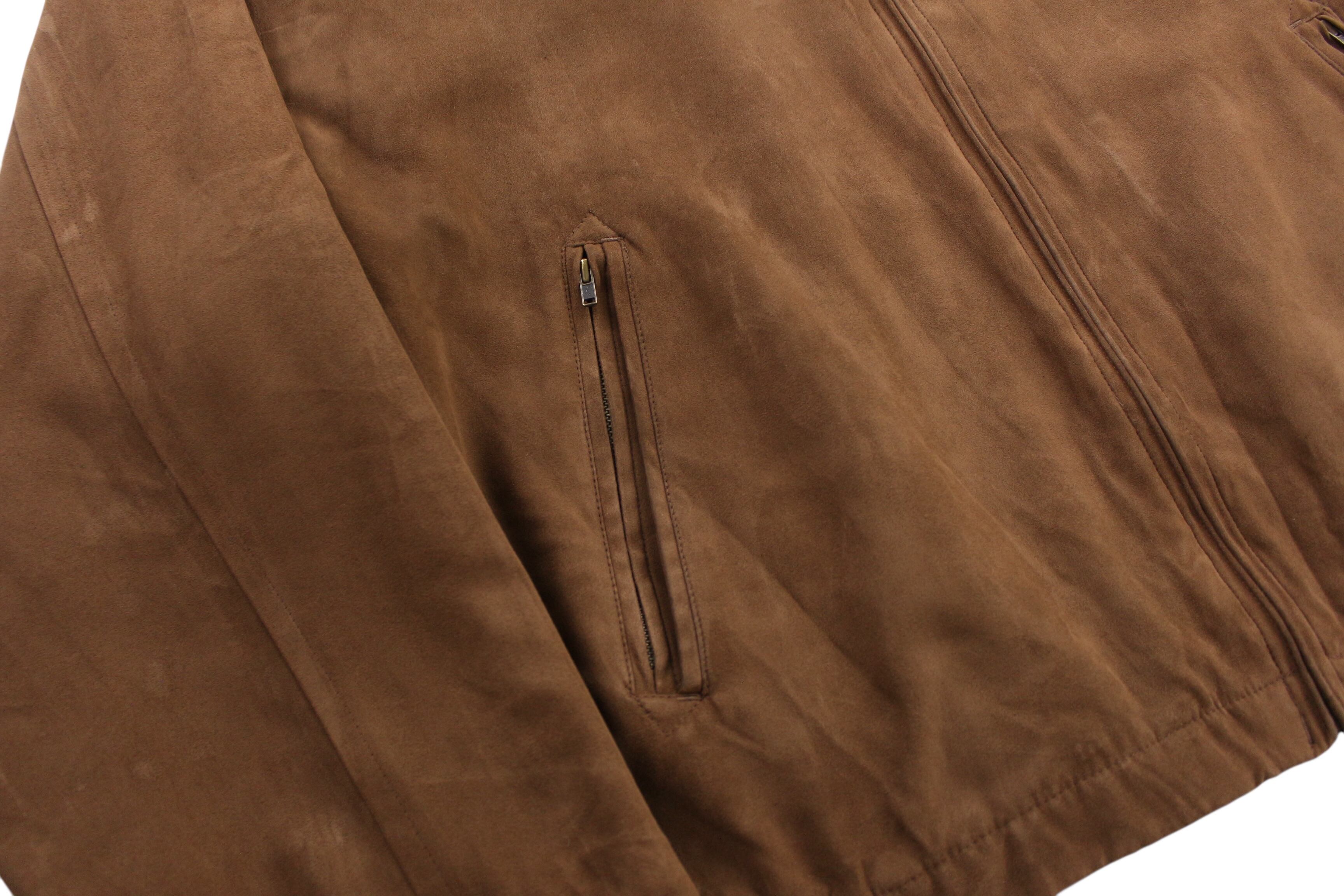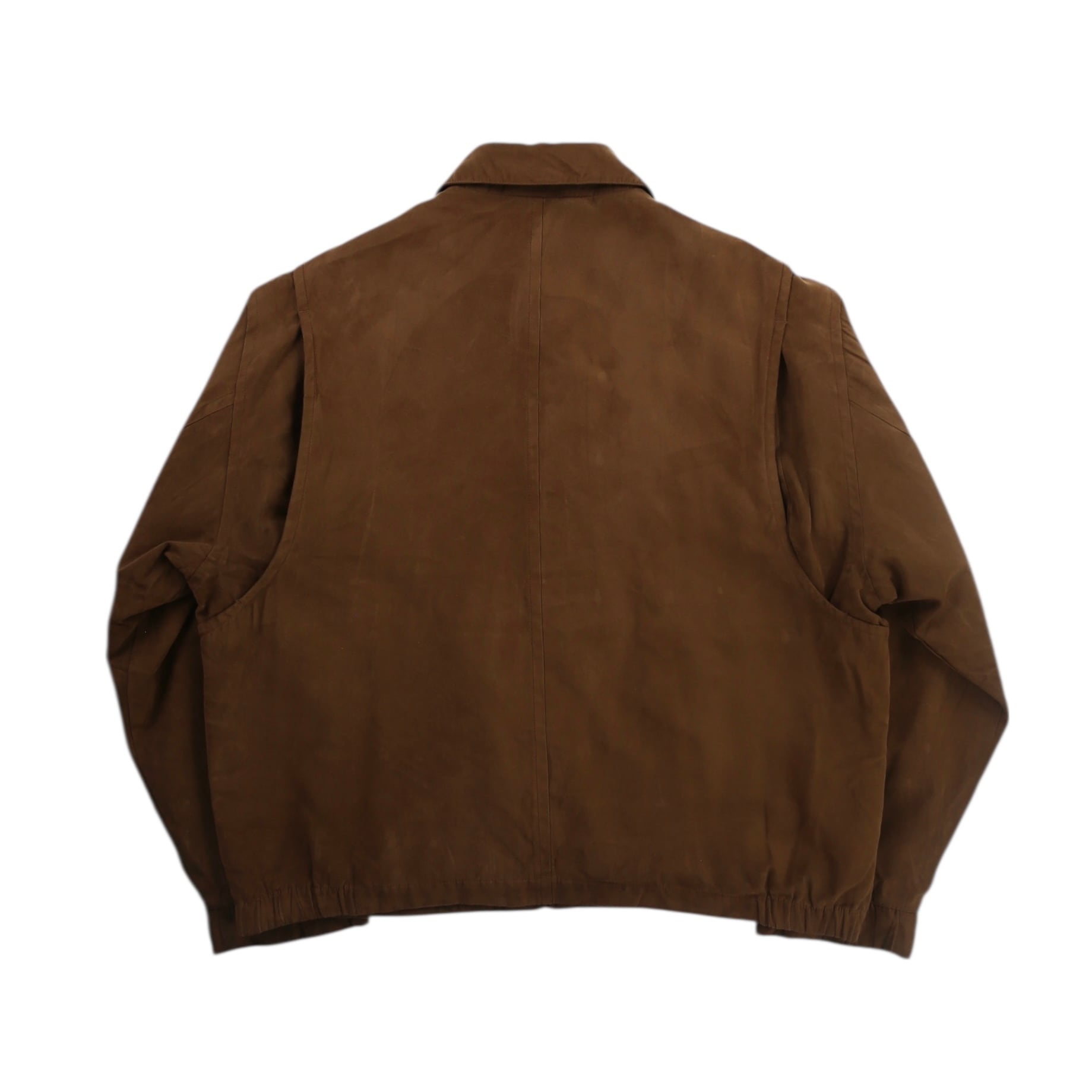 素材感とブラウンのカラーリングがマッチしていて雰囲気のある一着。
