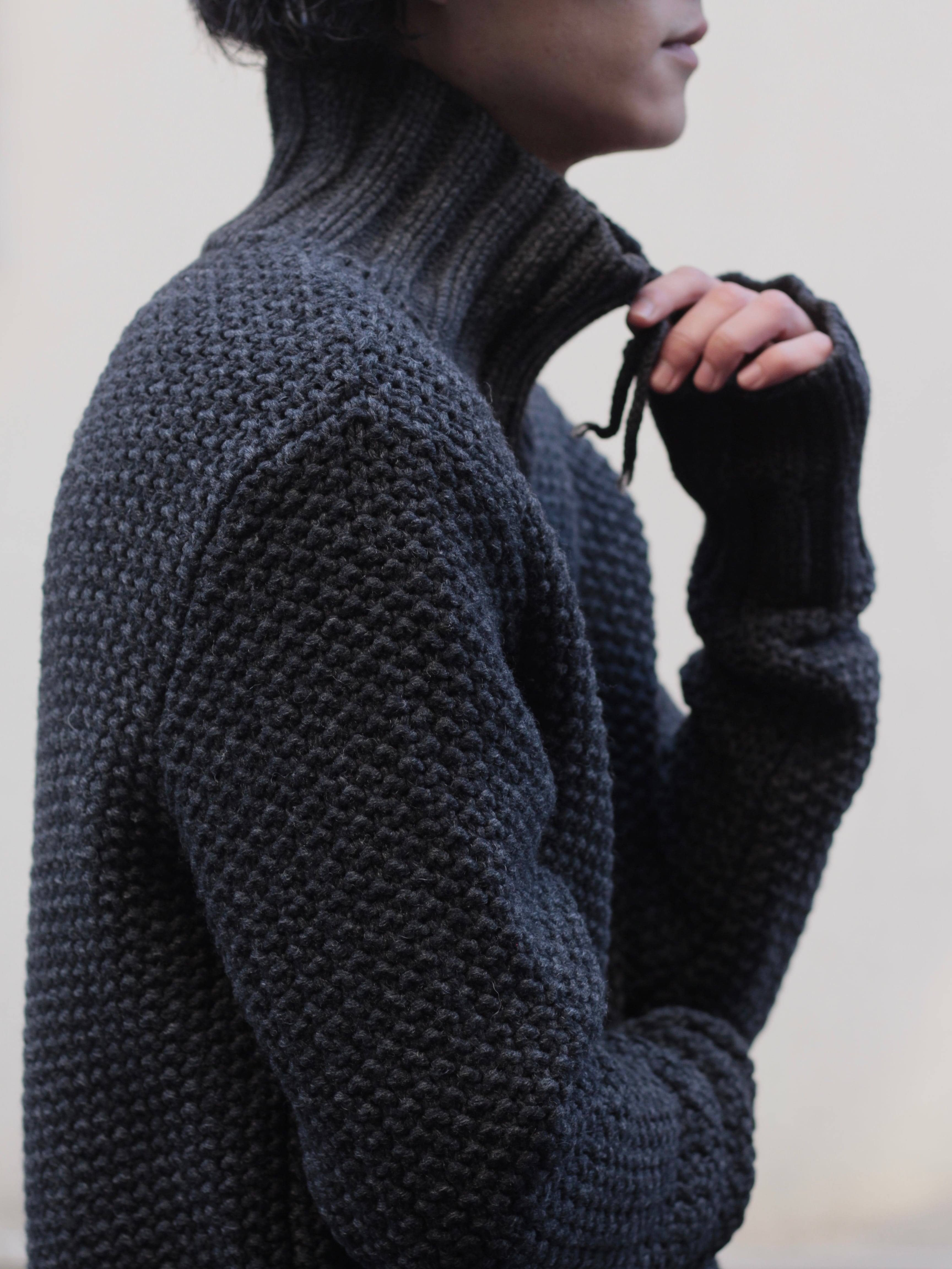 ざっくり編みのローゲージになるので、見た目の存在感+保温性バッチリです◎