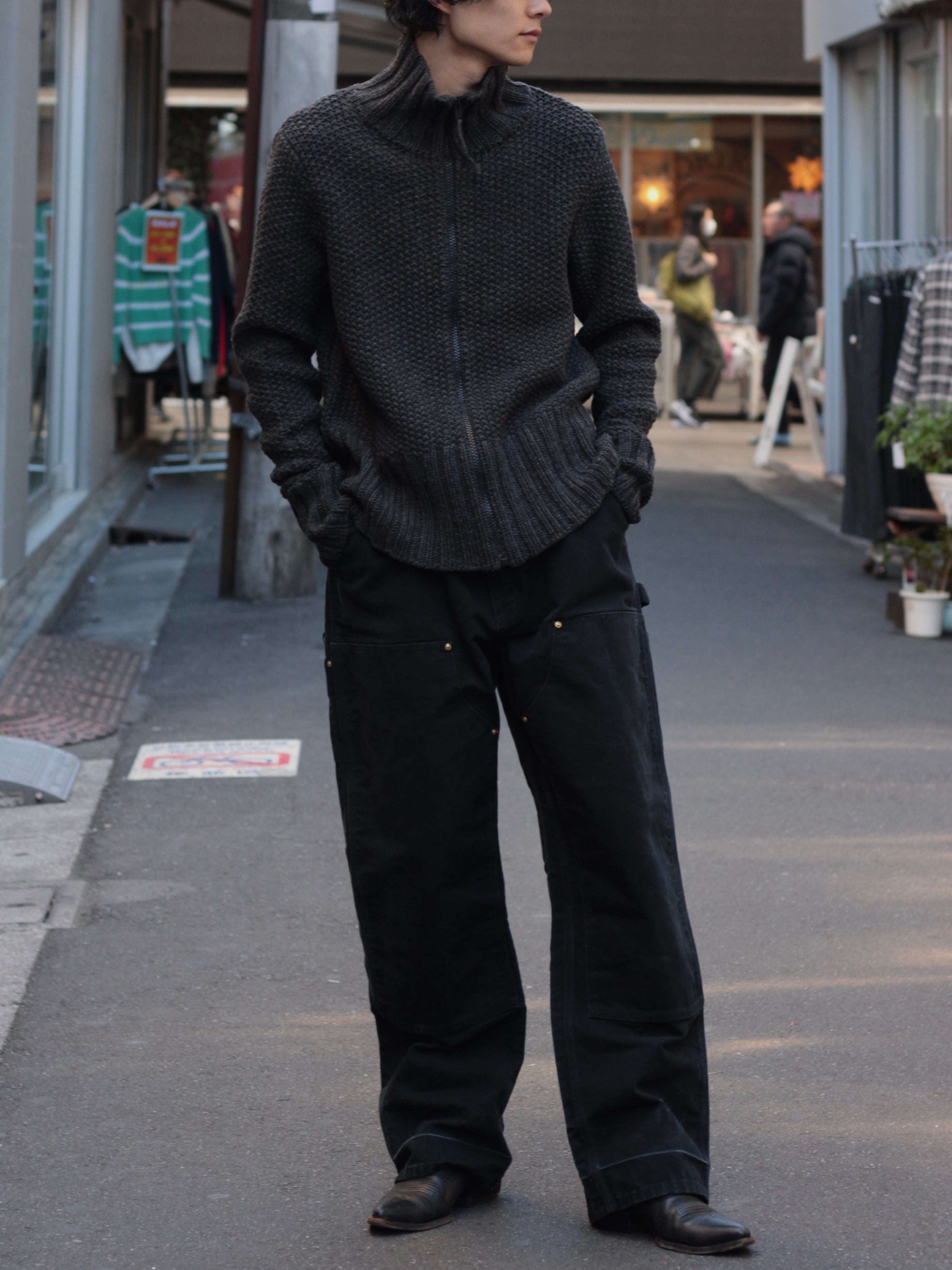 サイズもXLではありますが、そこまで緩さを感じさせないサイジングになりますし、何より着丈が短いので昨今ブームの短丈アウターやワイドパンツとの相性は◎