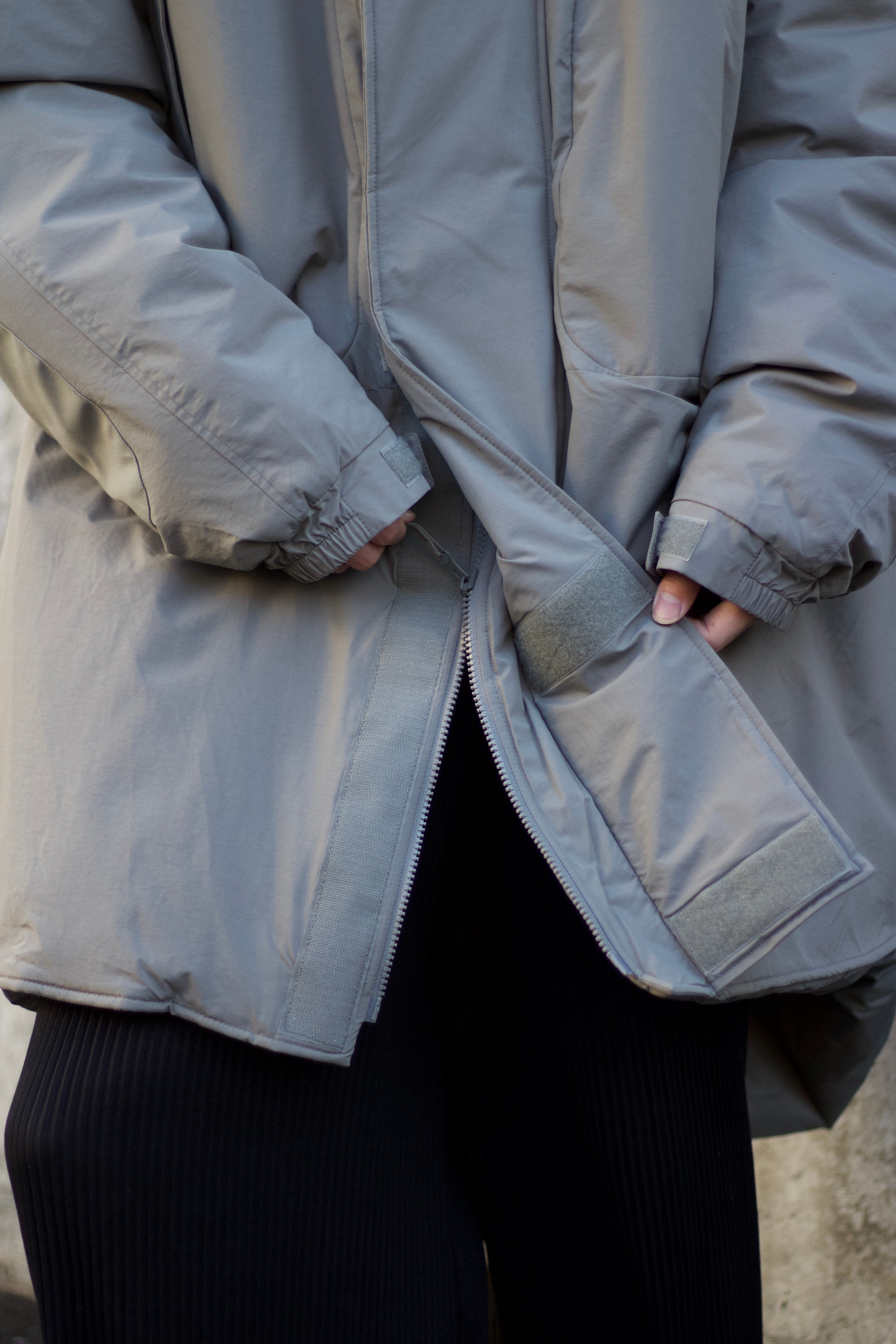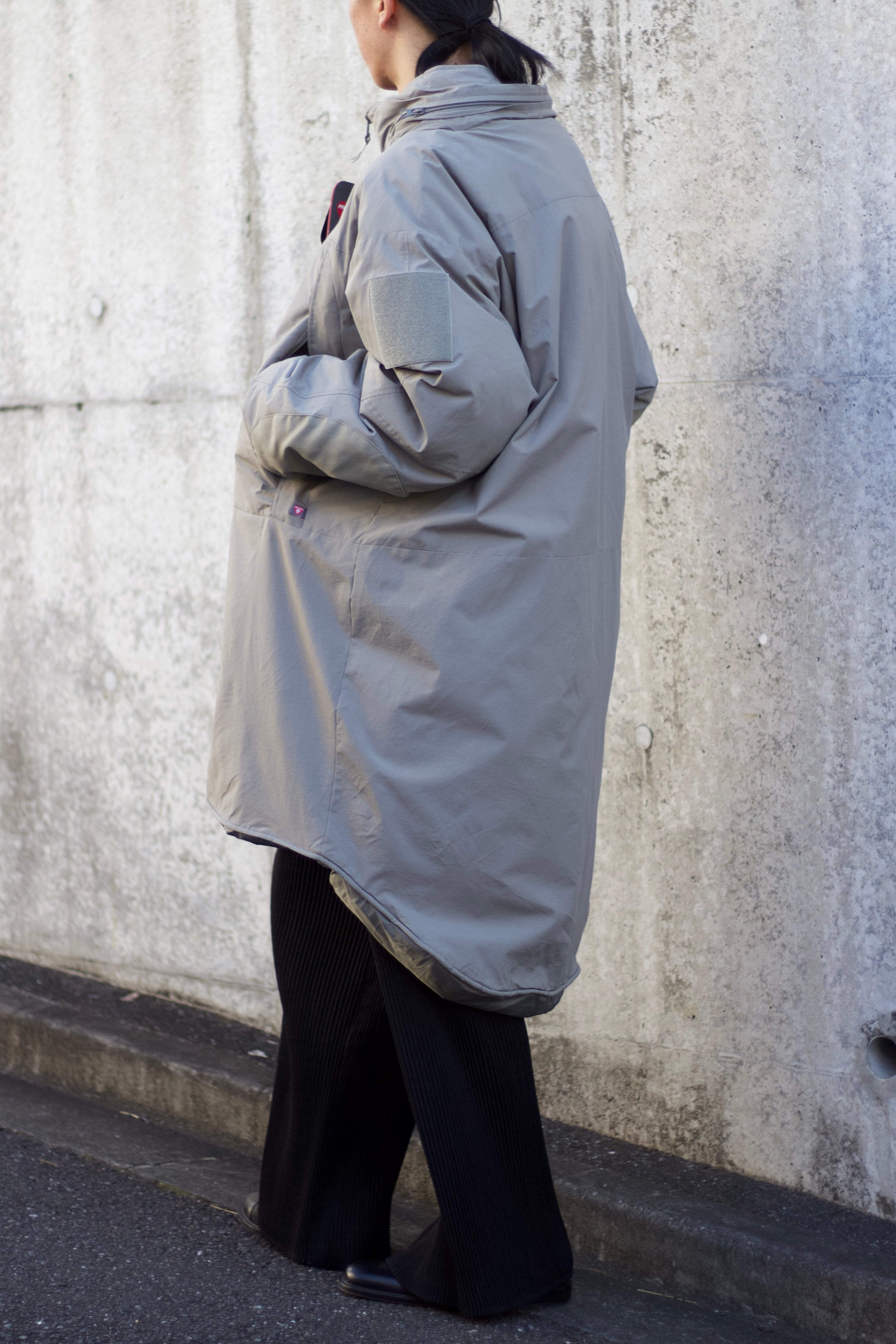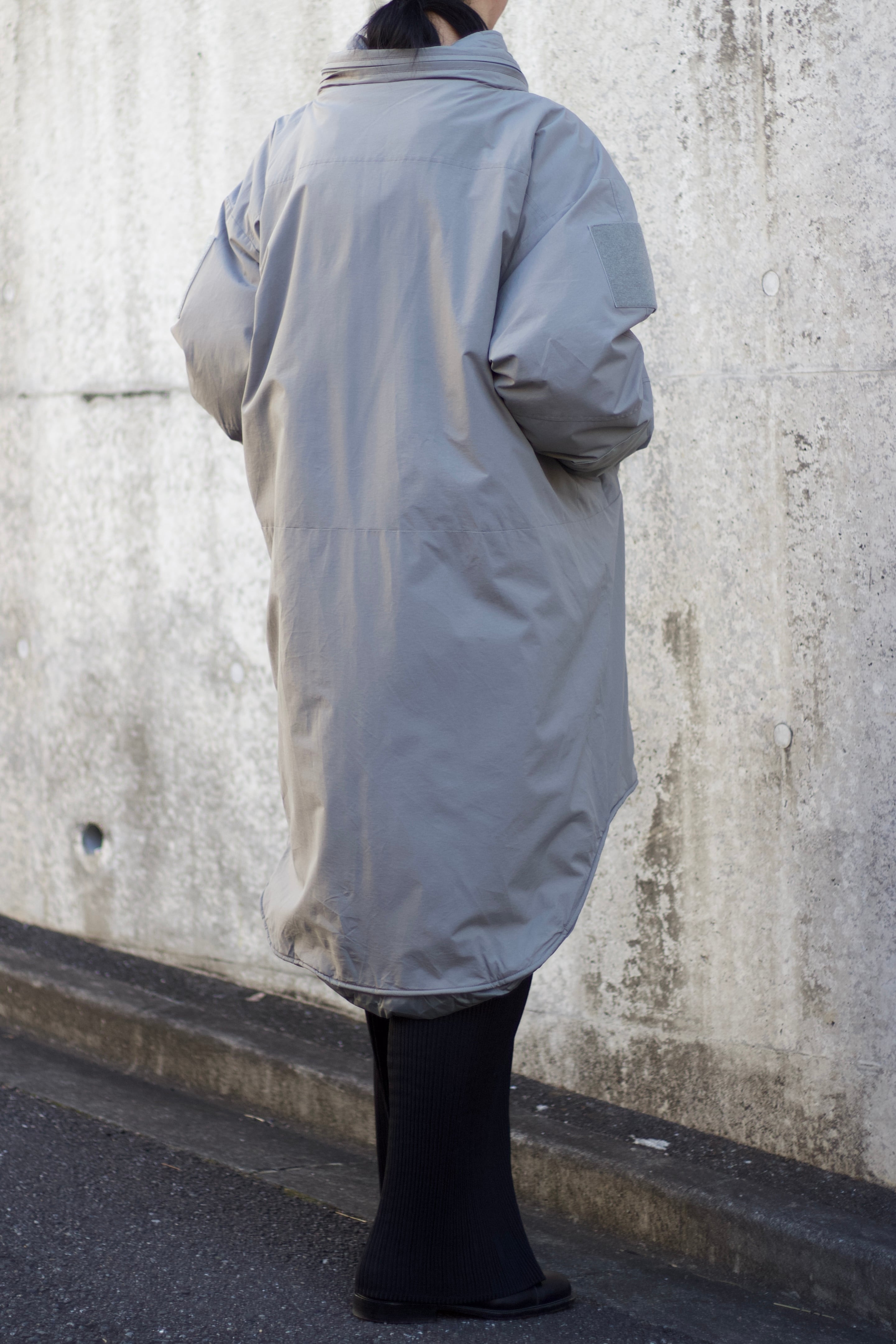 無駄なデザインの無いシンプルな見た目に丸みを帯びたボリュームのあるシルエット、フードは被っても違和感のない大きなサイズで、フードを収納して頂ければ2wayで楽しめます。