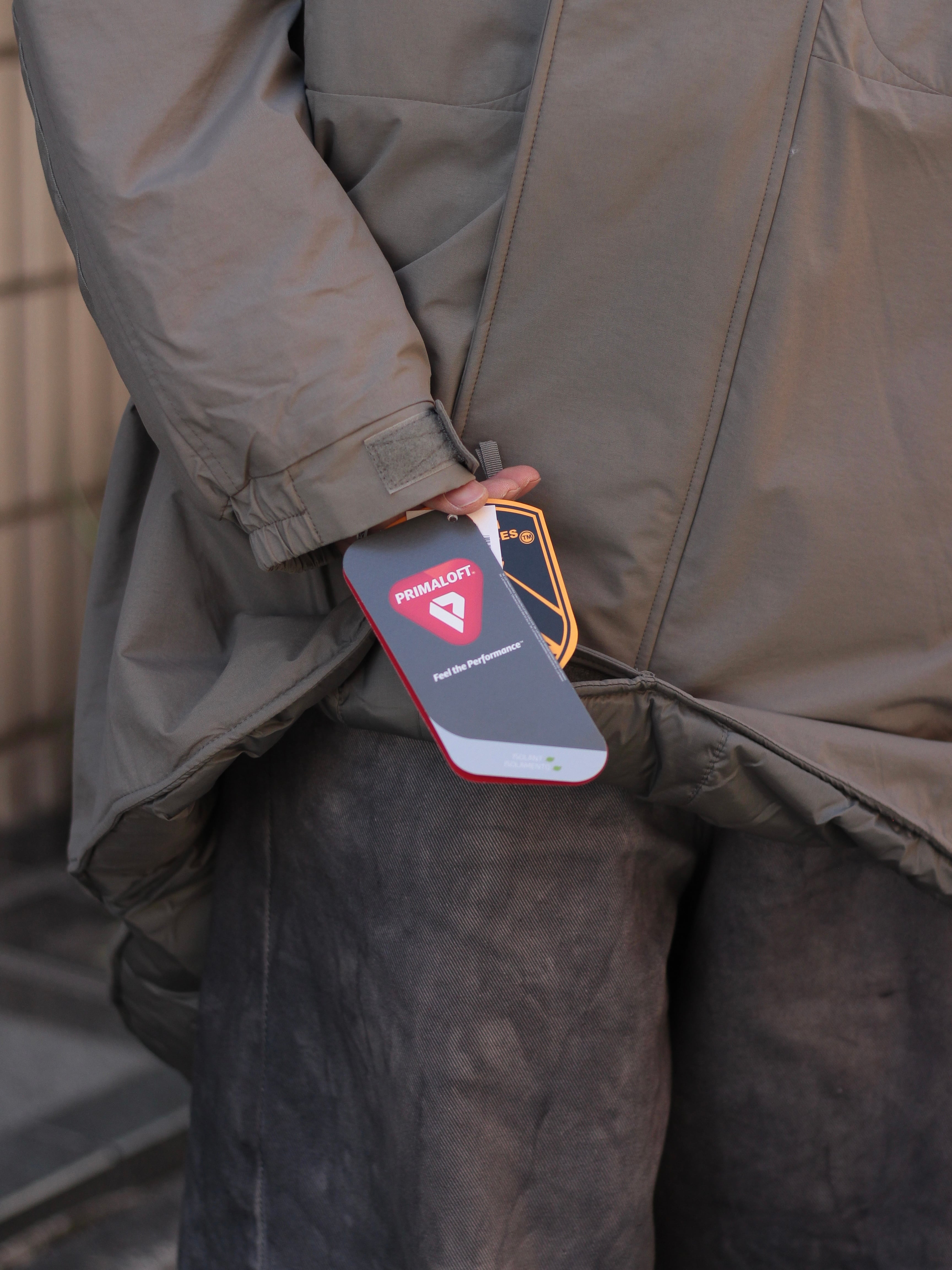 フィルにはプリマロフトを採用しており、米国ALBANY社がアメリカ軍のためにスリーピングバッグの中綿として開発した、ダウンの約8倍の暖かさがあると言われているポリエステルを使用したハイテク素材を採用