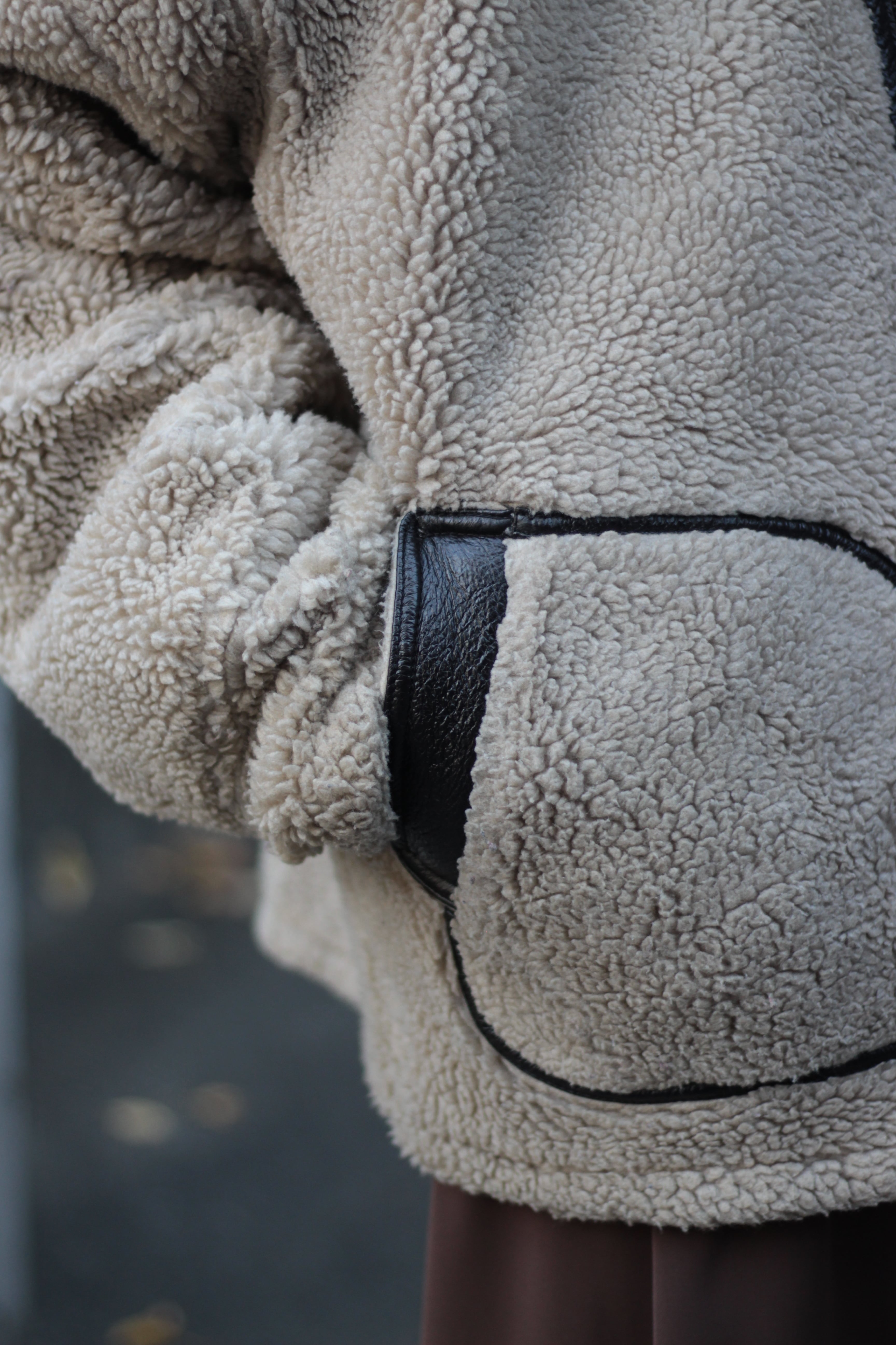 大きい方が軍人さんぽくならずに、ムートンのゴツい印象を少し柔らかくしてくれます☺︎
