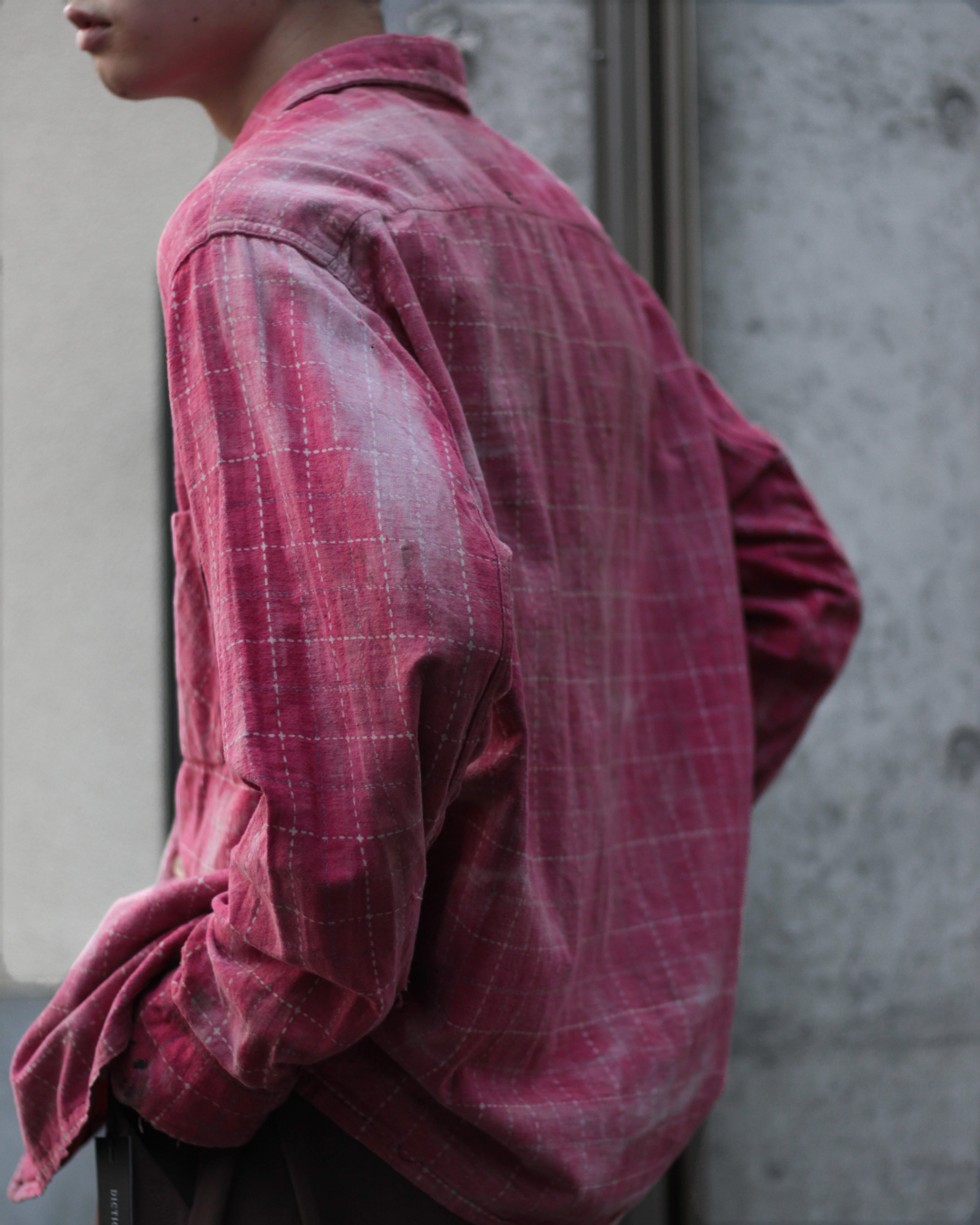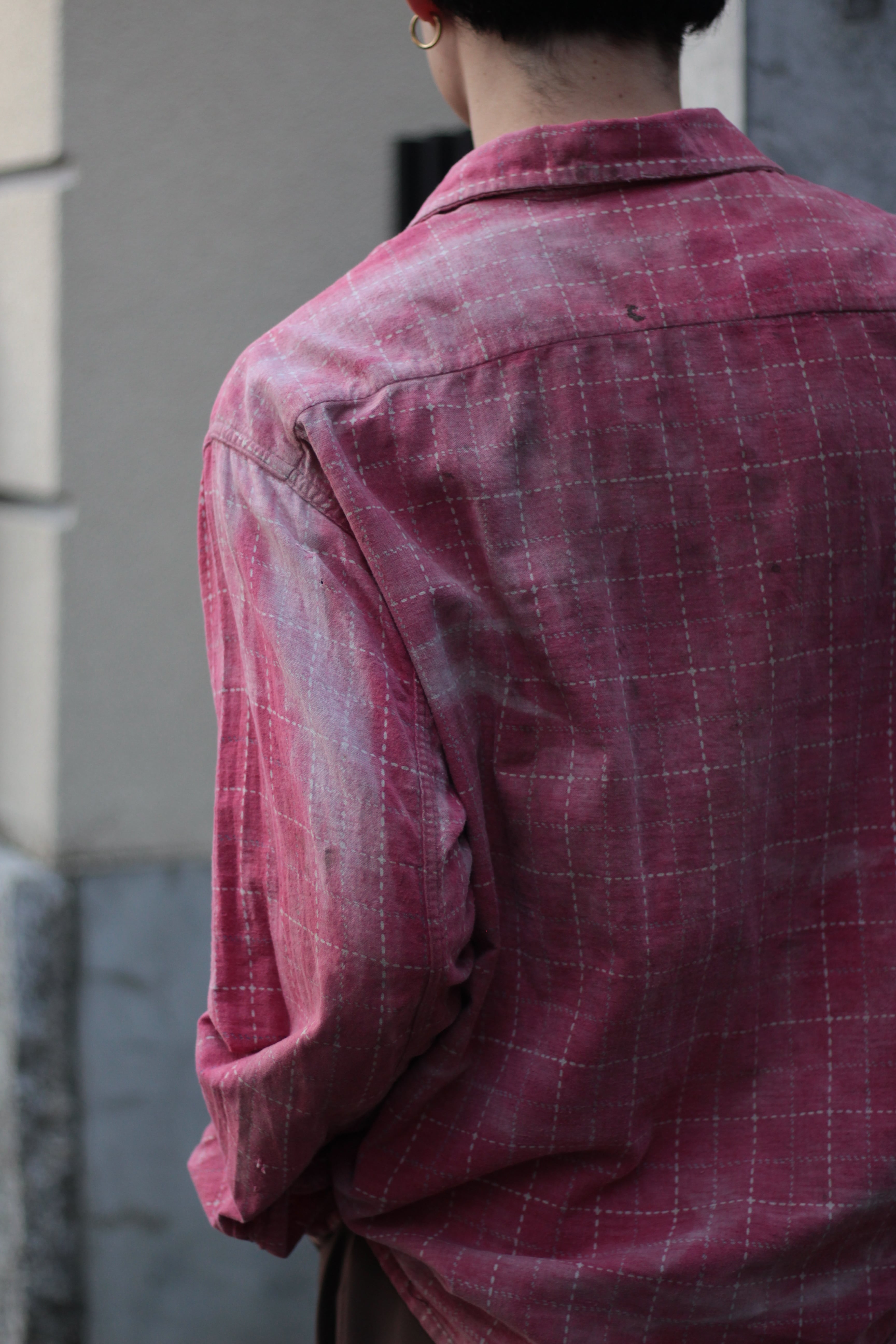 1950s vintage fade×boro print nel shirt【OT-20048】