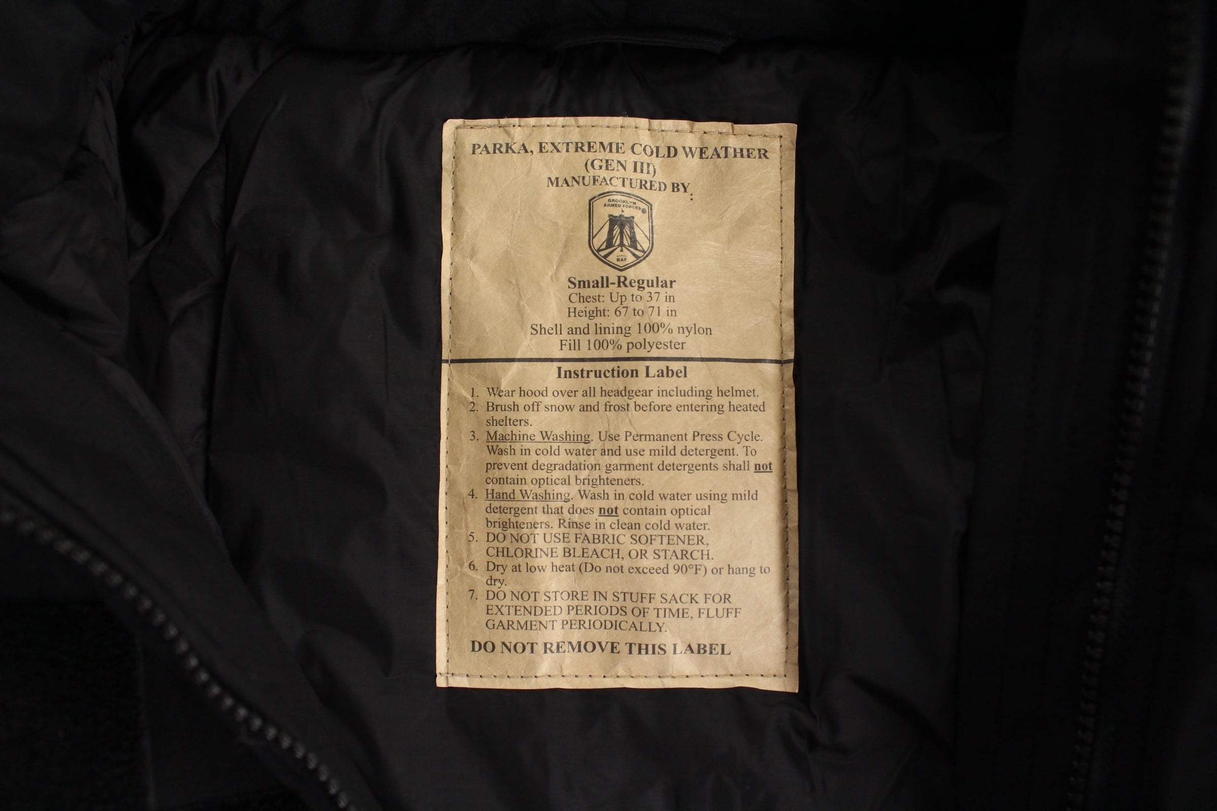 インナーにはPrimaLoftという米国ALBANY社がアメリカ軍のために開発した