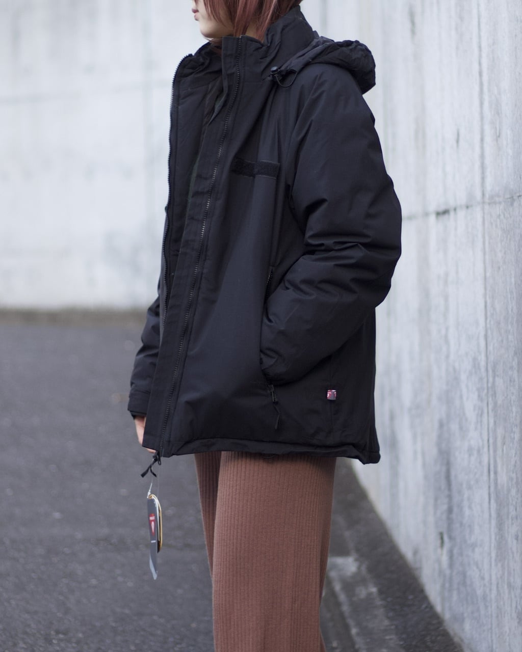 裾ドローコードはサイドポケット中に収納されており、ギュッと絞ってより立体的なシルエットで着てもクールです。