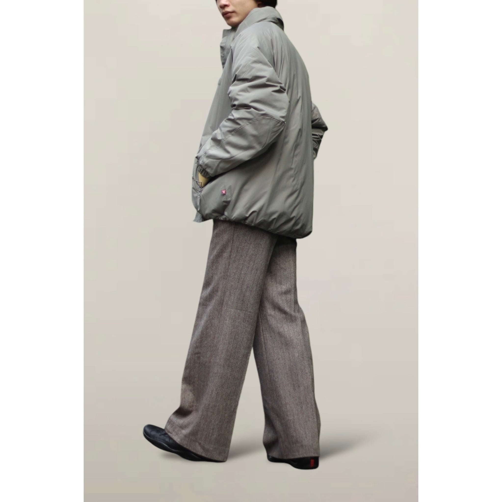これだけの機能性があるにも関わらず、スッキリとしたミニマムなビジュアルが人気の秘訣。通常のダウンジャケットと比較しても程よいボリューム感、ポケットの中にあるドローコードをギュッと絞ると溜まりのあるバルーンシルエットがとても可愛く男女問わずアウターとしておすすめな逸品でございます。