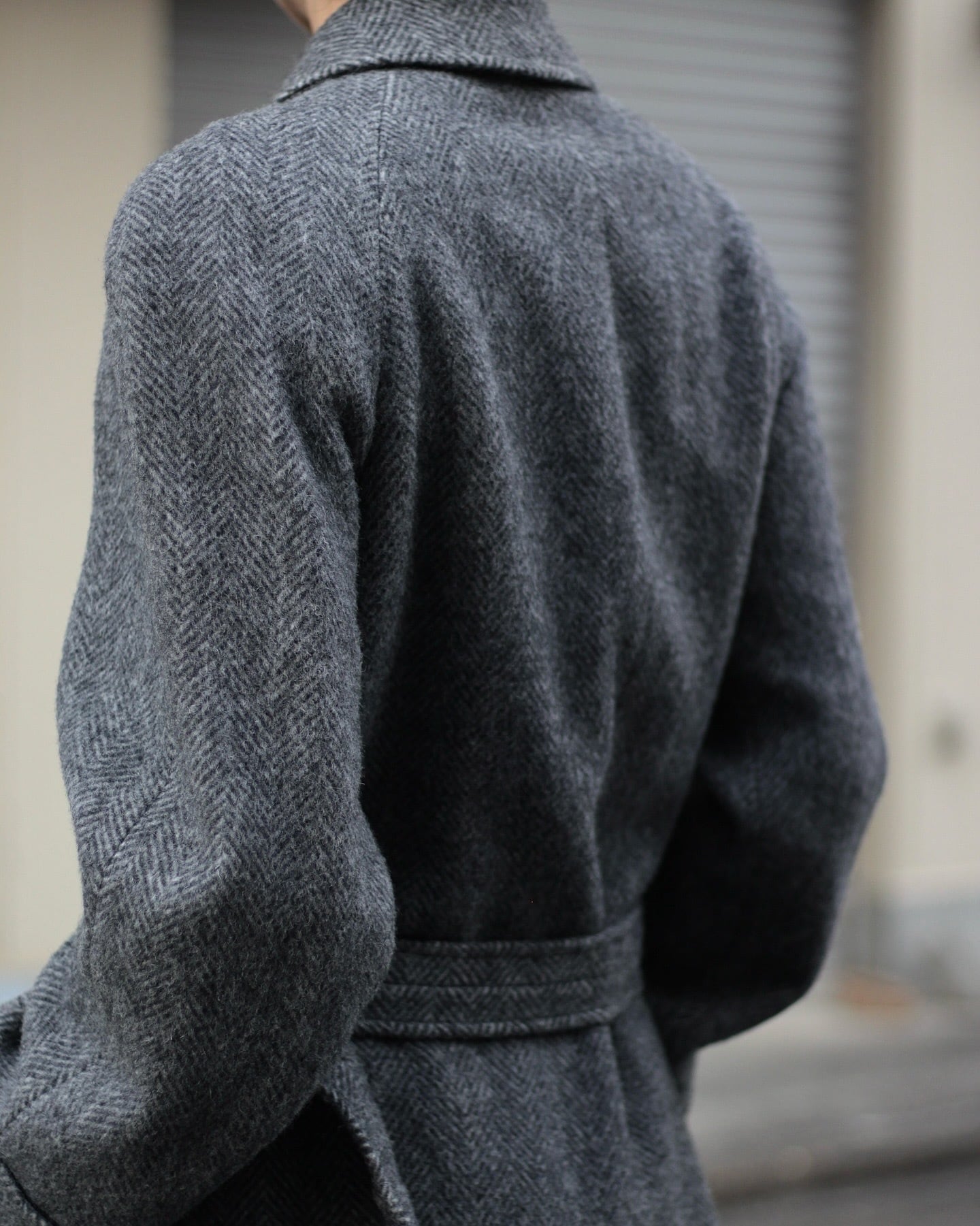 "CANALI" vintage wool herringbone belted long coat【OT-20081】
