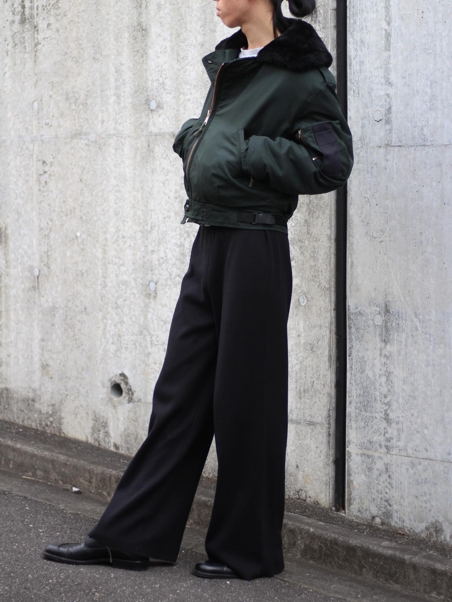 なんといってもムートン切替の存在感抜群の襟元。ミリタリーなのに上品でエレガントに着こなせる一着。