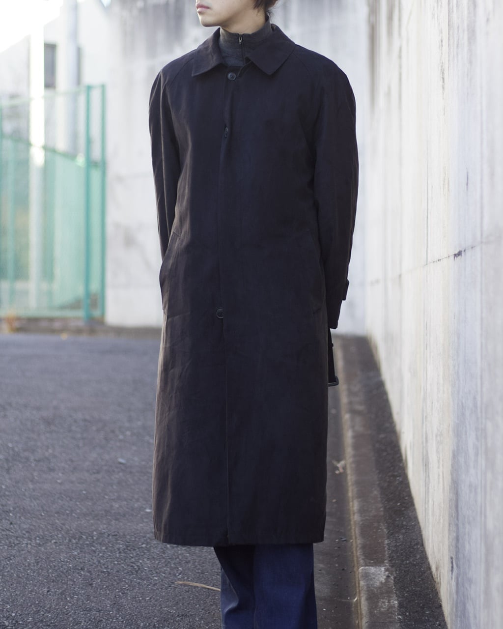 1990s smooth fabric stand-fall collar coat with chinstrap【MM-0963】