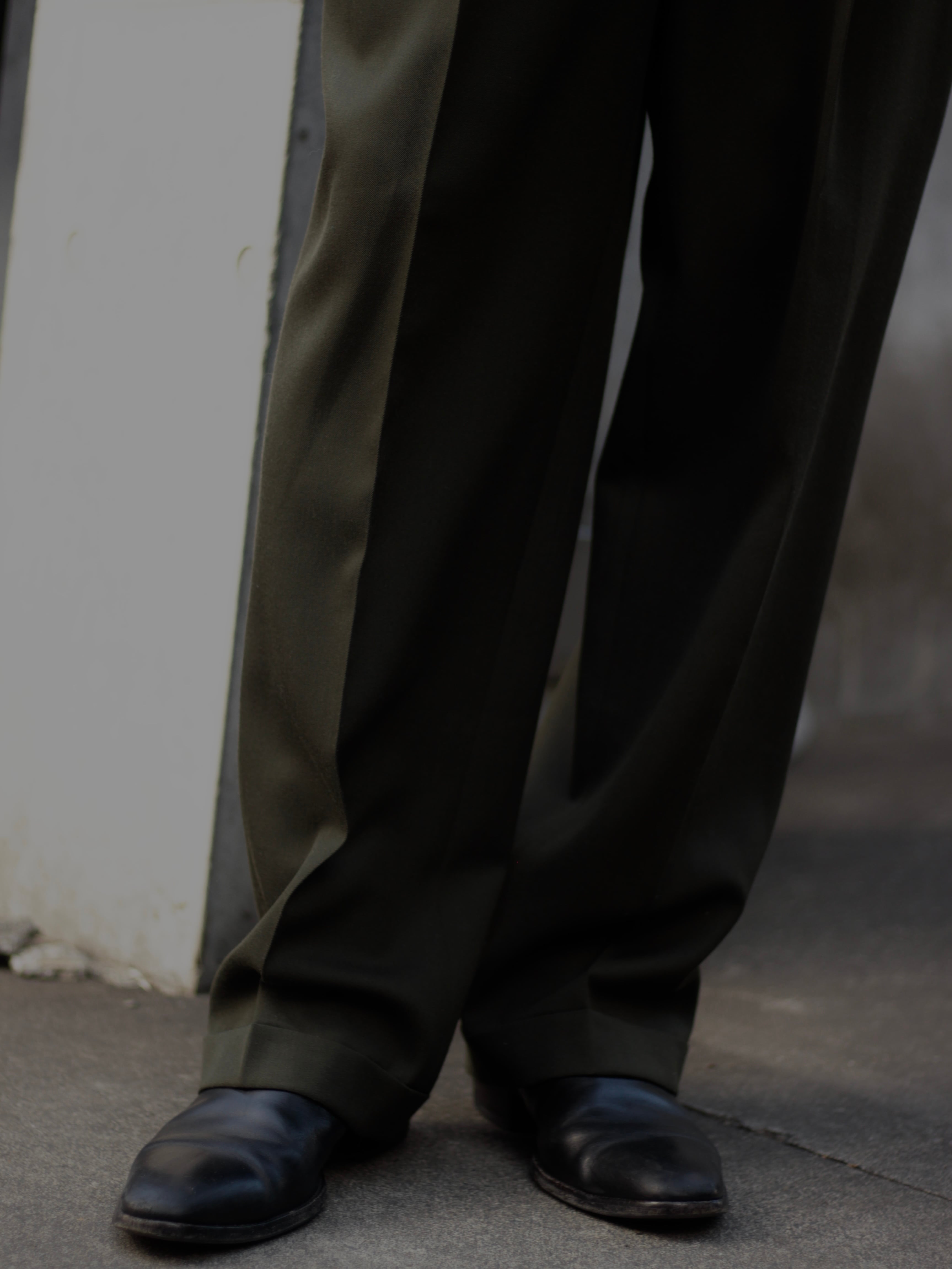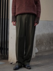 遠目で見たら軍パンに見える色味ではありますが、0距離くらいで群を抜いた雰囲気のスラックスのギャップ。