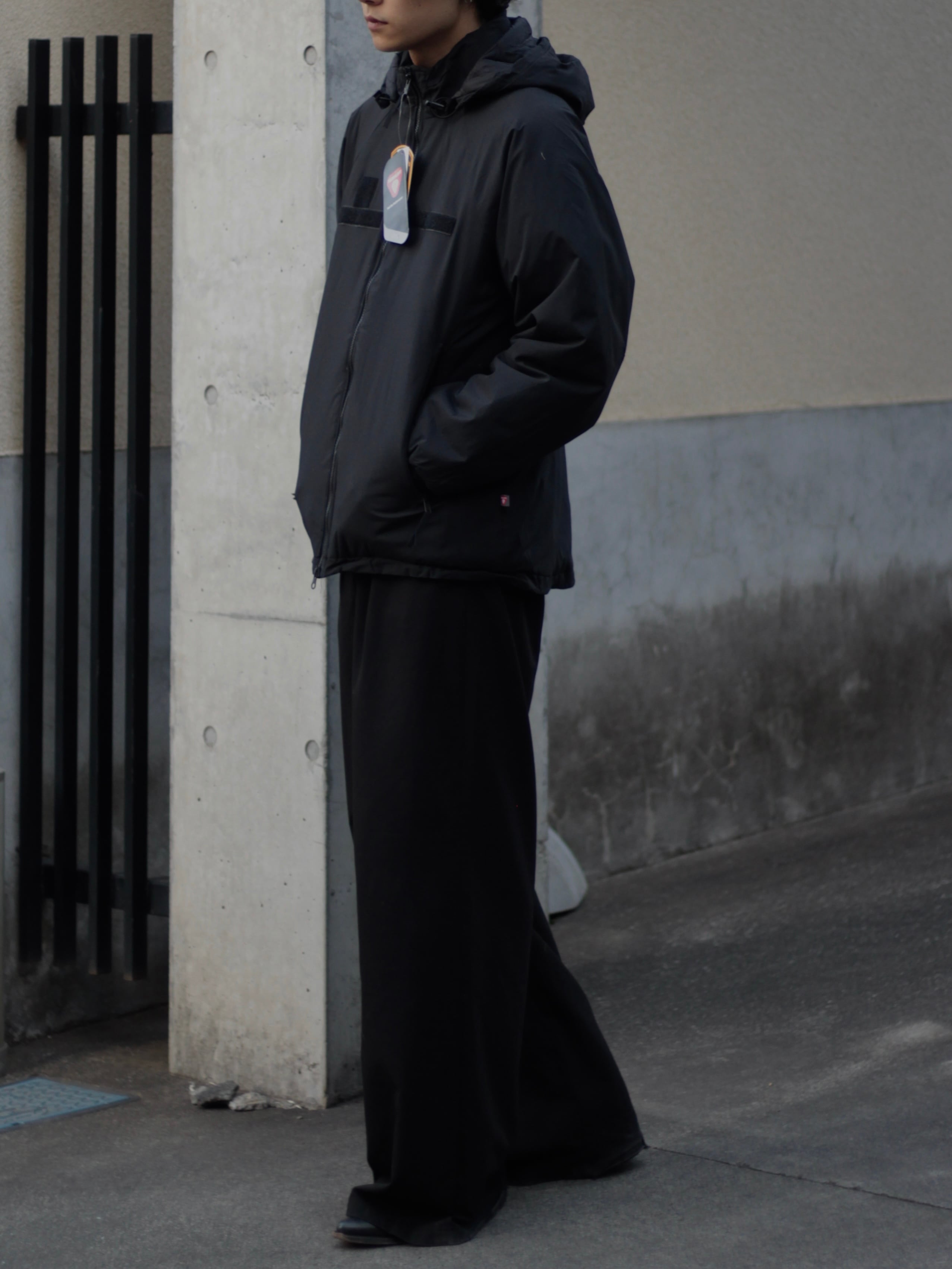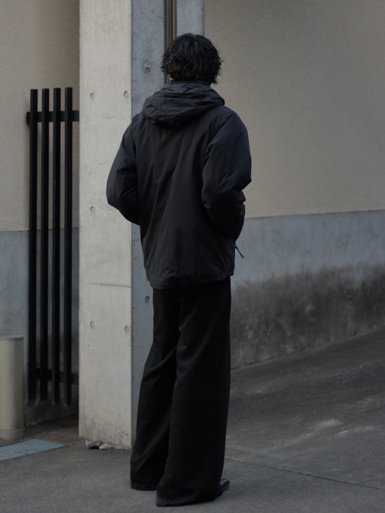 これだけの機能性があるにも関わらず、スッキリとしたミニマムなビジュアルが人気の秘訣。通常のダウンジャケットと比較しても程よいボリューム感、ポケットの中にあるドローコードをギュッと絞ると溜まりのあるバルーンシルエットがとても可愛く男女問わずアウターとしておすすめな逸品でございます。