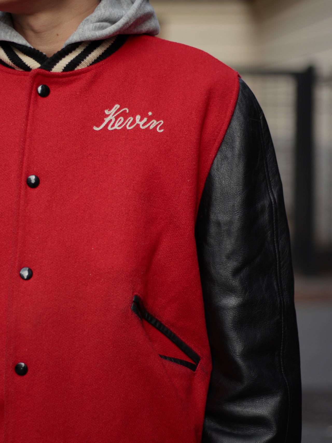 スタジャンのフロッキーワッペンのあのかっこよさも良いのですが、左胸にさり気ない刺繍デザインのこちらもかっこいいですね。
