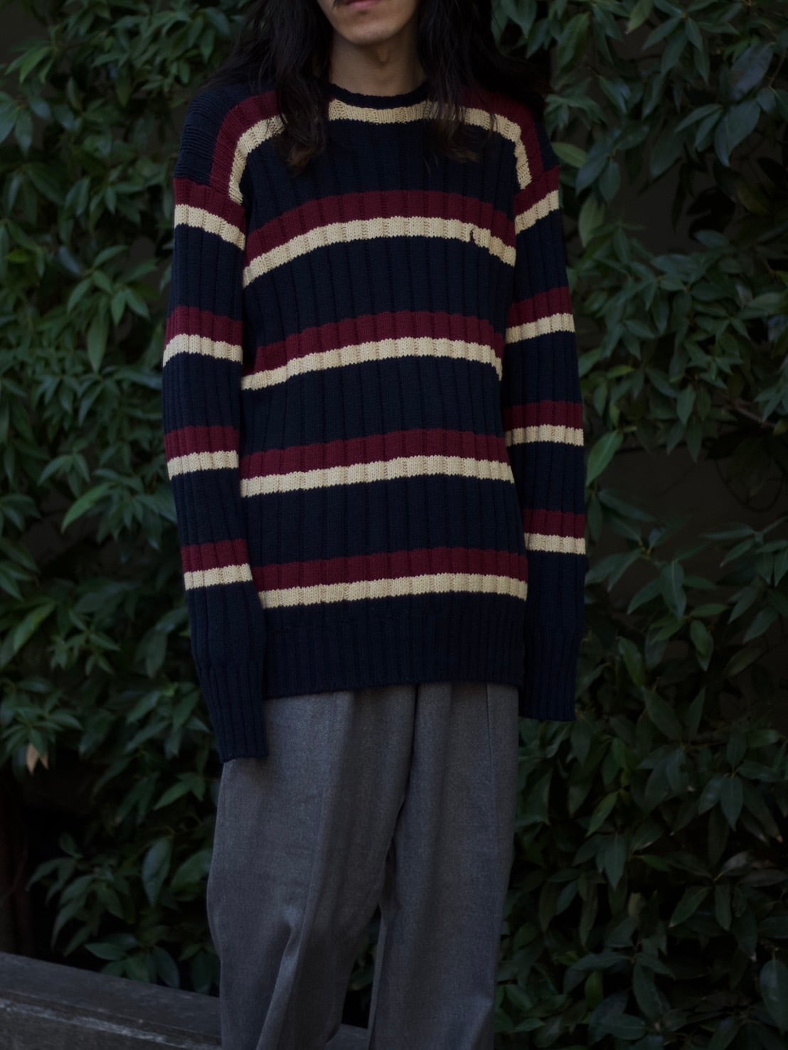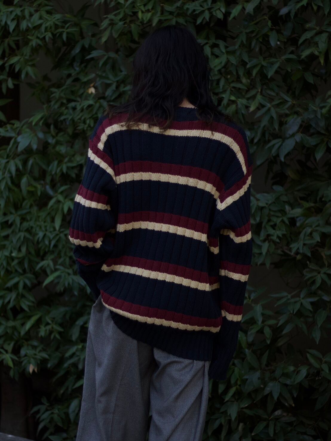 クラシックなマルチボーダーデザインが目を惹く、当時らしい存在感のある一着です。