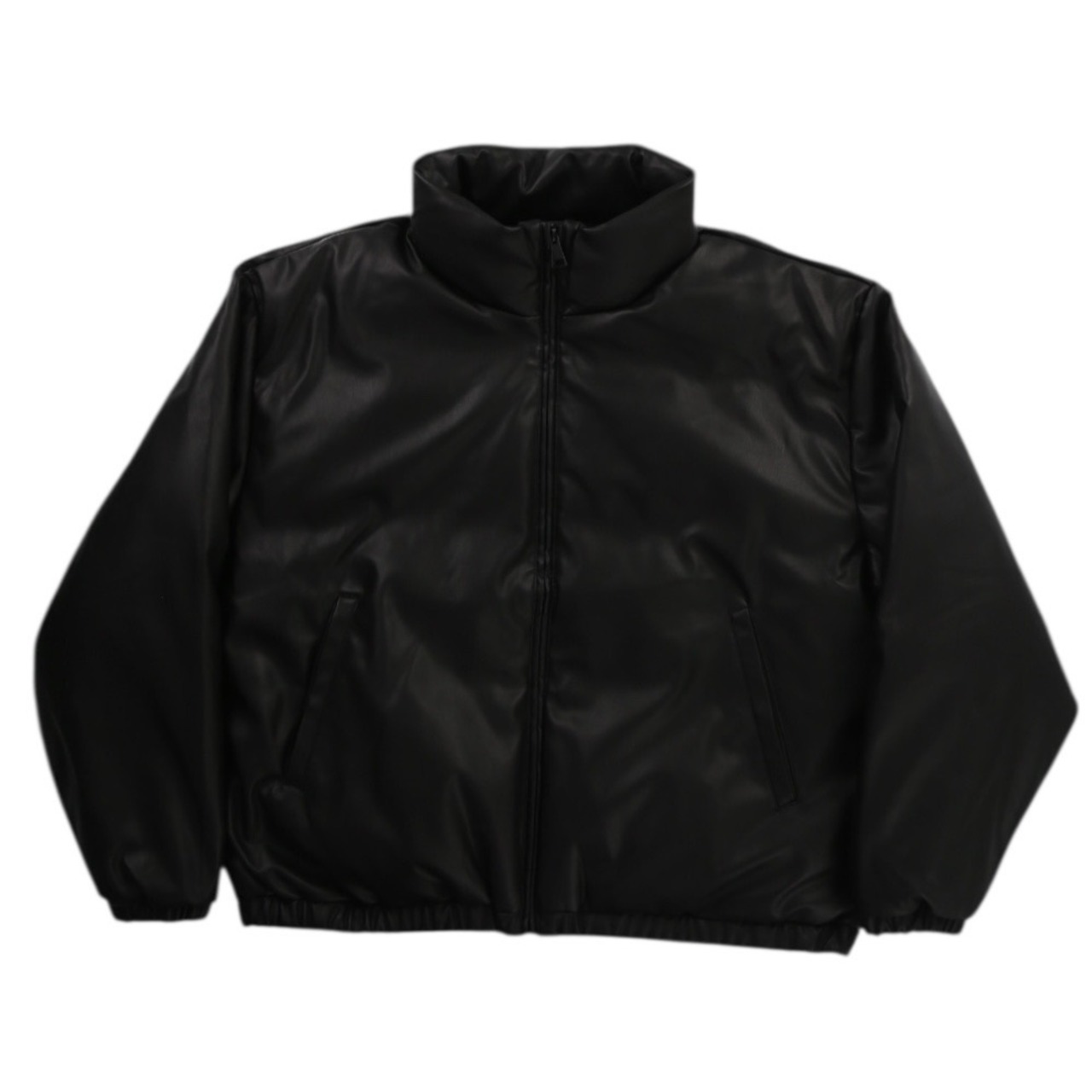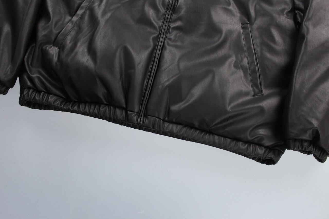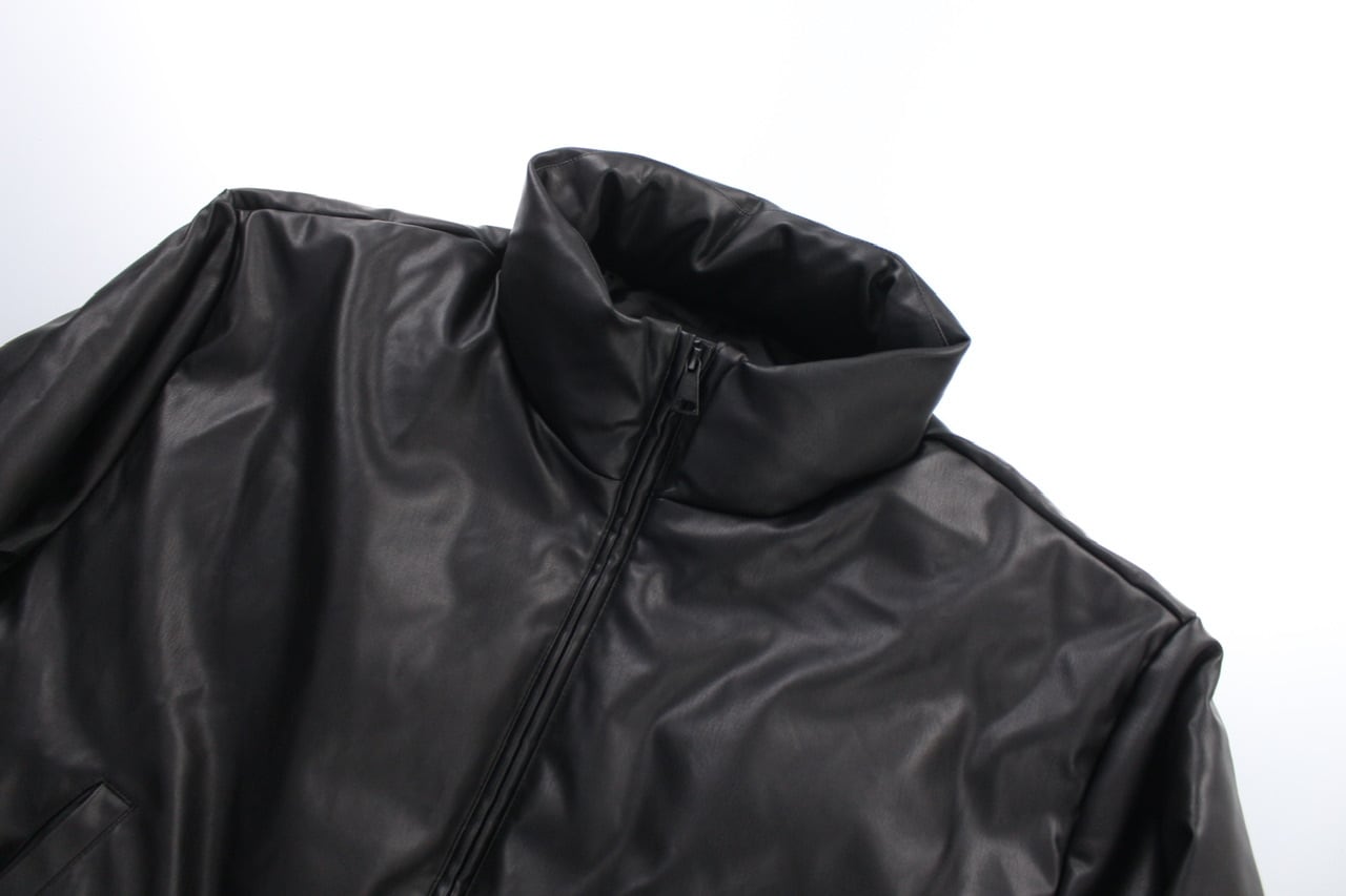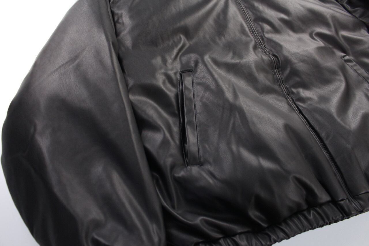 short length faux leather hi-neck padding jacket【OTTK-5061】