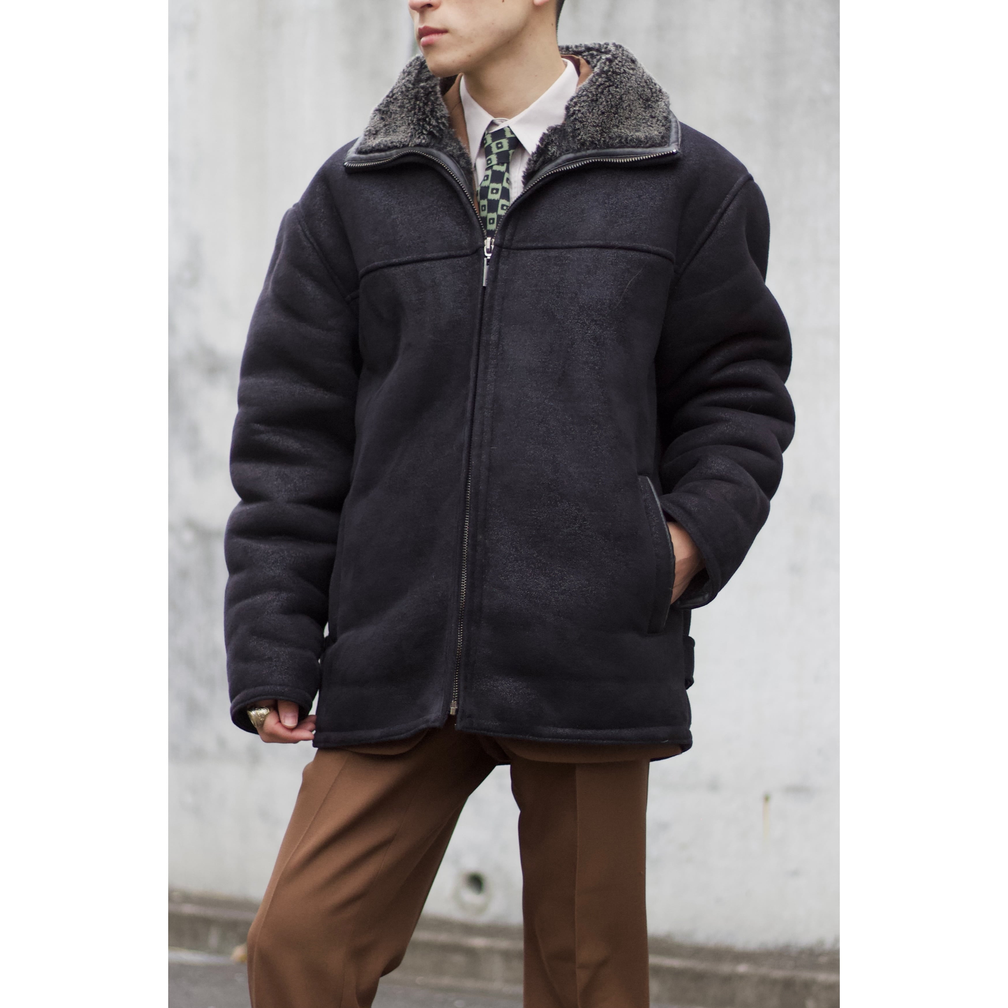 1990’s PELLE CUIR faux mouton hi-neck boa lining zip jacket【OTTK-5101】