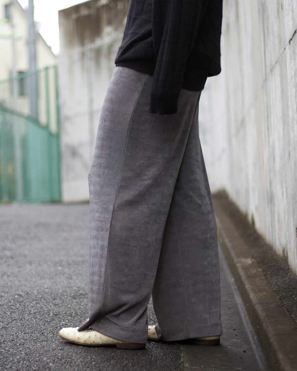 ドレープ感を楽しめるワイドなシルエットとの相性が良く、シーズン問わず愛用できるアイテム◎