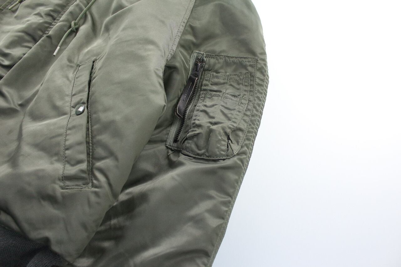 ミリタリーらしいセージグリーンのナイロンシェルには中綿の詰まったずっしりとした着心地がリアルならでは
