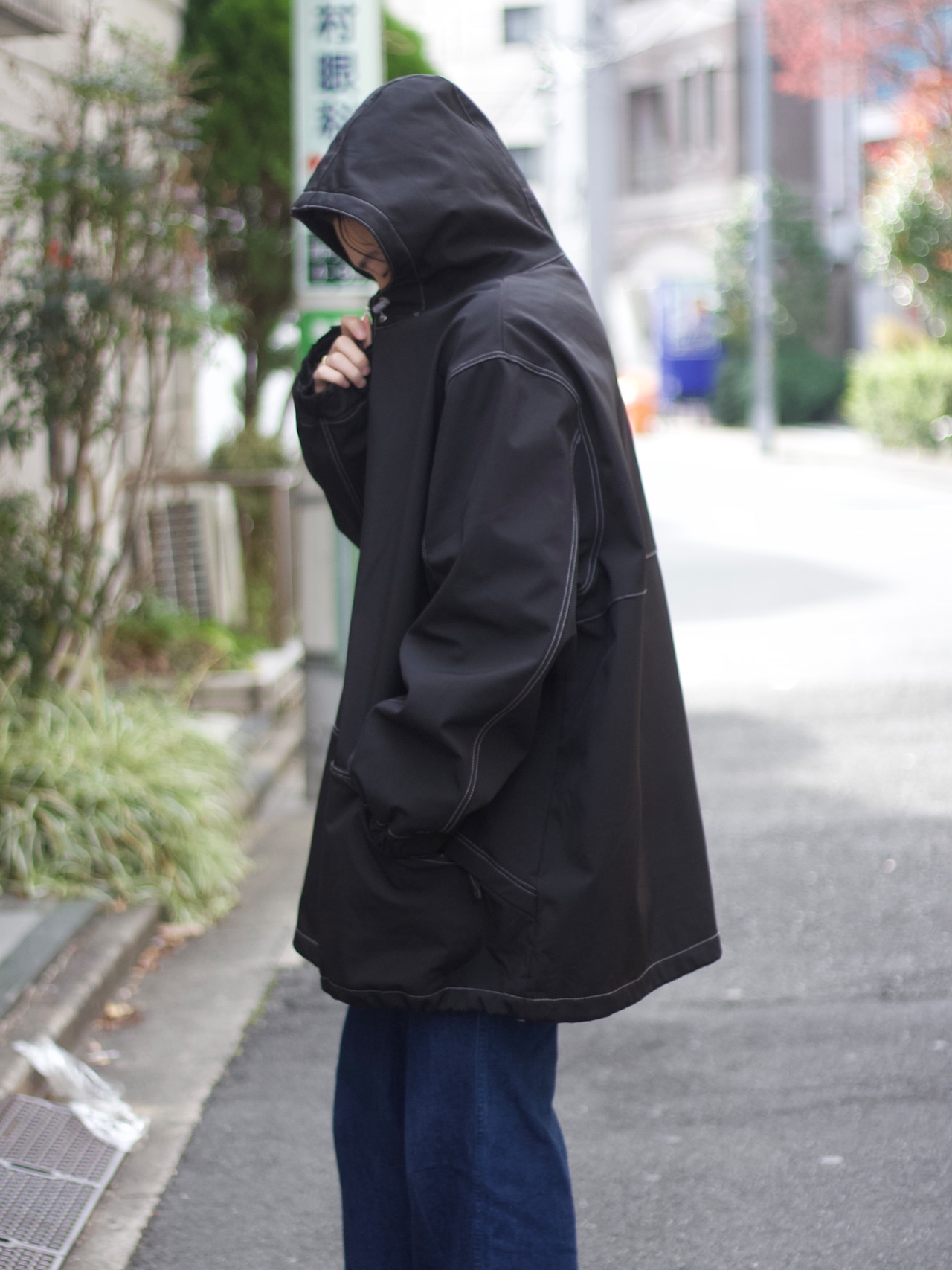 KING SIZEらしい余裕のあるシルエットが魅力のナイロンハーフコート。