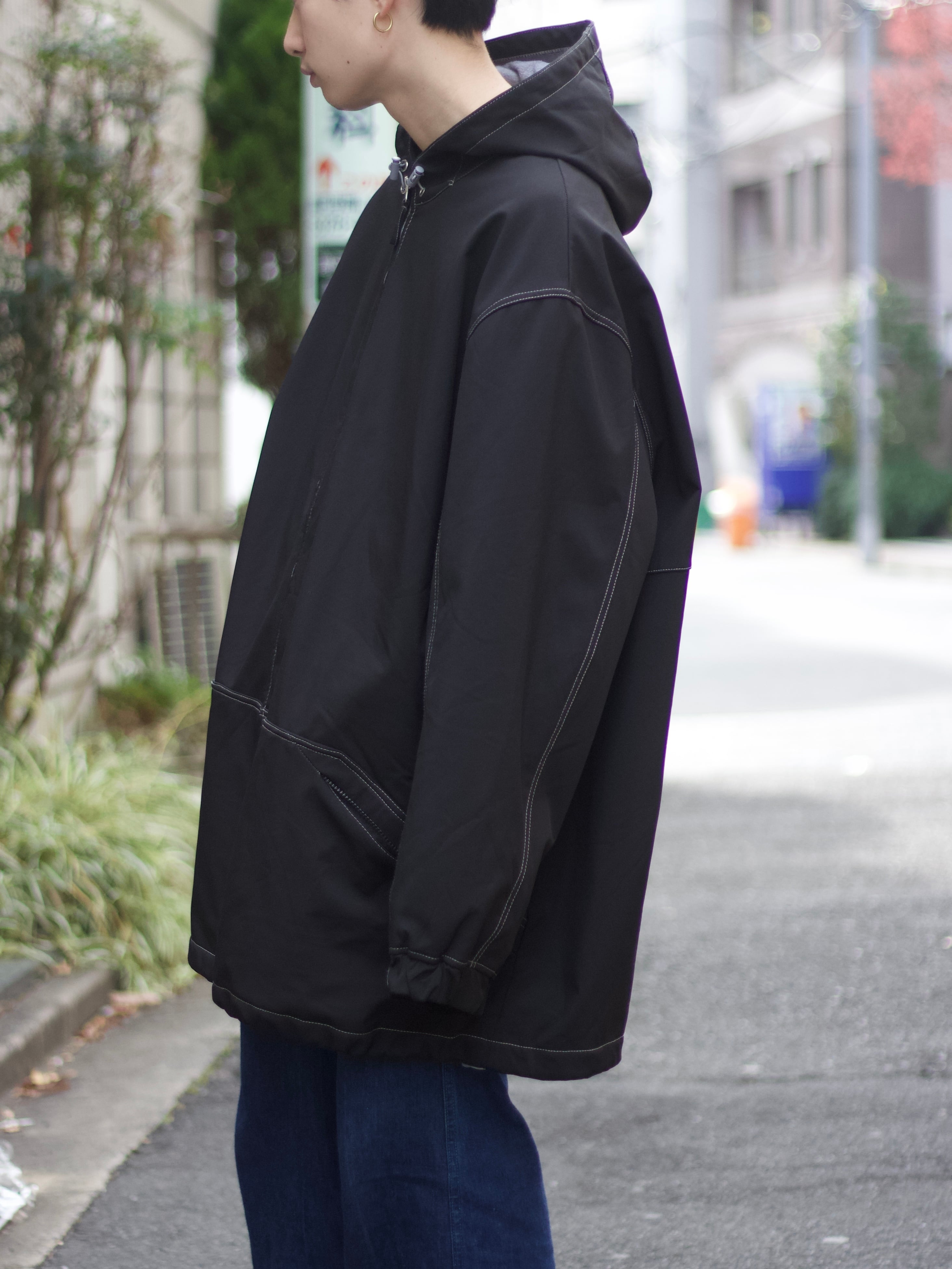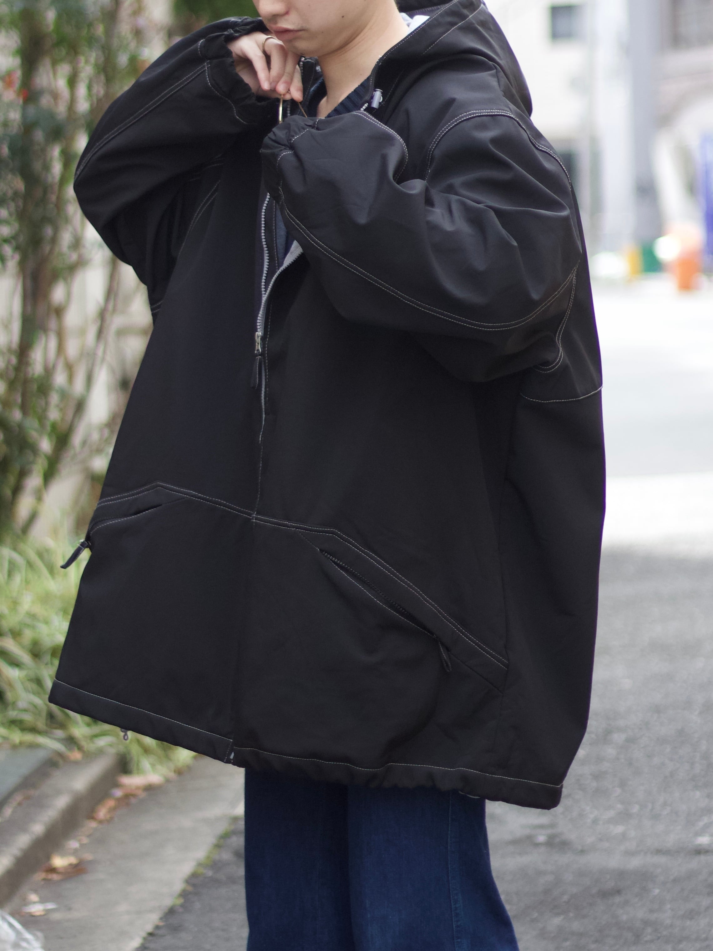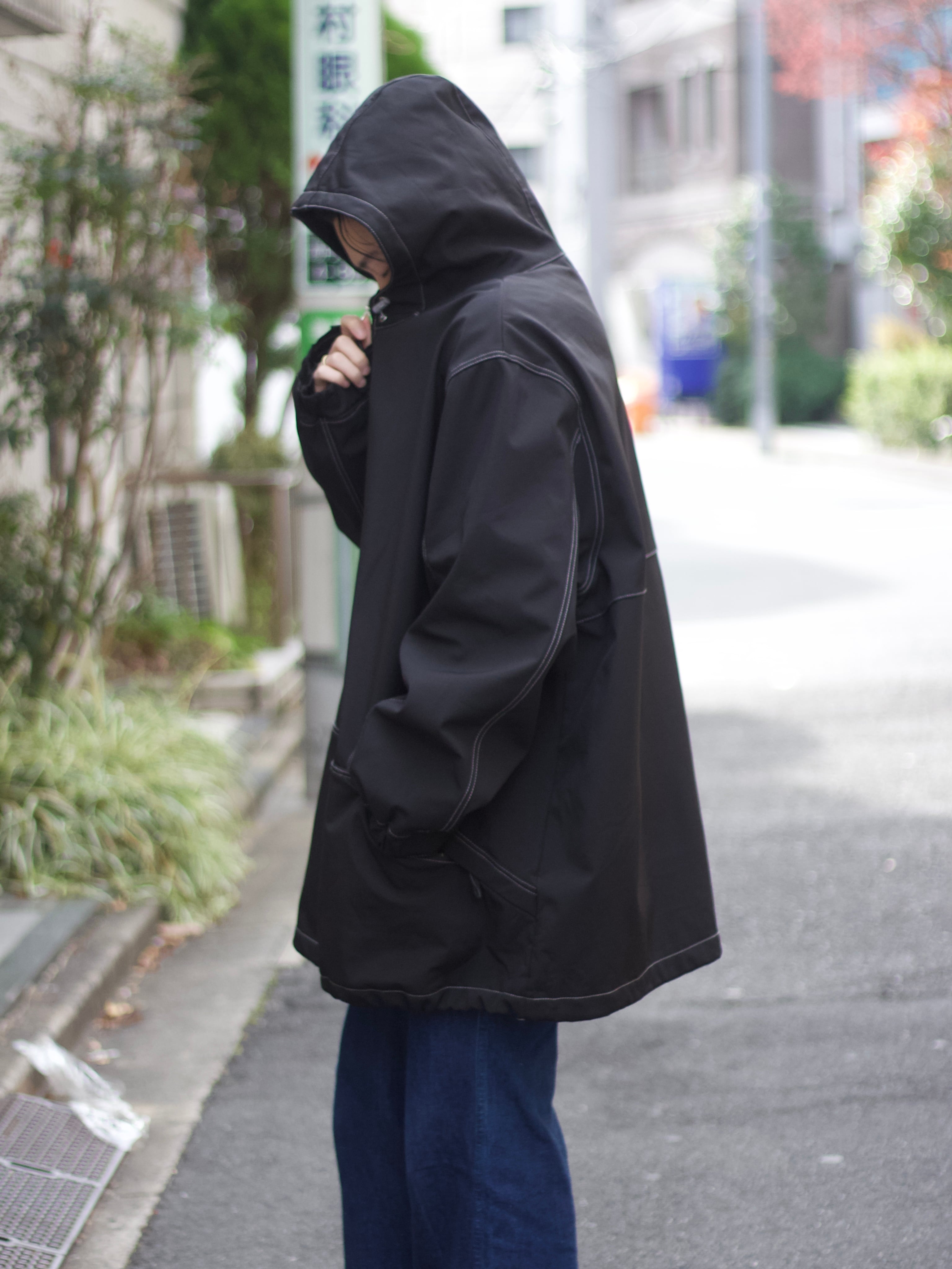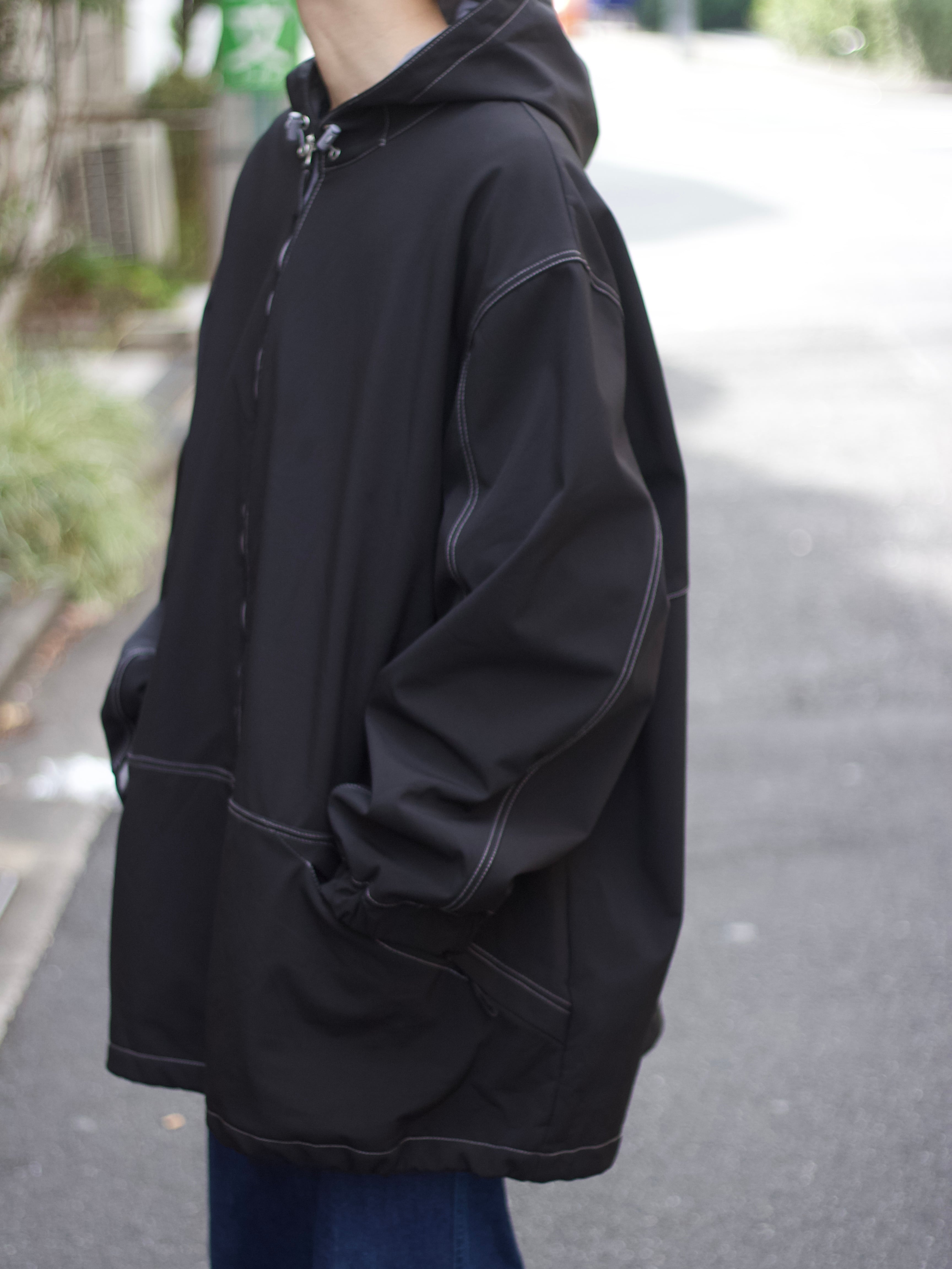 KING SIZE White stitched oversized nylon coat【FF-10856】