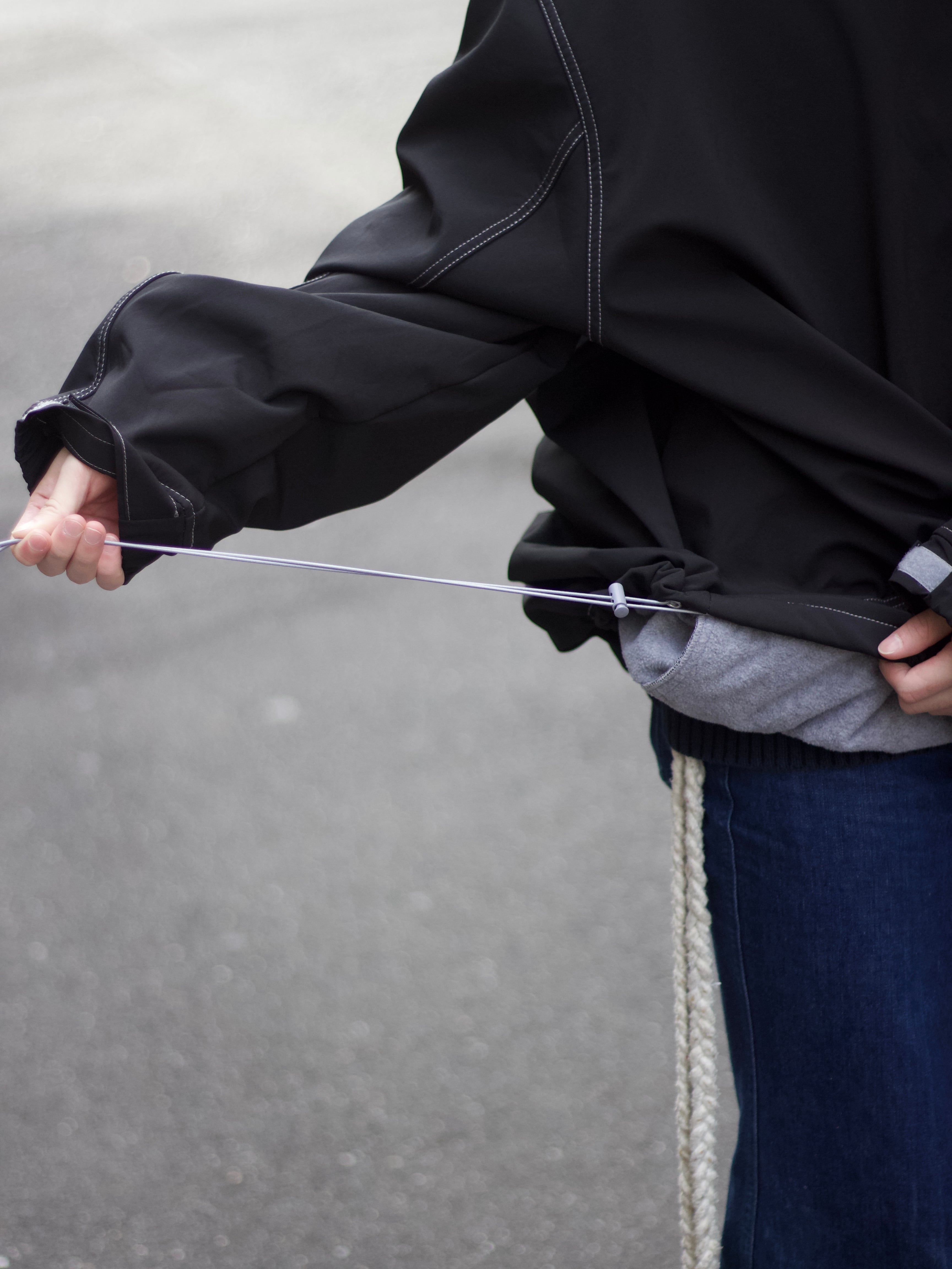 軽量なナイロン素材で羽織りやすく、