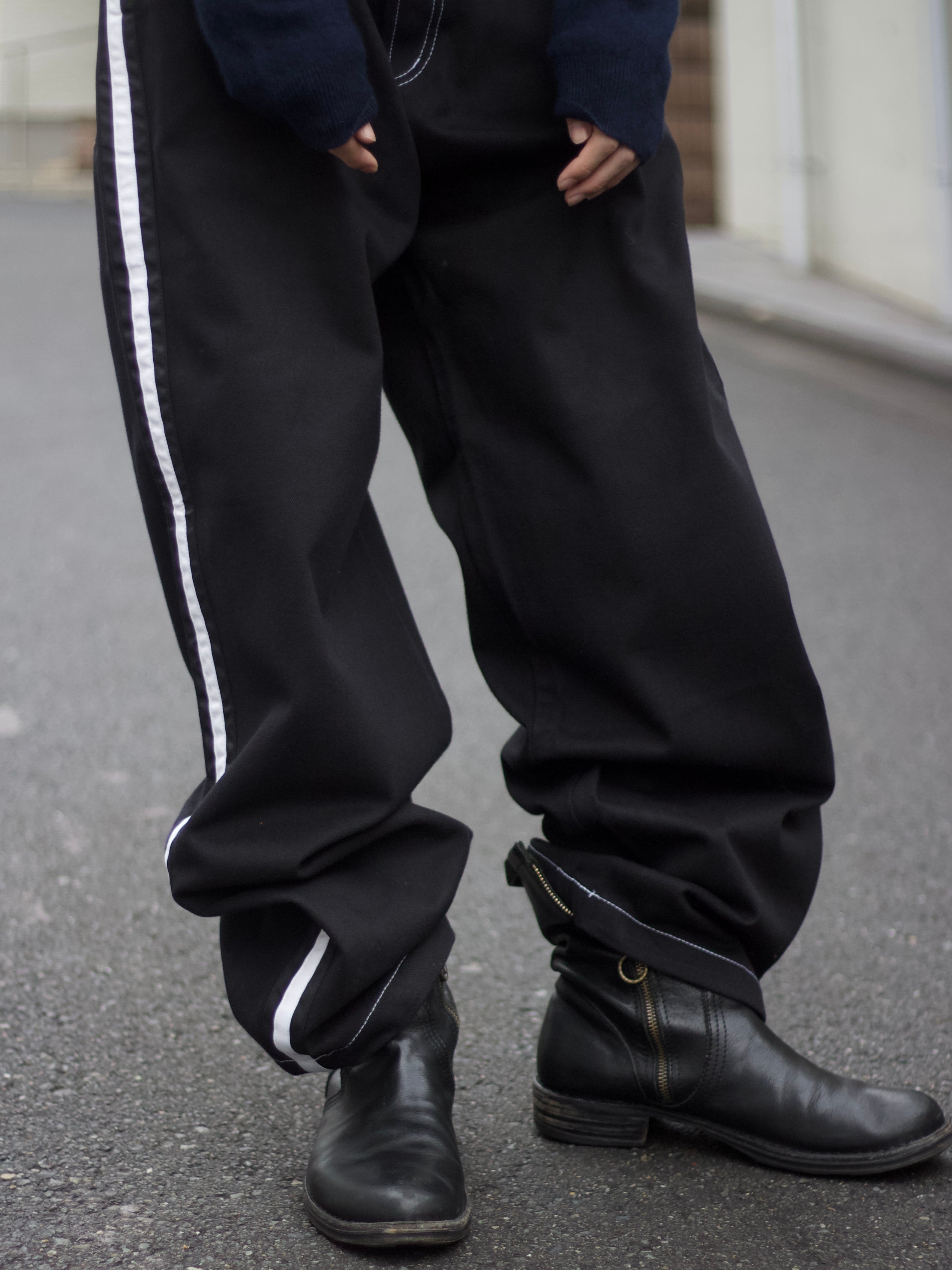 ブラックカラーに、サイドラインデザインの配置。そしてレングスにホワイトステッチ仕上げをしていないのも個人的にはグッときますね。