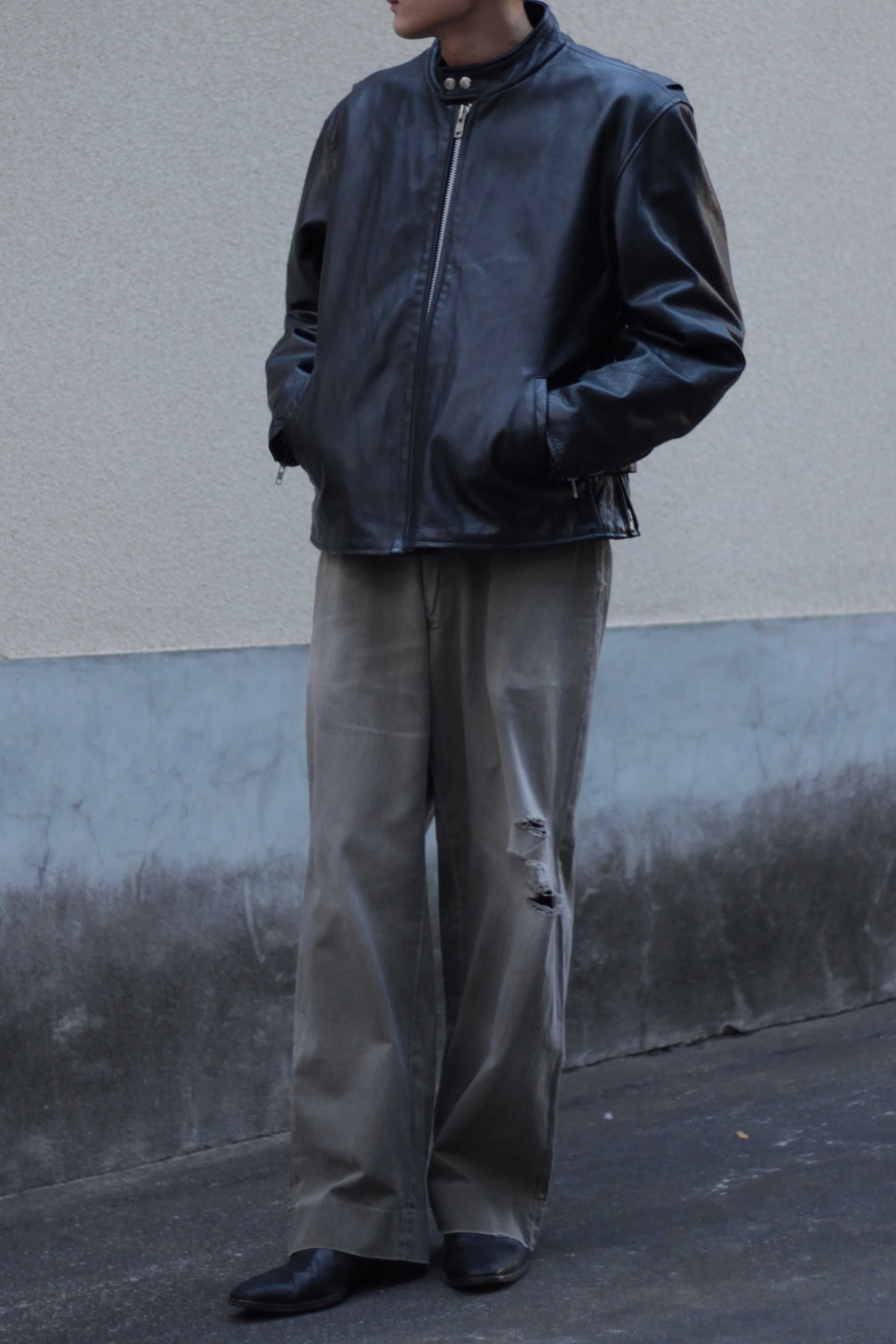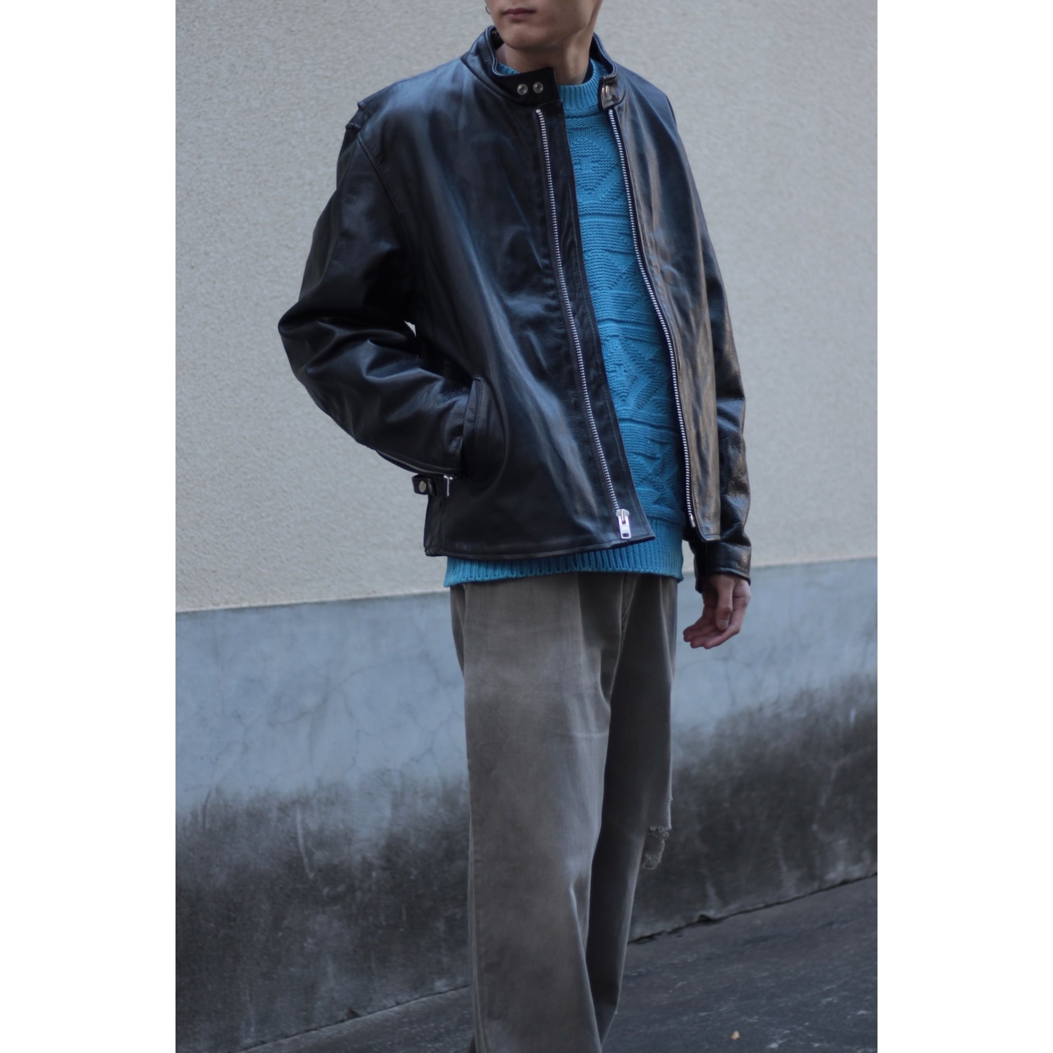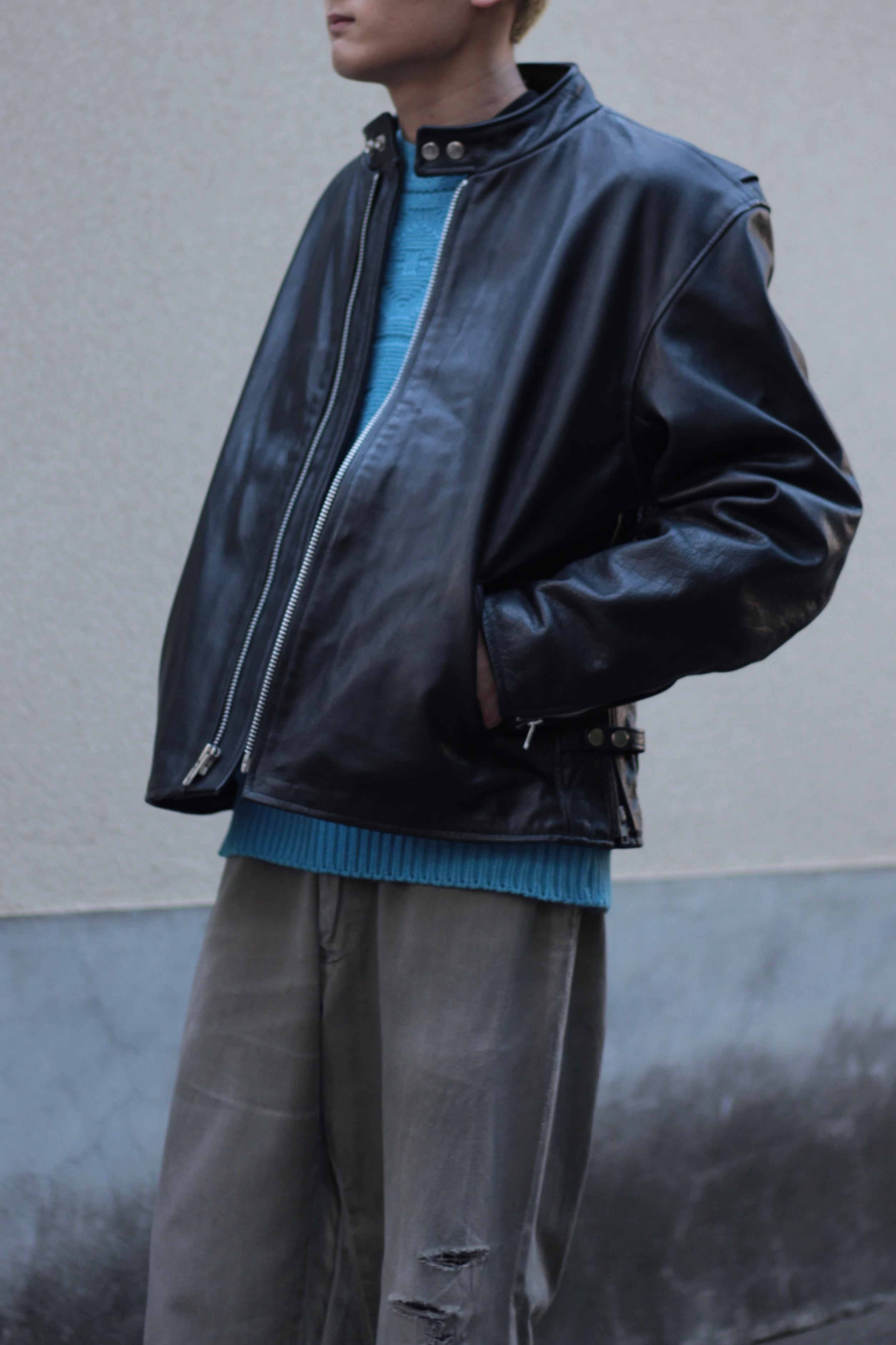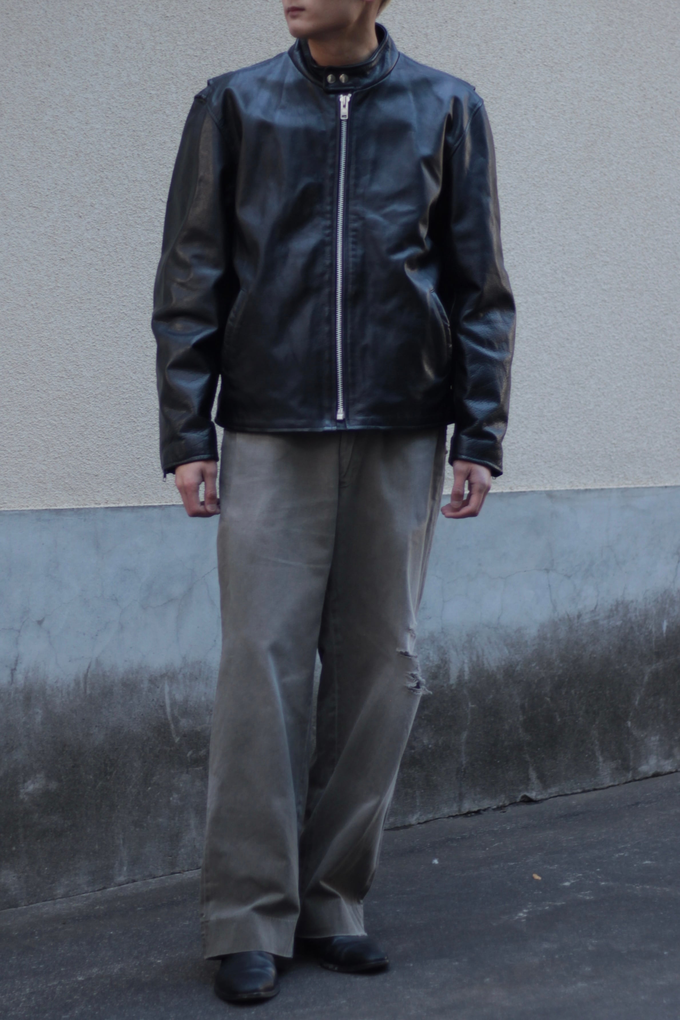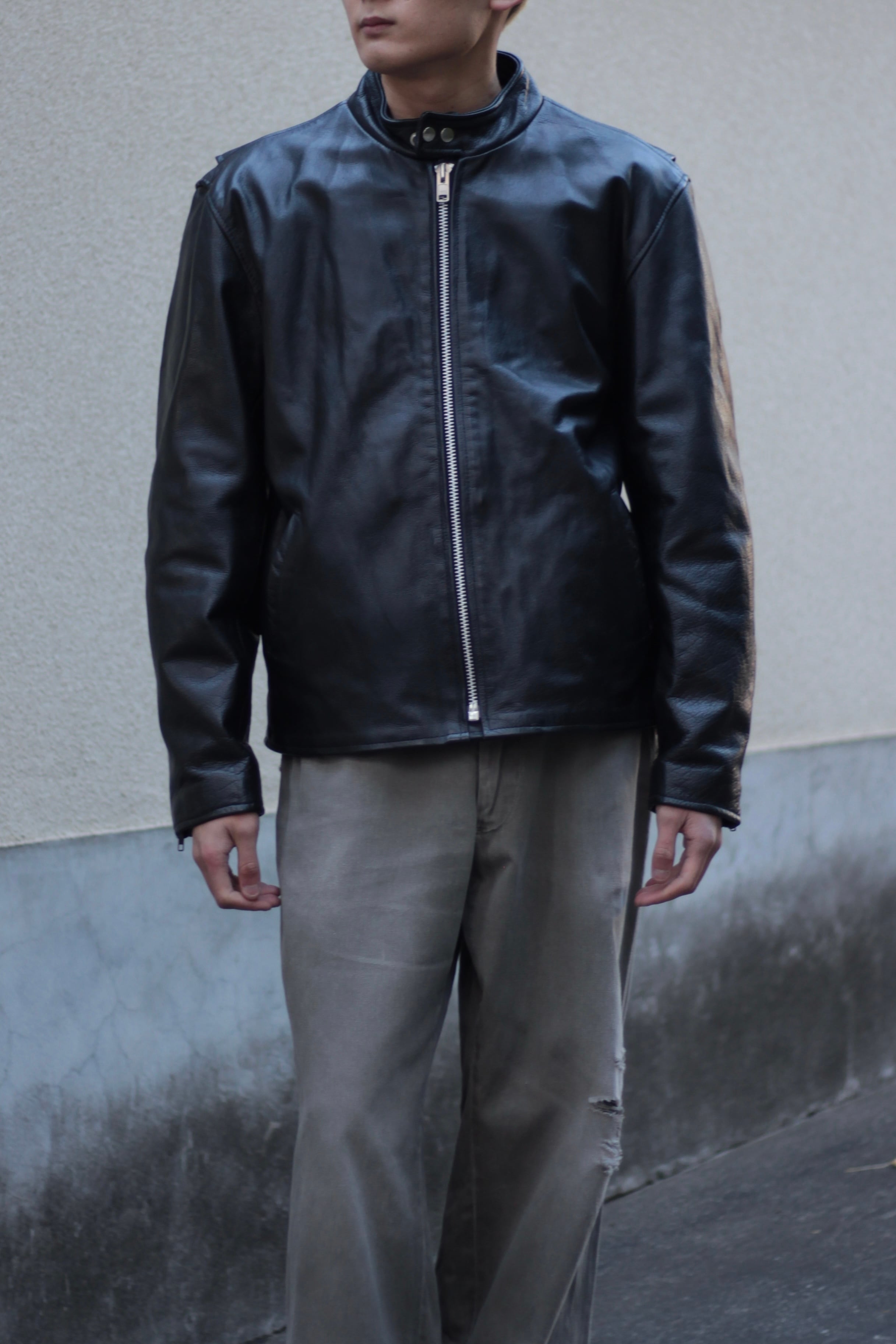 モードにもカジュアルにも振れる非常に使い勝手の良いレザージャケットです!