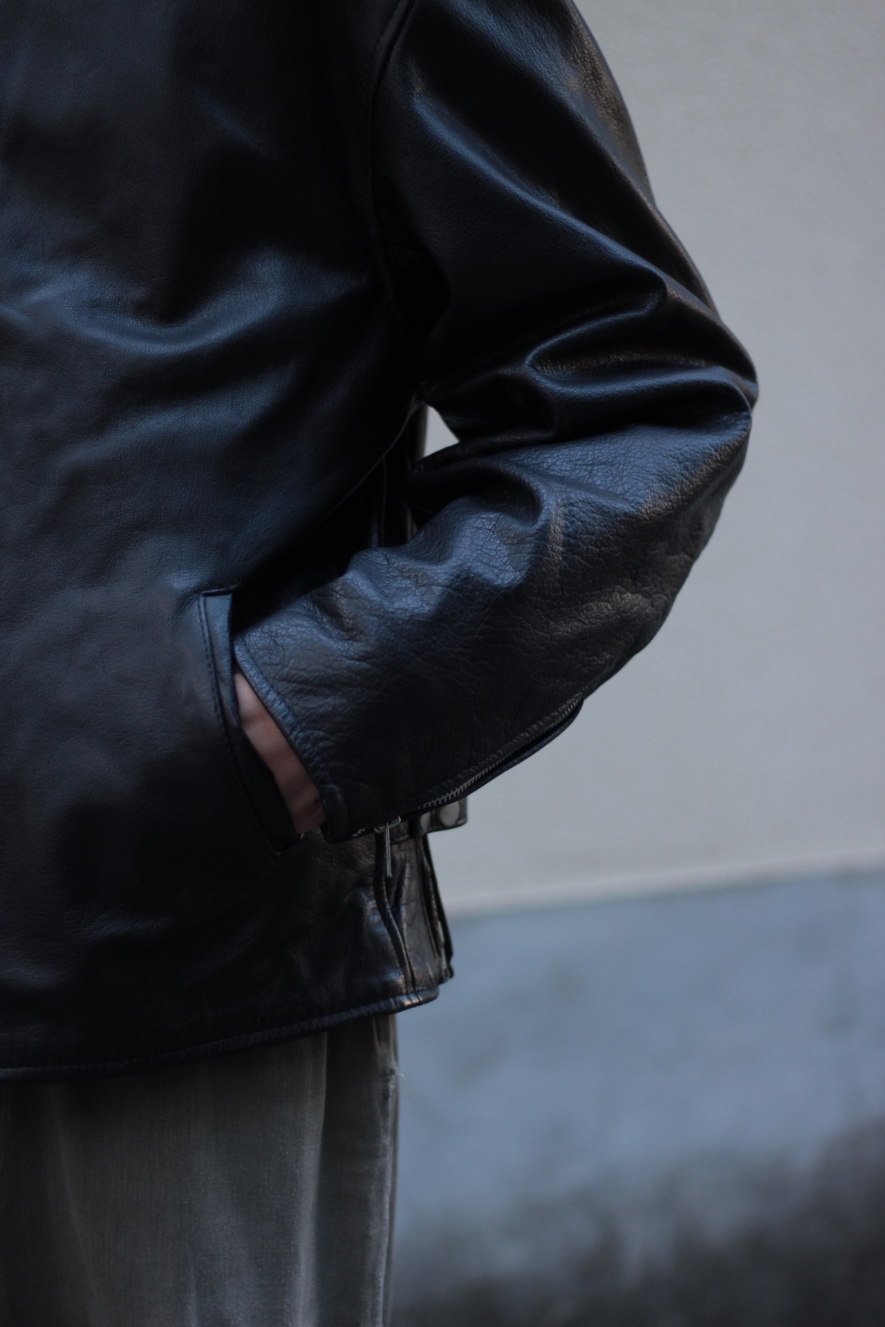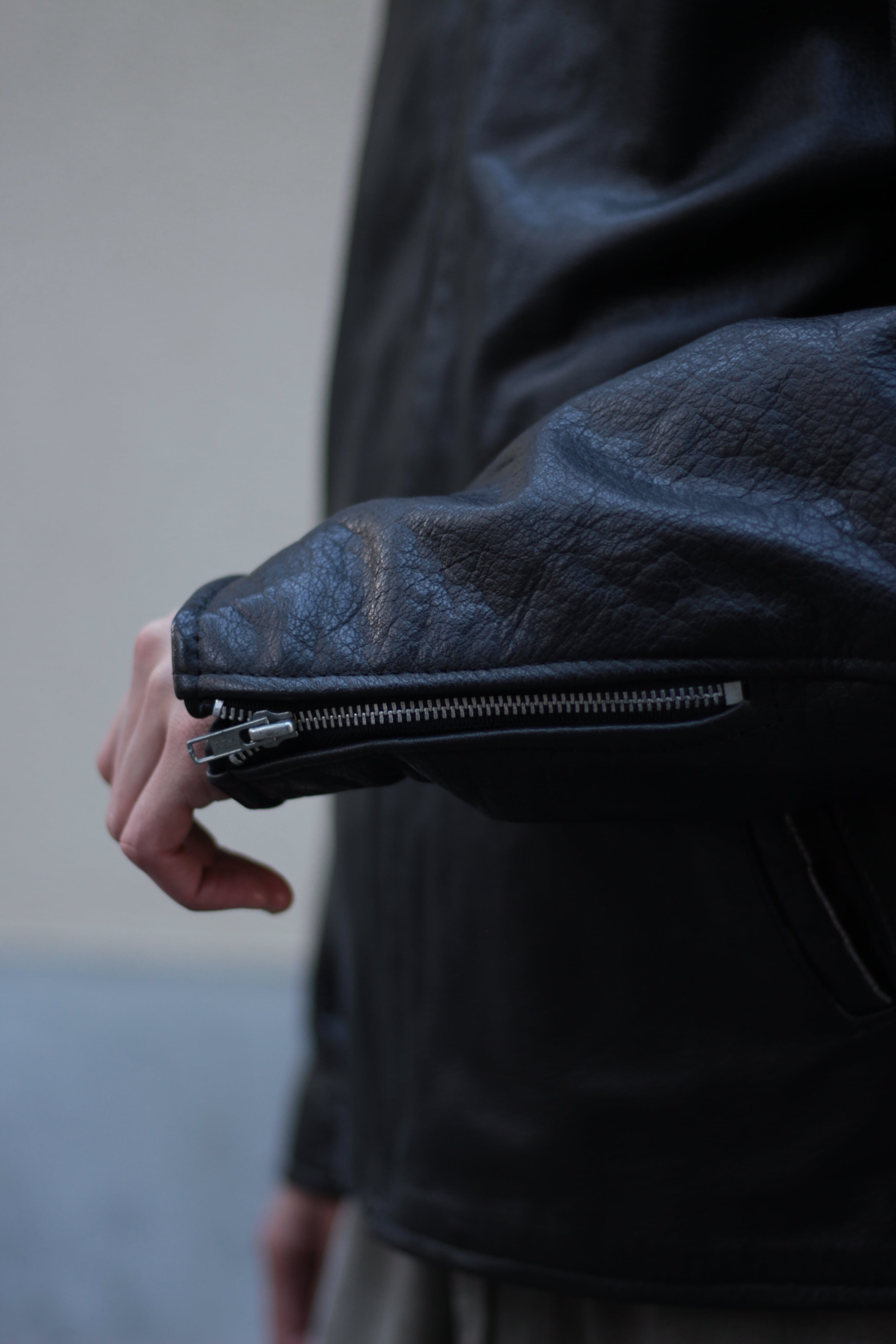 袖通しが良くレザー特有の引っ掛かりを感じさせない快適な着用感。
