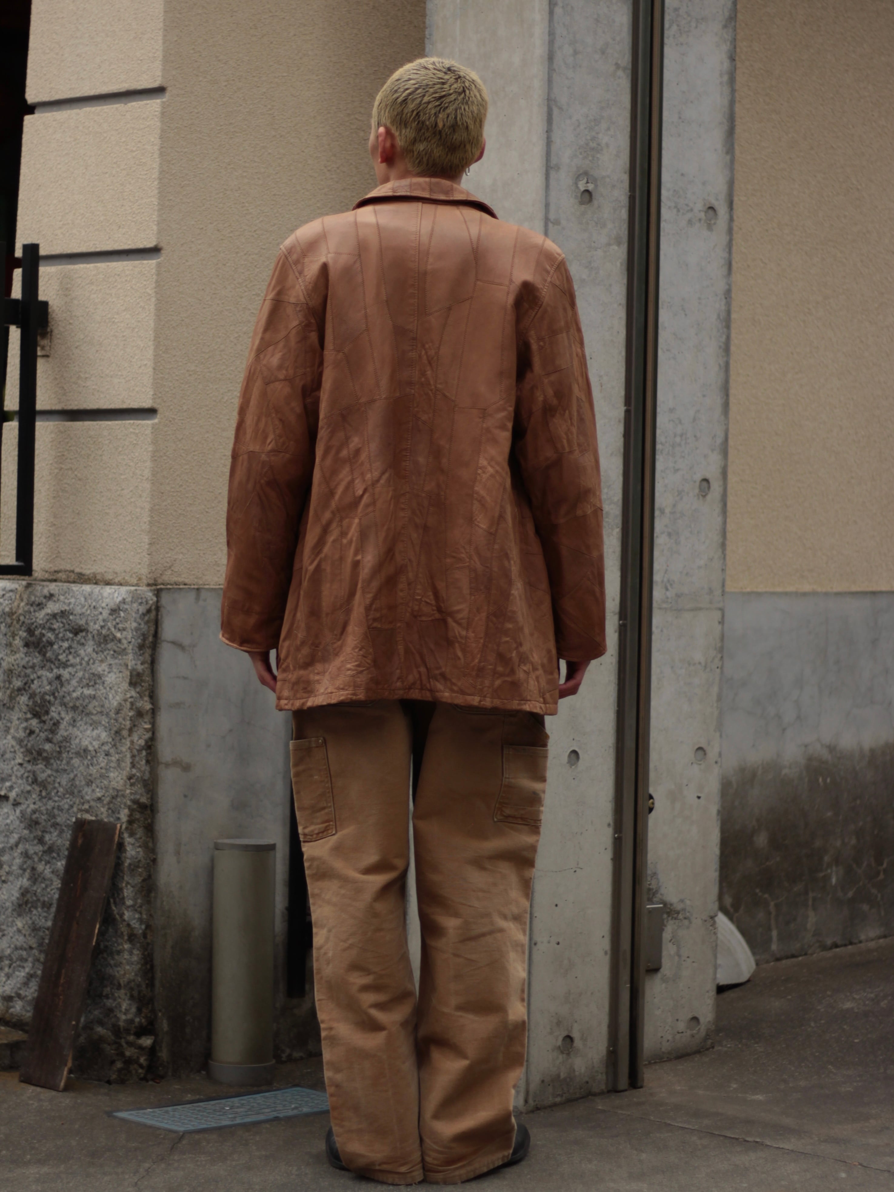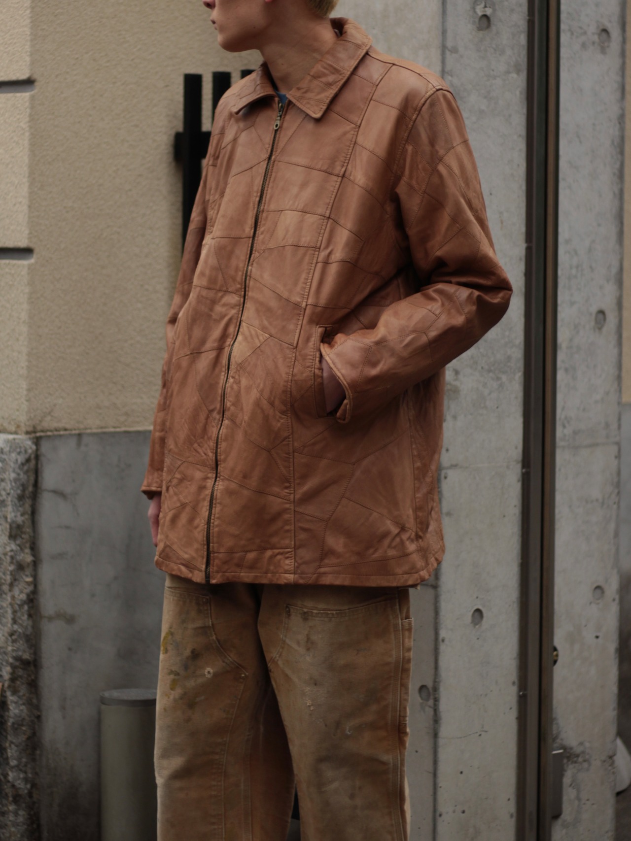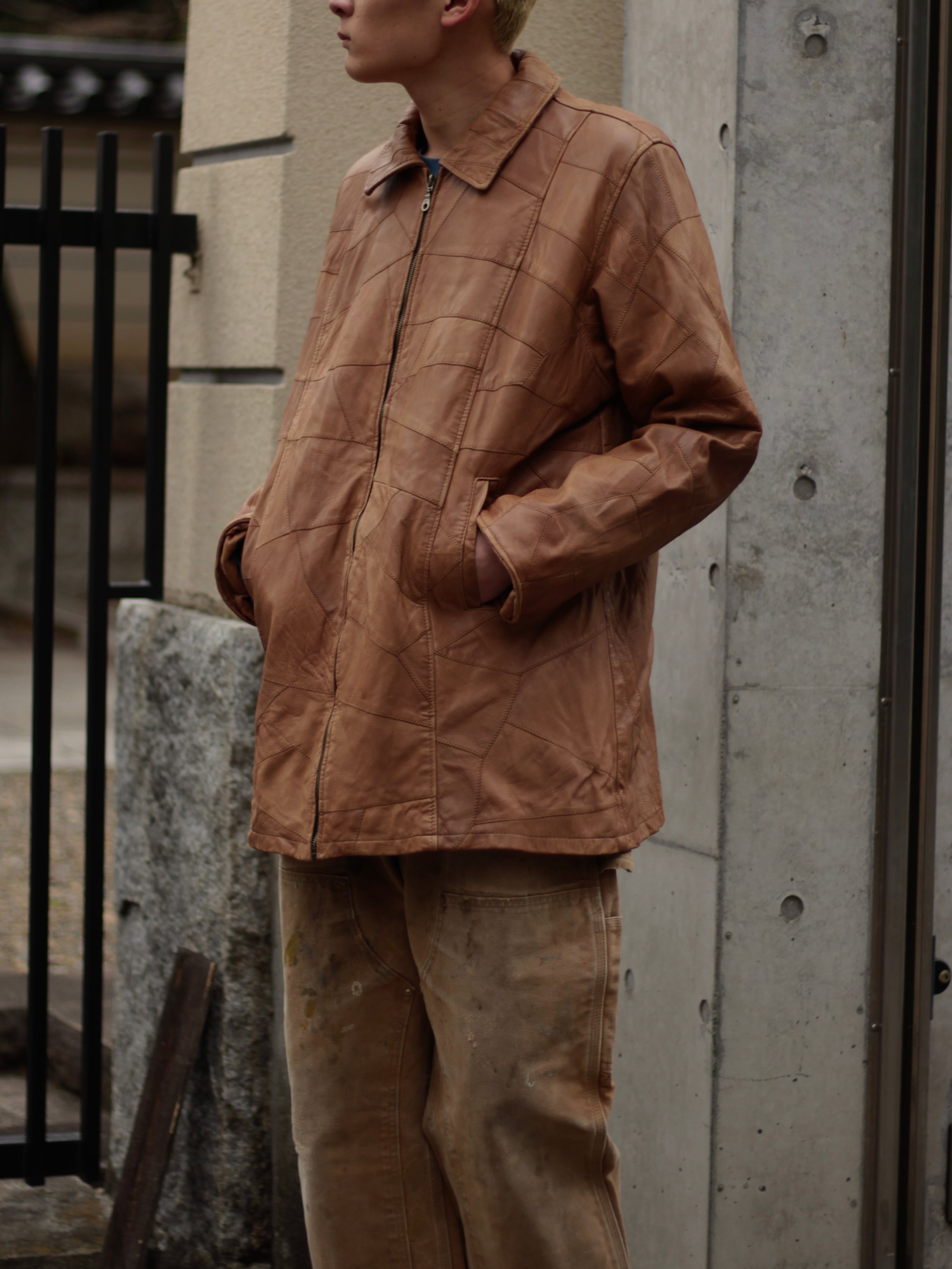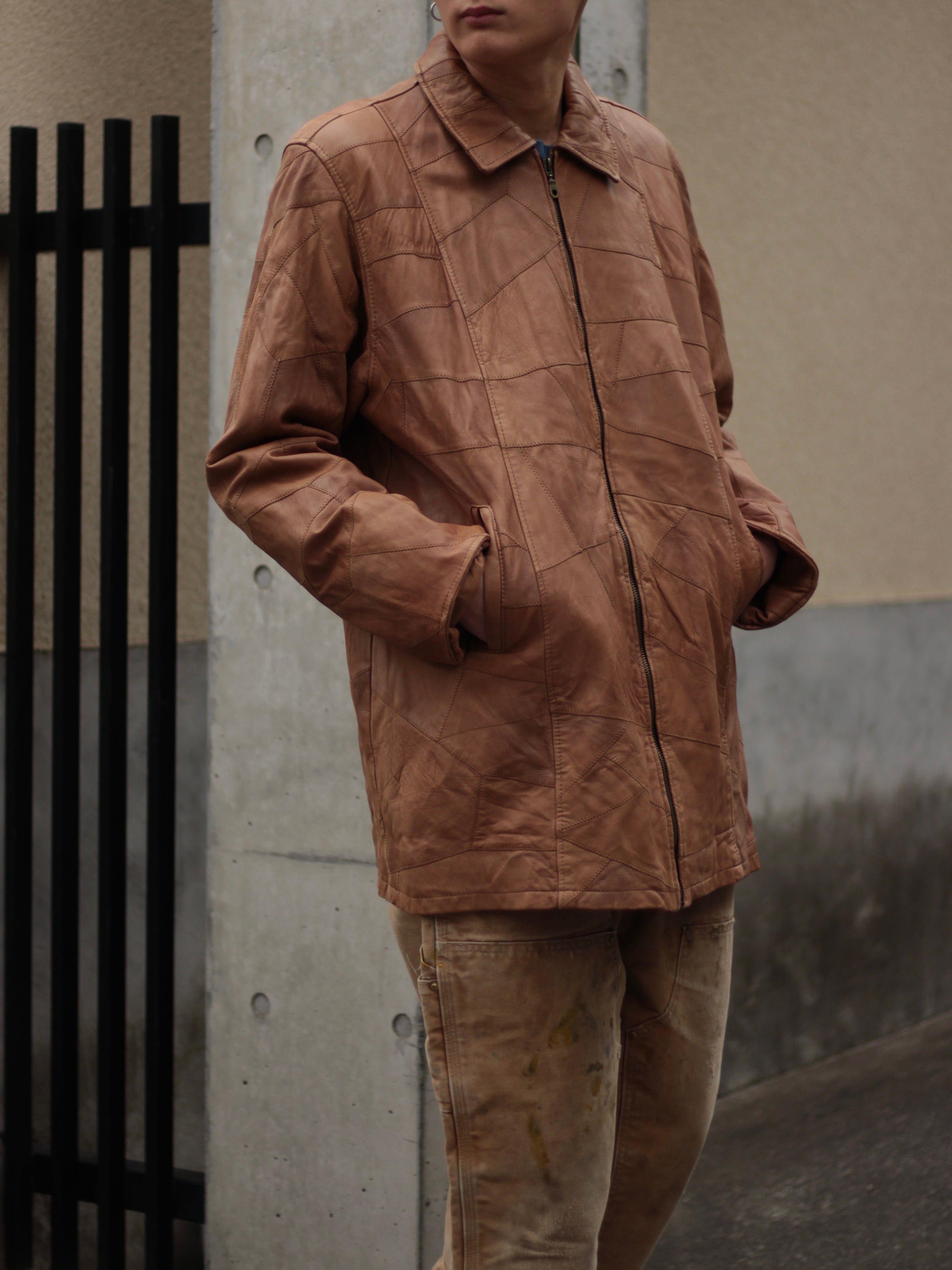 1990s vintage "Patch work design" camel color leather jacket【CU-8976】