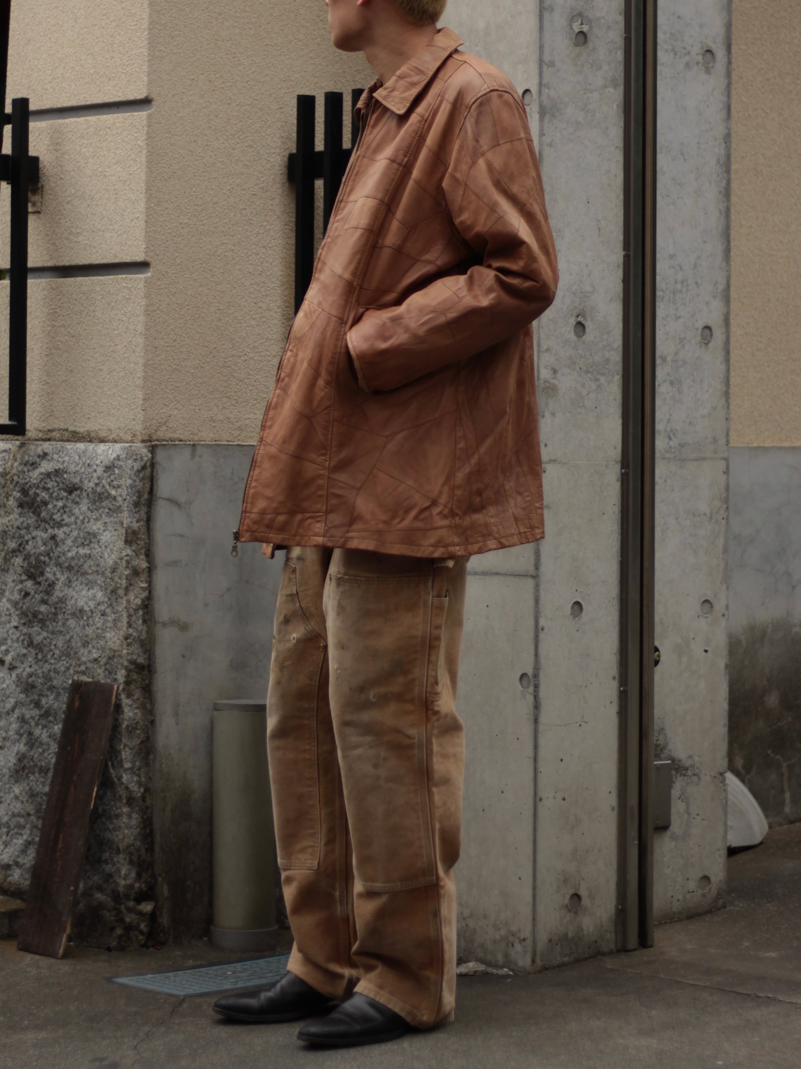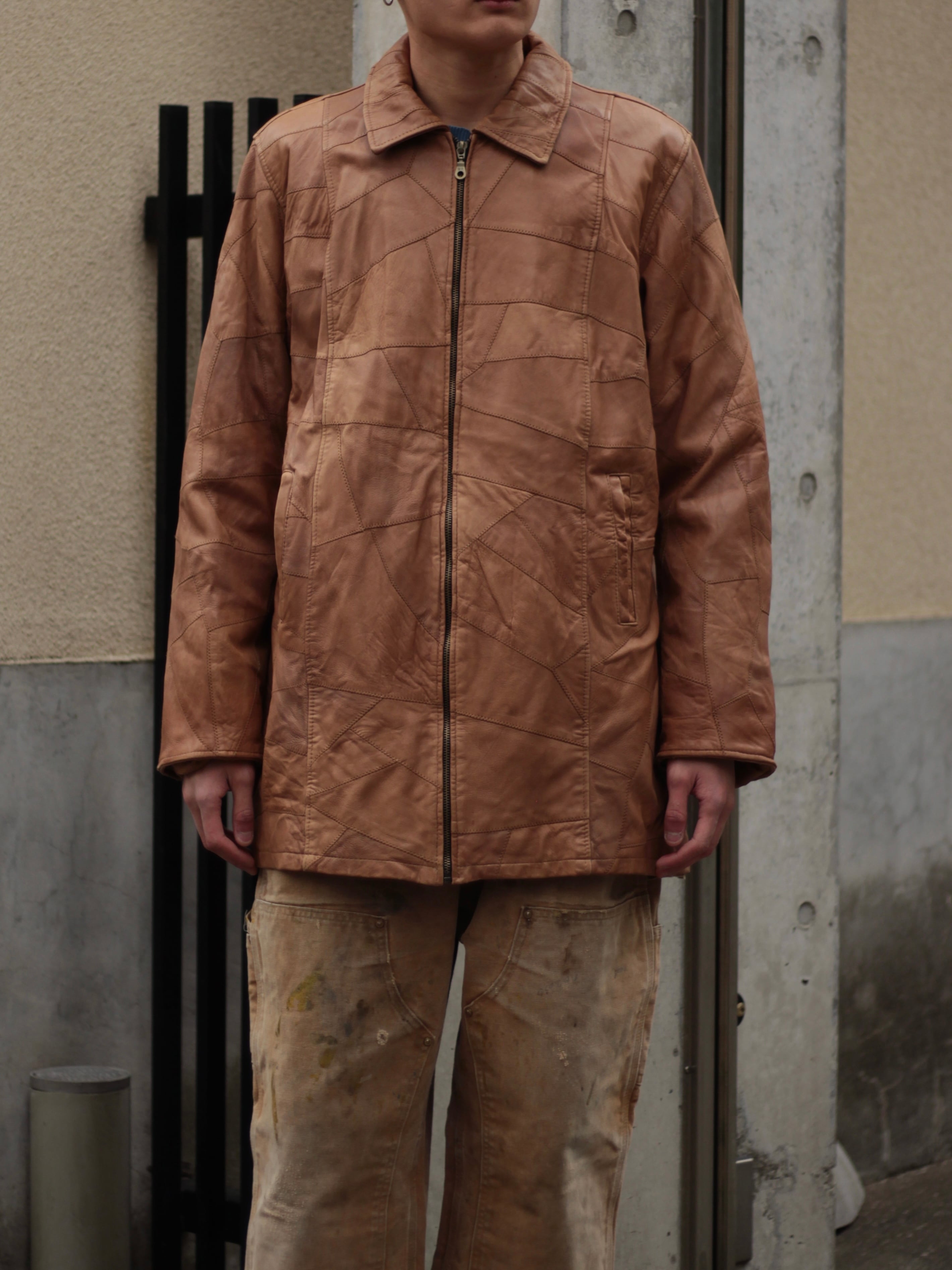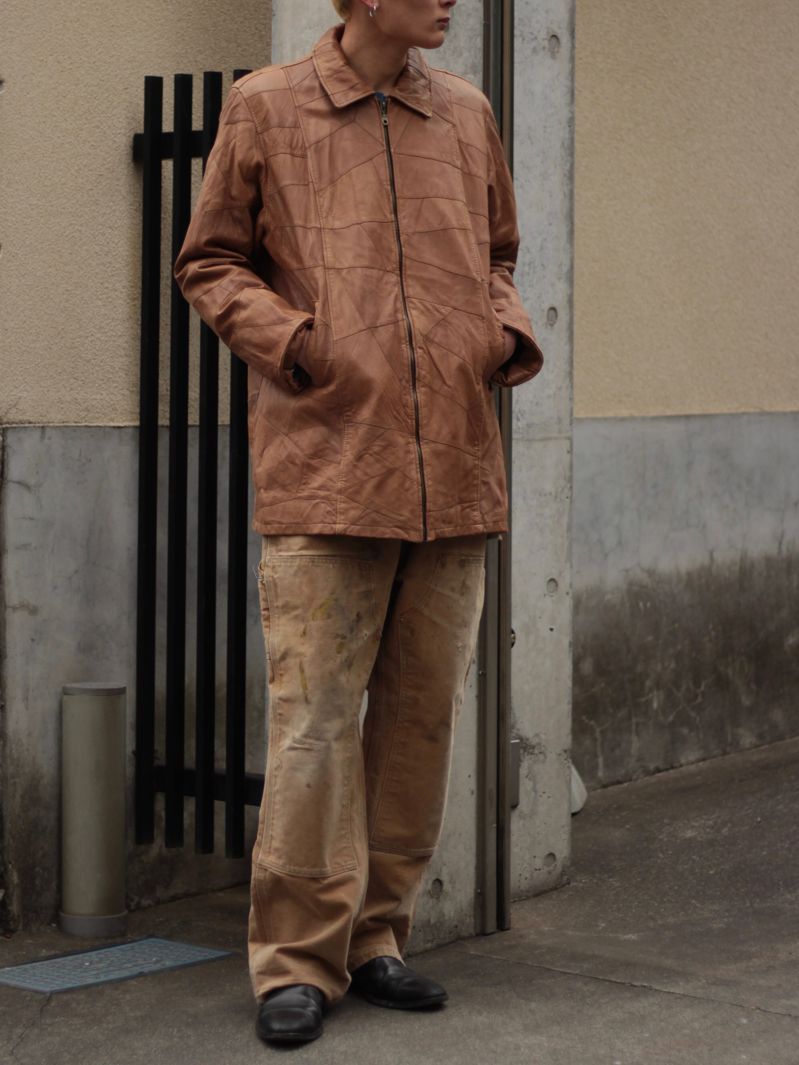 1990s vintage "Patch work design" camel color leather jacket【CU-8976】