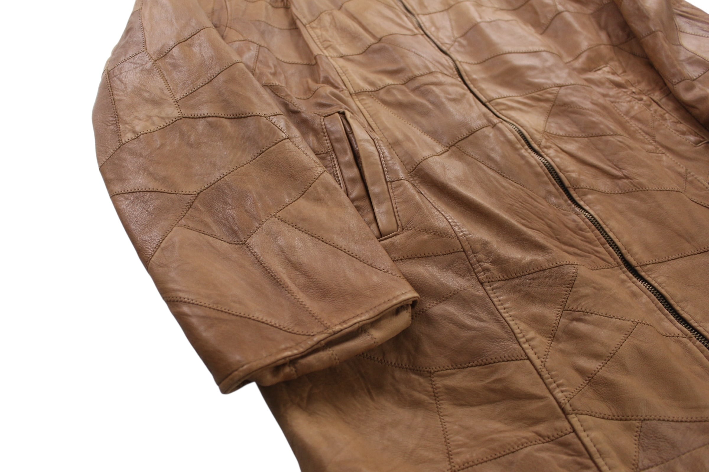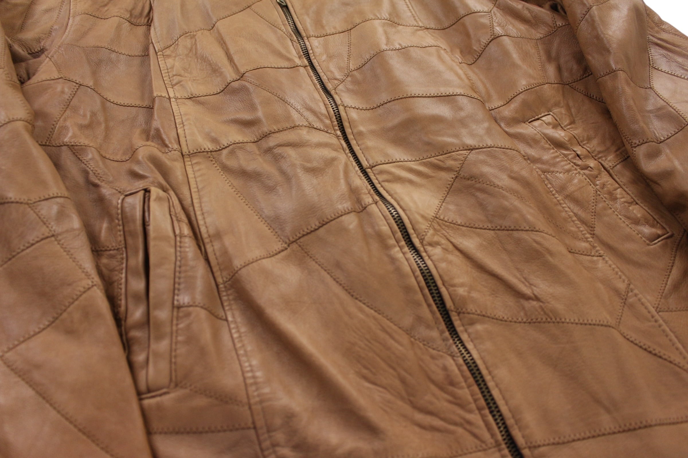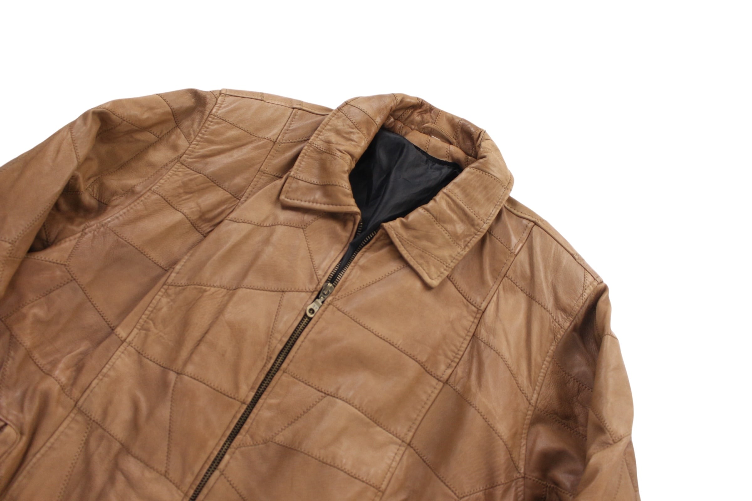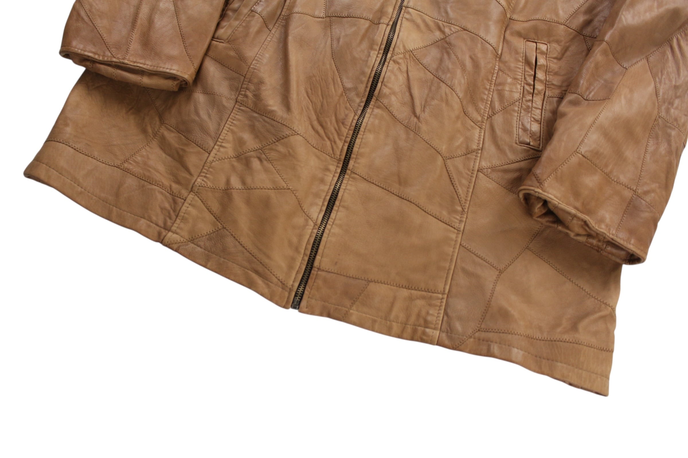 1990s vintage "Patch work design" camel color leather jacket【CU-8976】