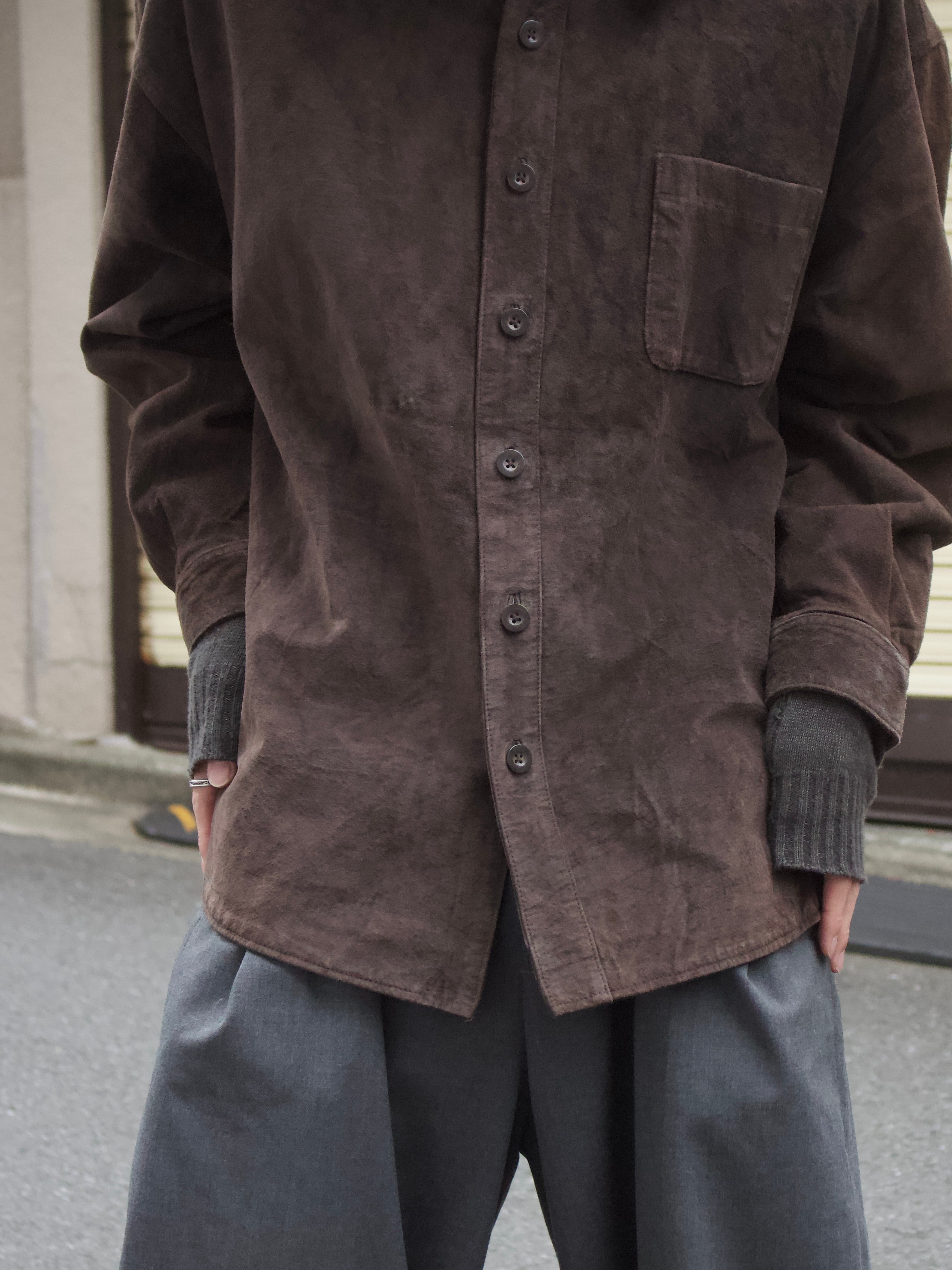しっとりとした質感が魅力のリアルスエードレザーを使用したオーバーサイズシャツ。