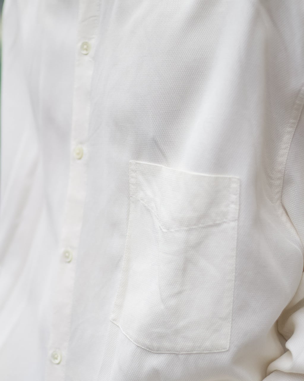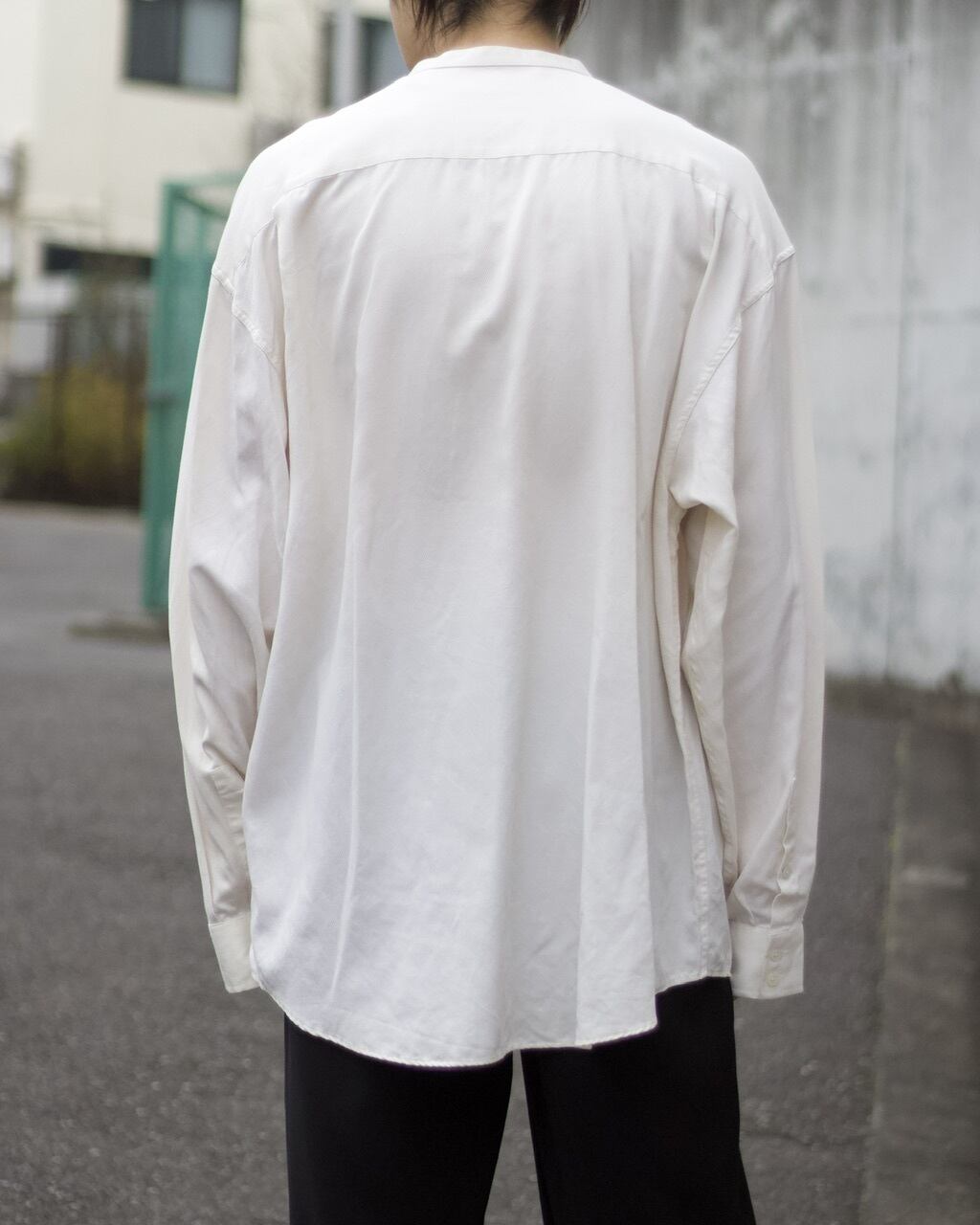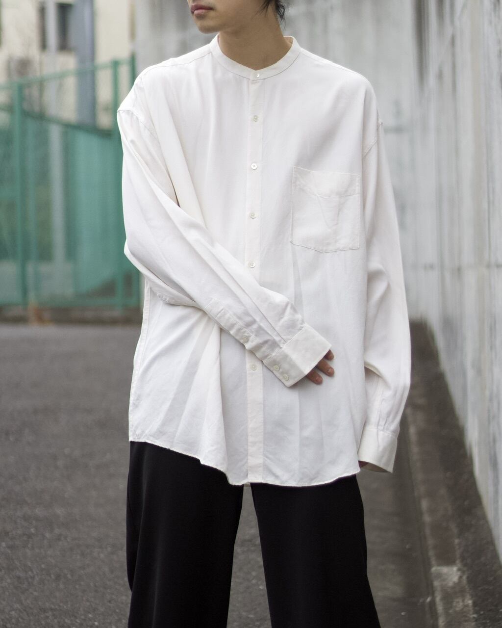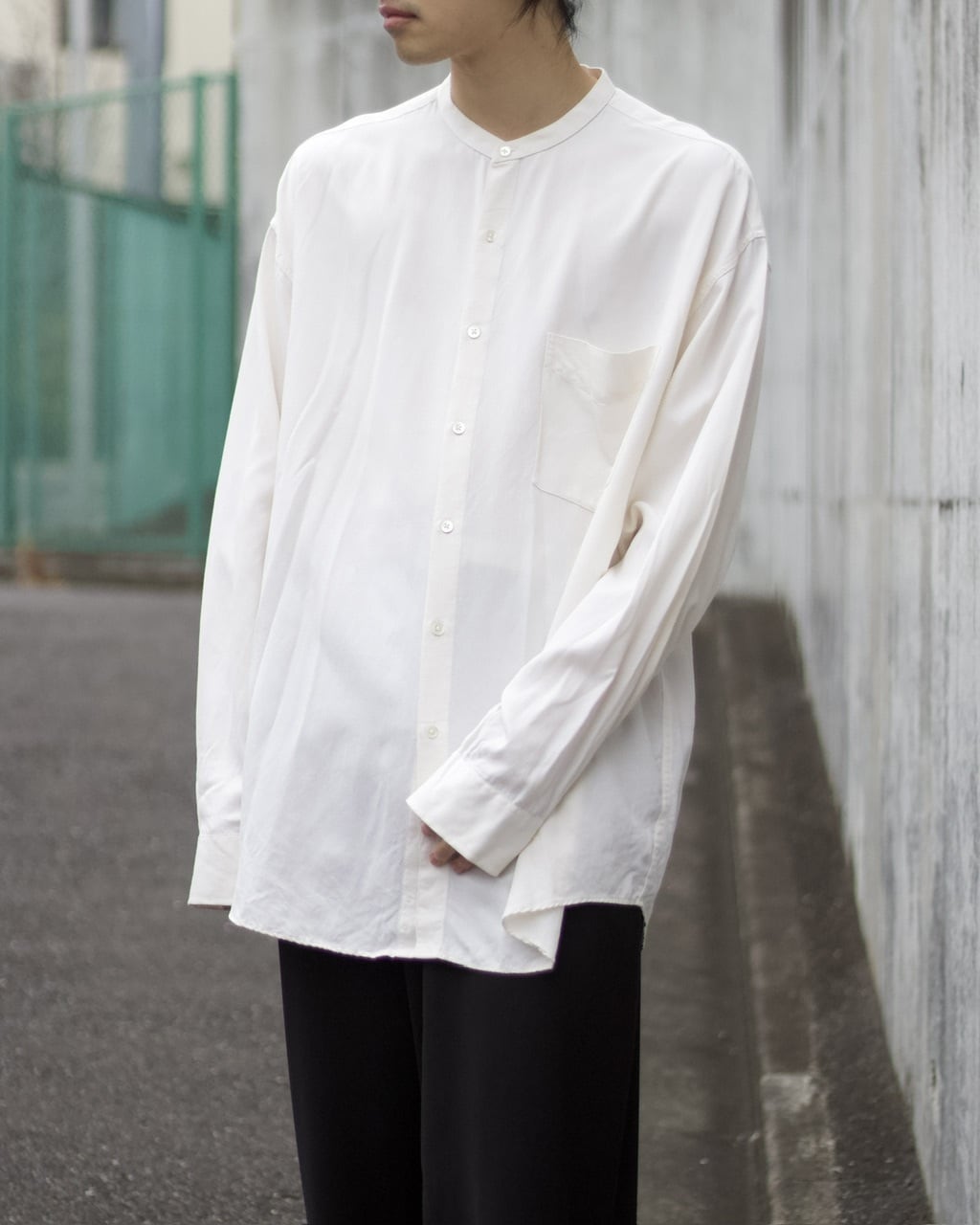 このシャツの上品な綺麗な感じをゆるっとしたサイズ感で外してあげるとグッとコーディネートが楽しくなります。