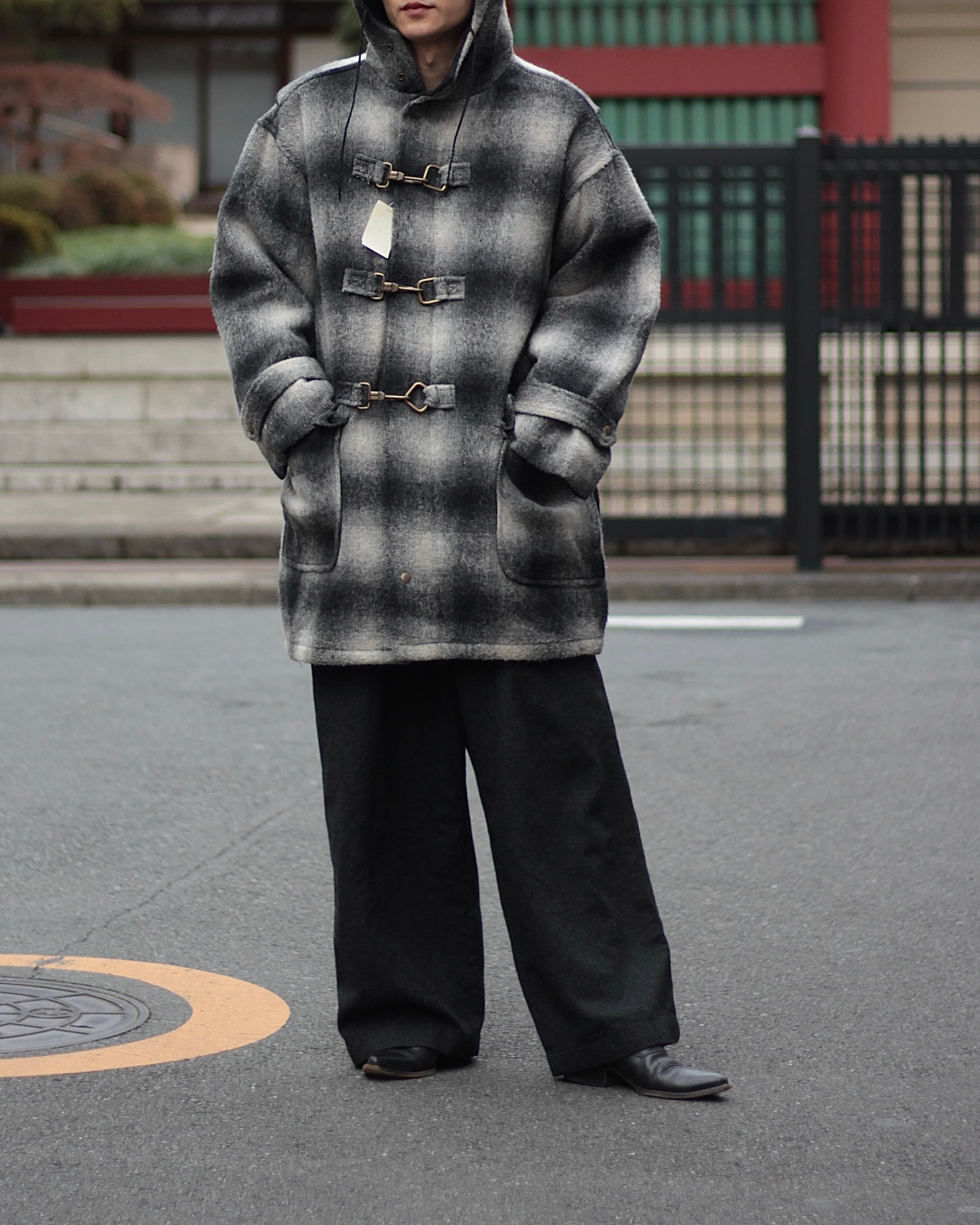 80年代頃のオンブレチェックのファイヤーマンディテールのハーフフードコート入荷しました!