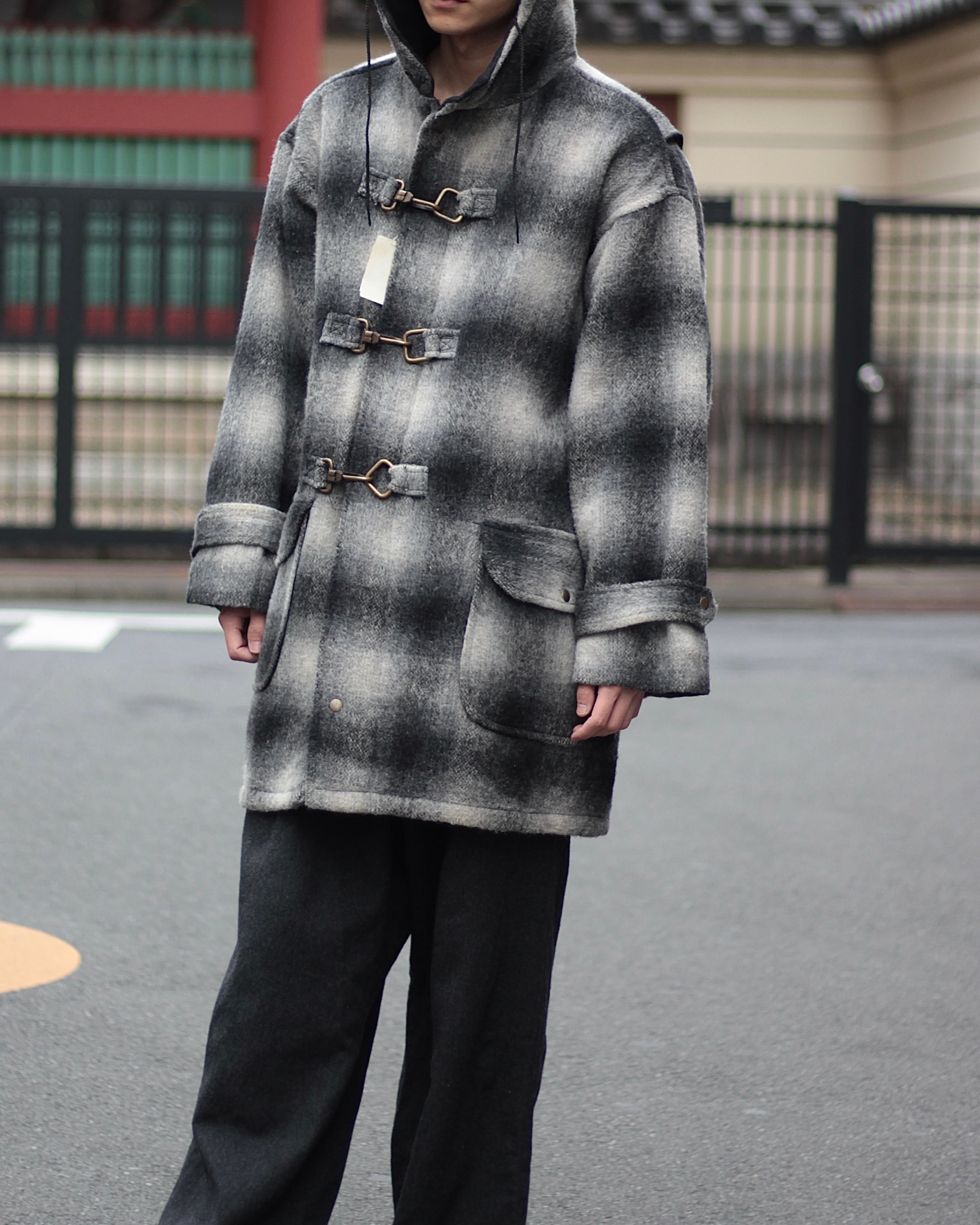 DEAD STOCK 1980’s ombre check fireman half hoodie coat 【OT-4827】