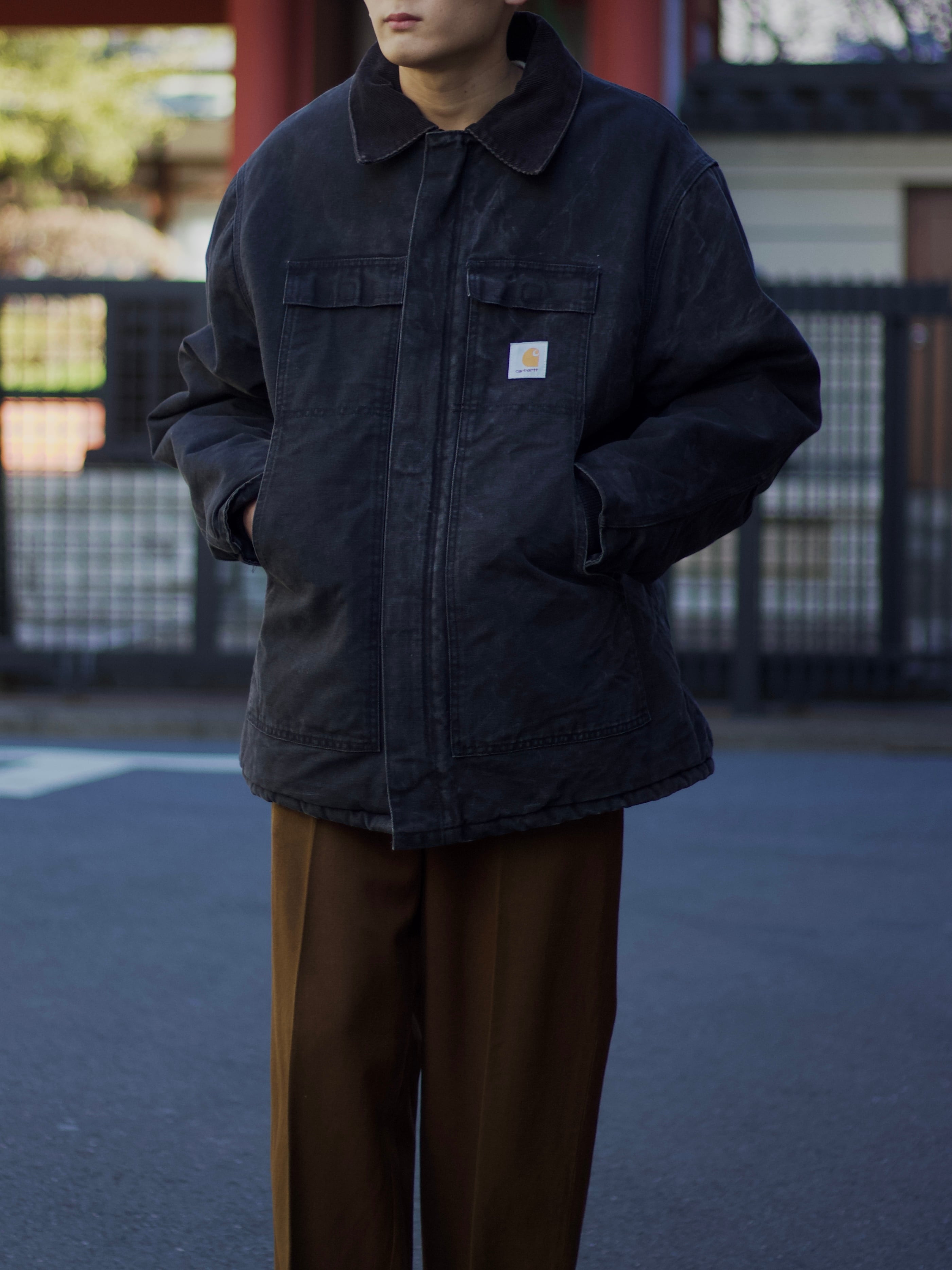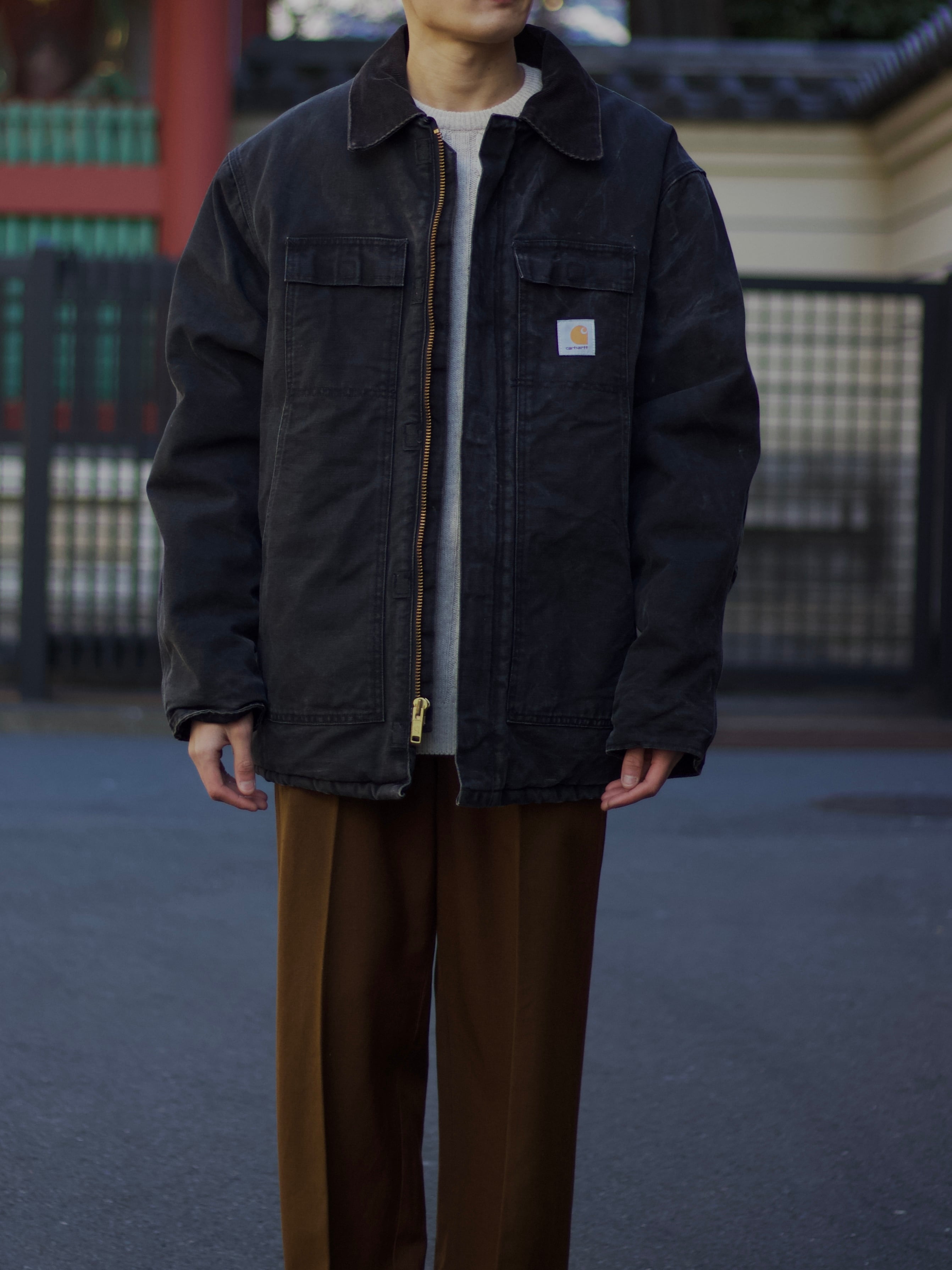 1990s vintage "Carhartt" nice sun fade black traditional coat made in usa【CU-9007】