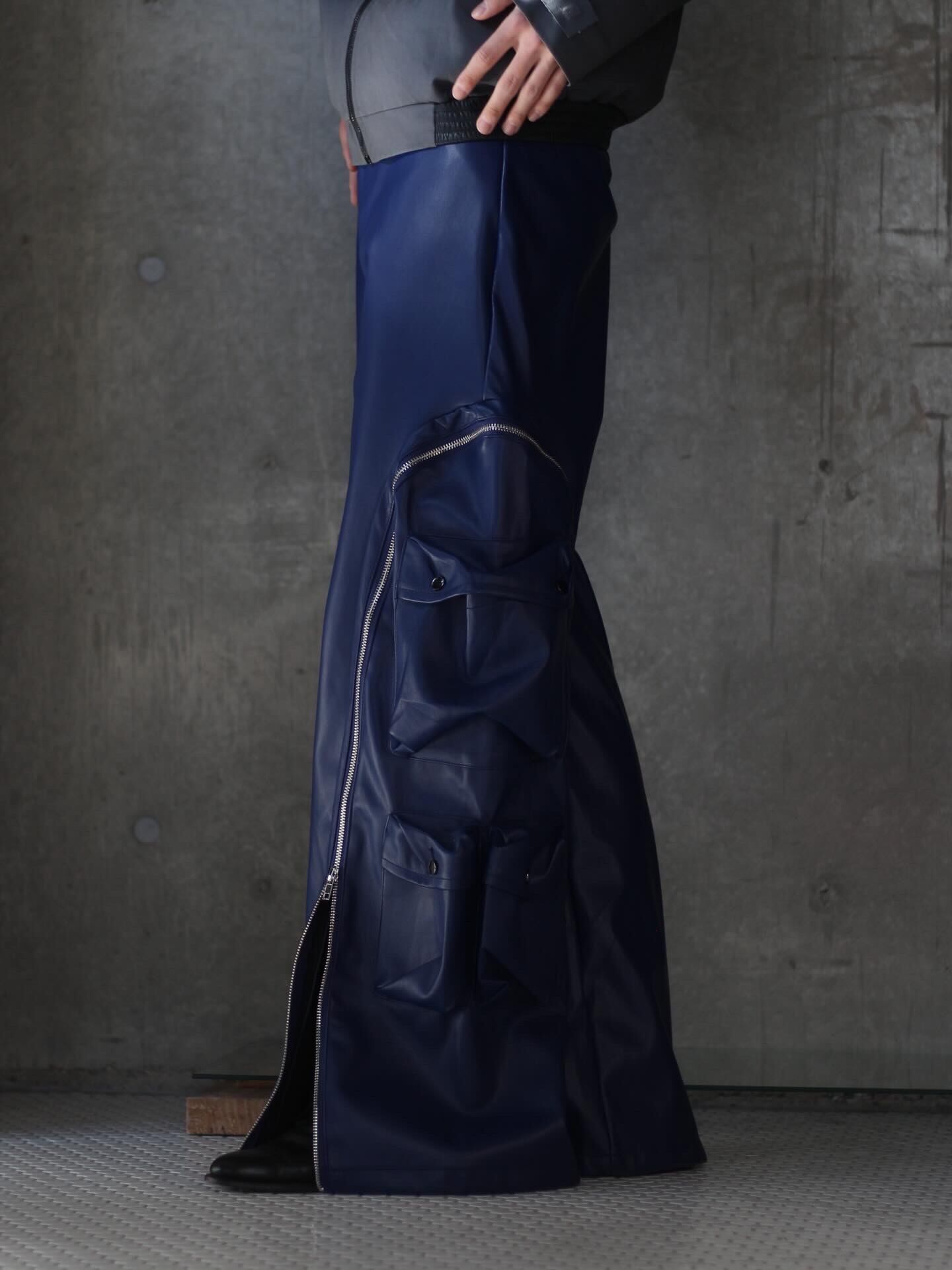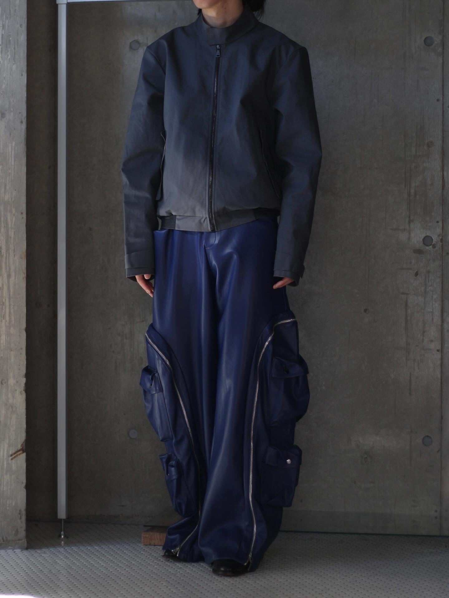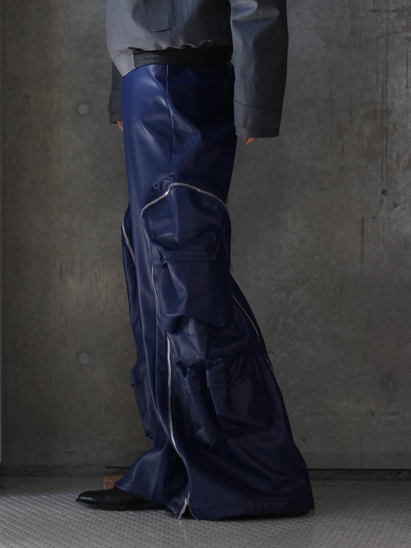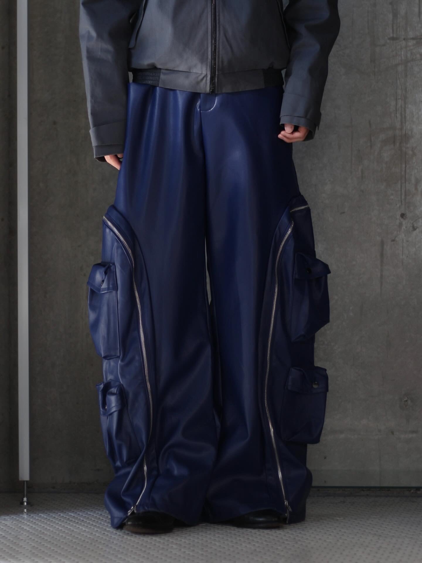 フェイクレザーのジップギミックのワイドパンツです!