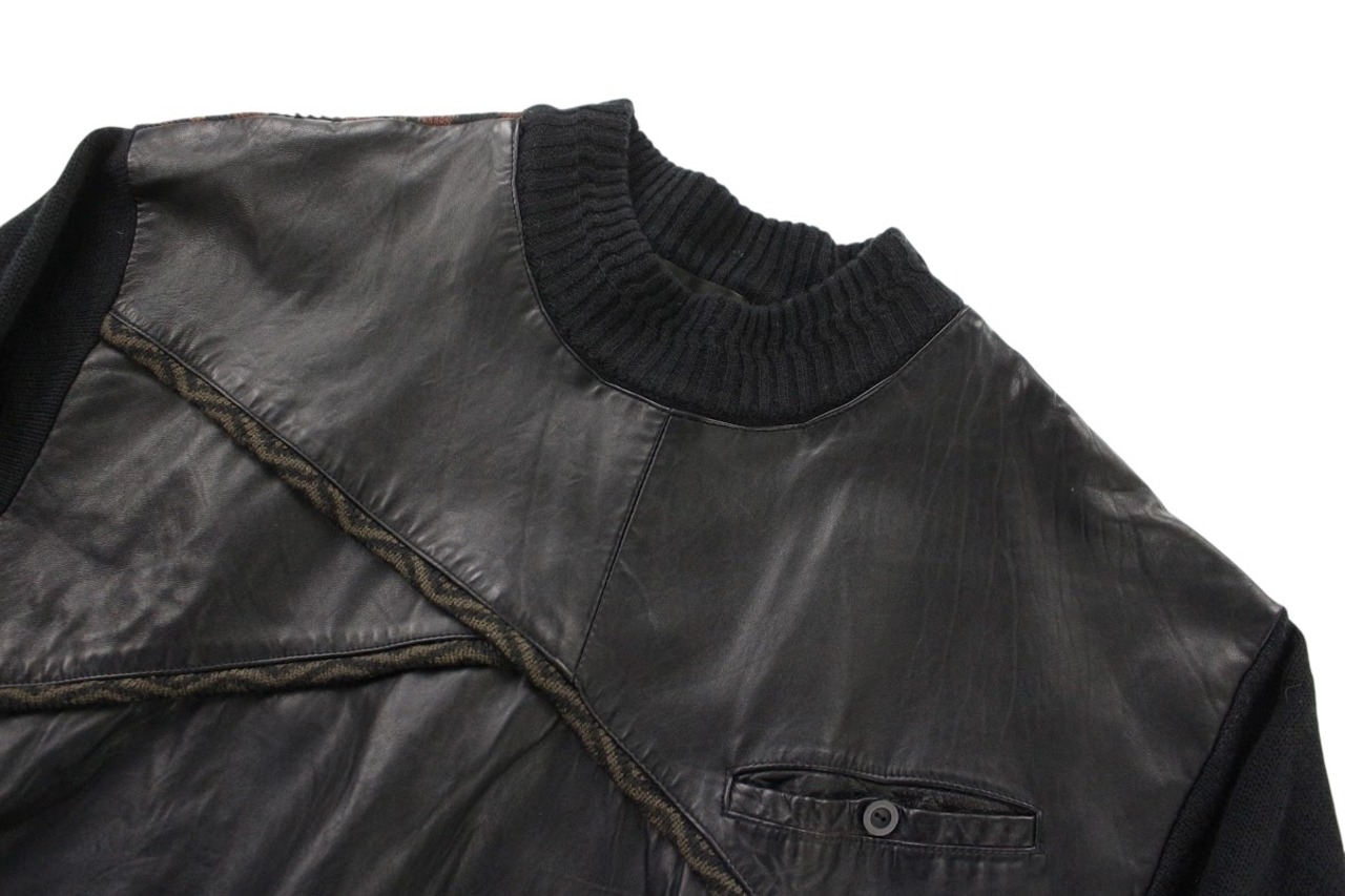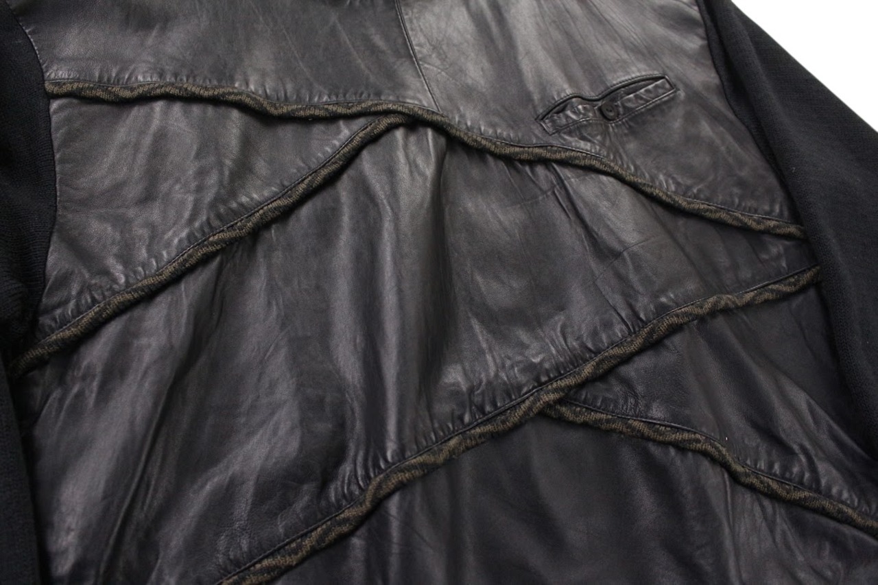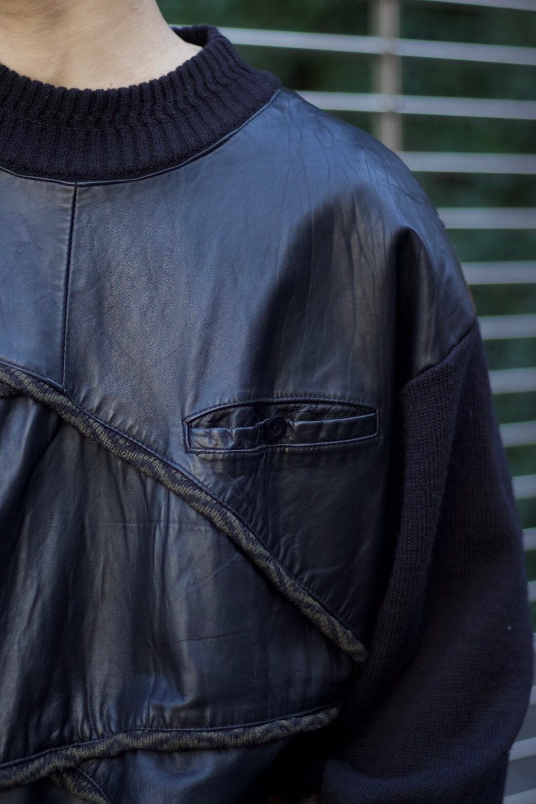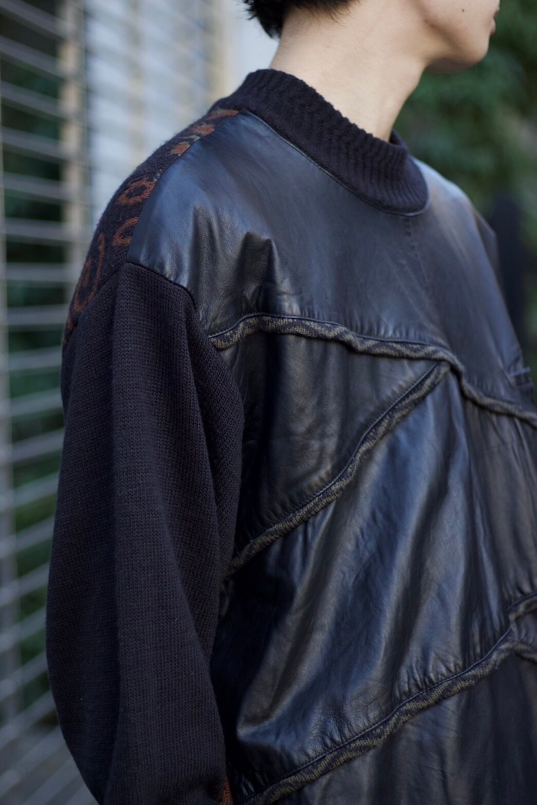 バックには、3Dニットと幾何学な柄が入っておりそこにプラスしてレザー。