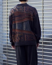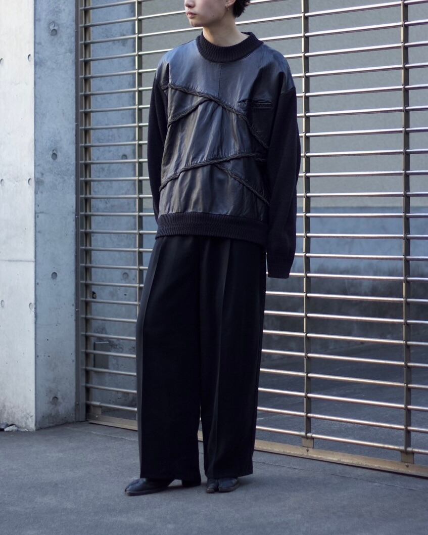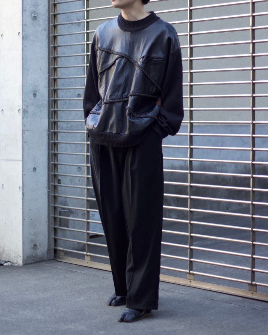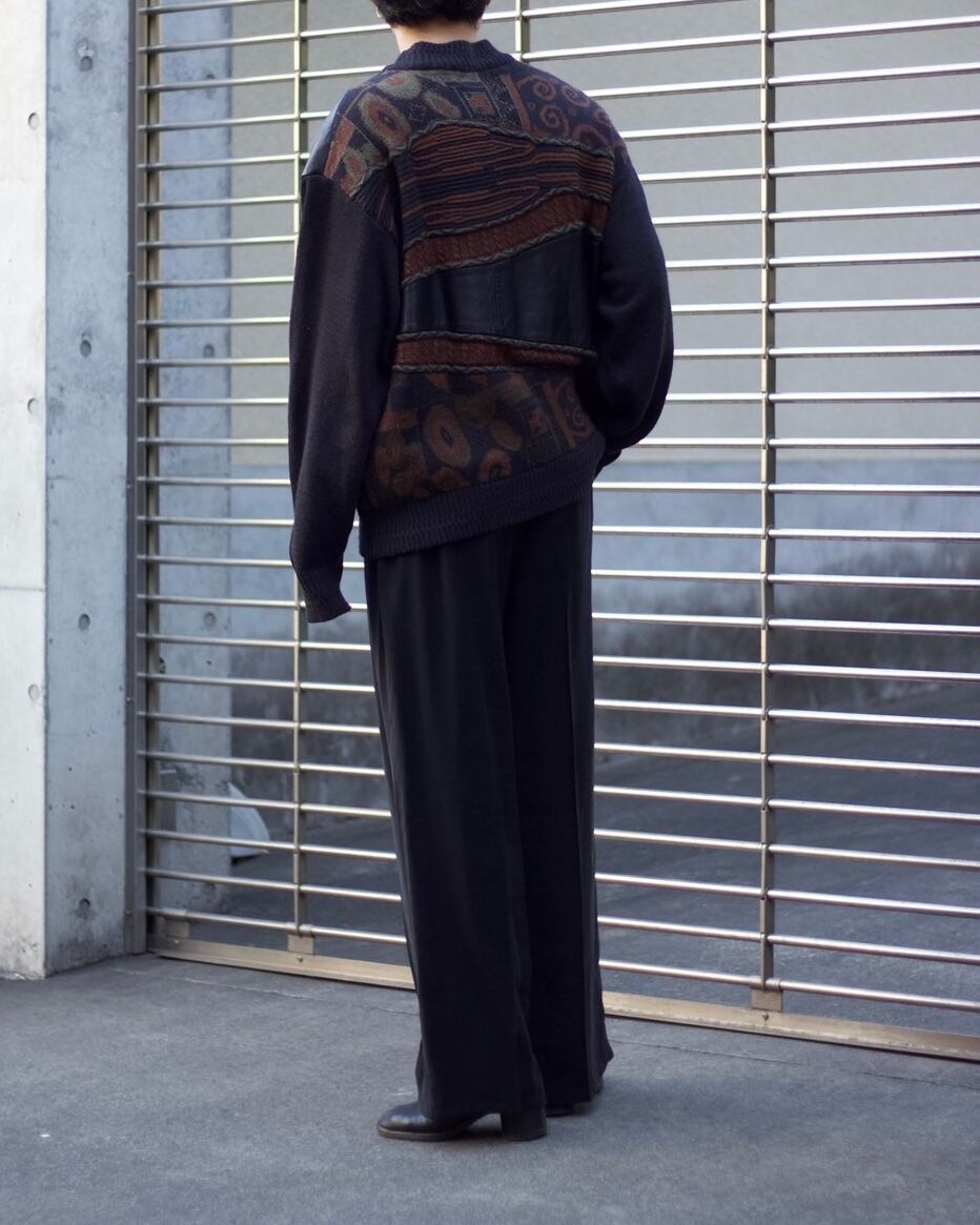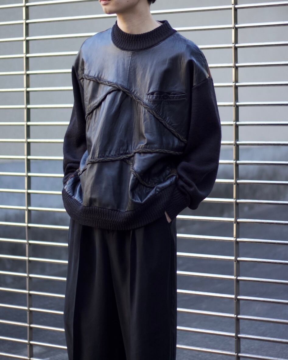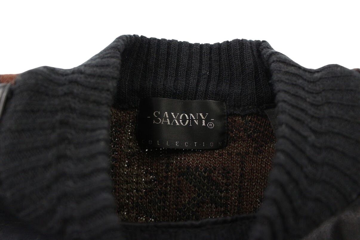 1990s SAXONY Leather-trimmed 3D knit sweater 【OT-20123】