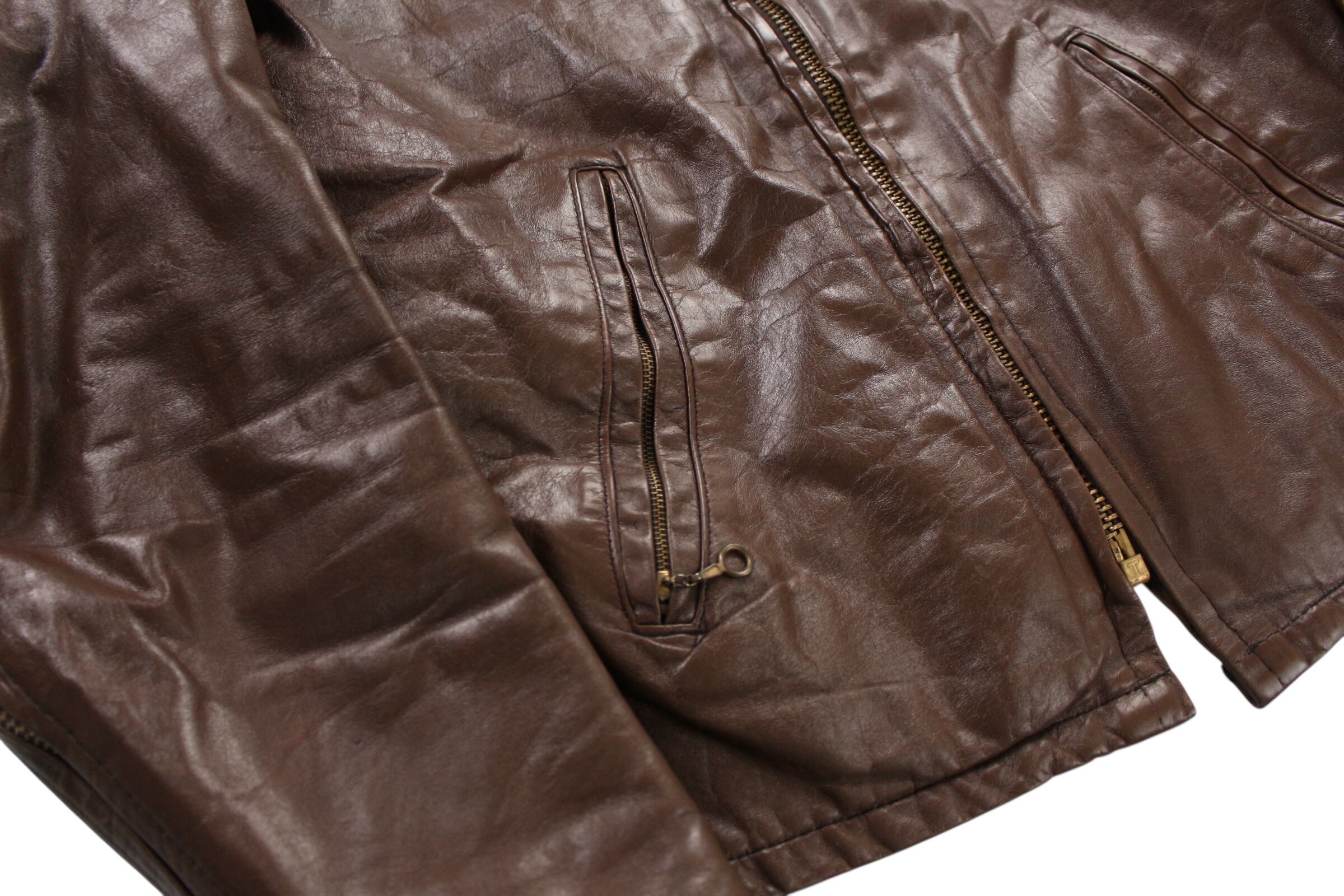 1970s vintage "THIS GENUINE LEATHER" nice aiging single leather jacket