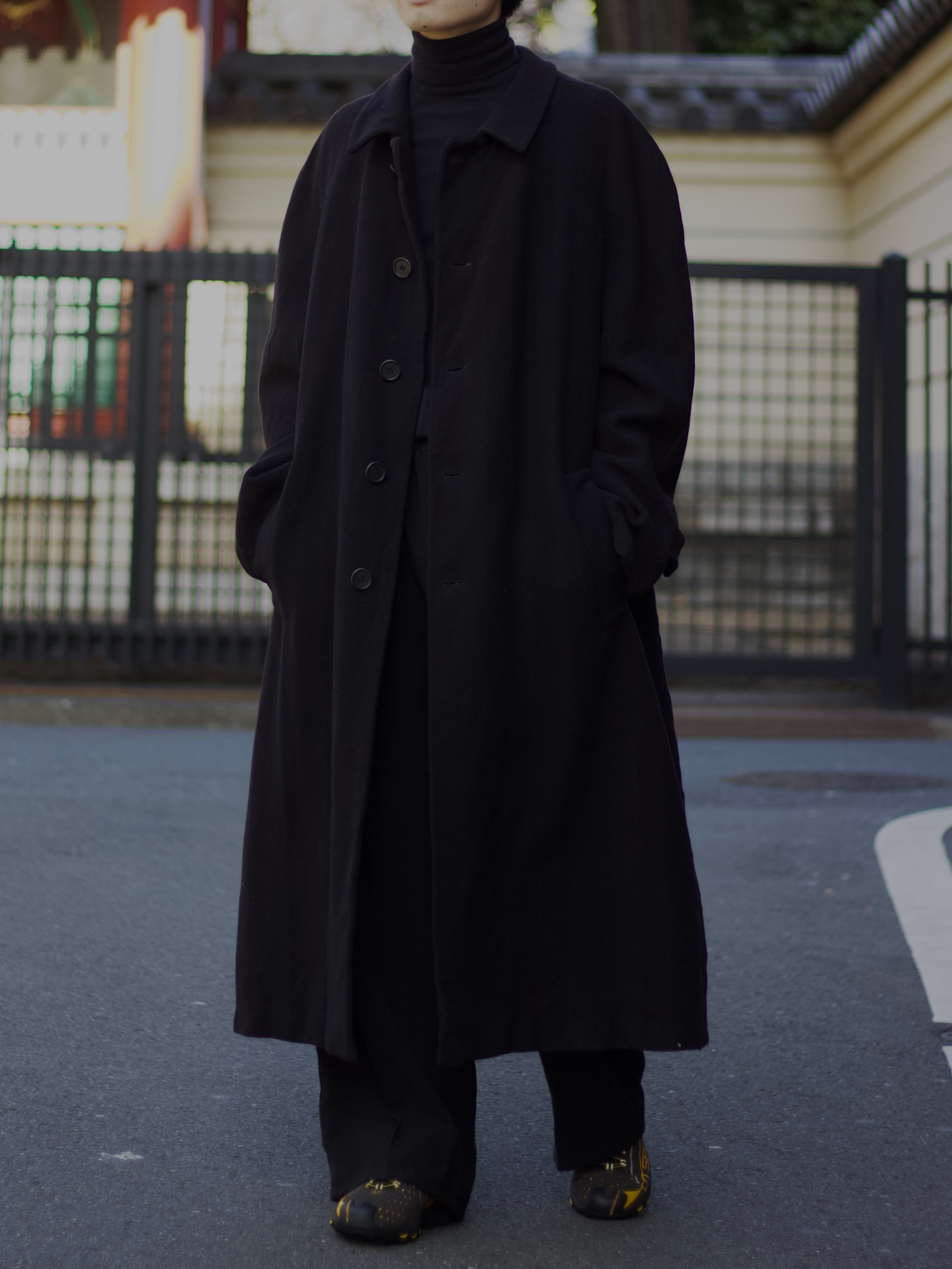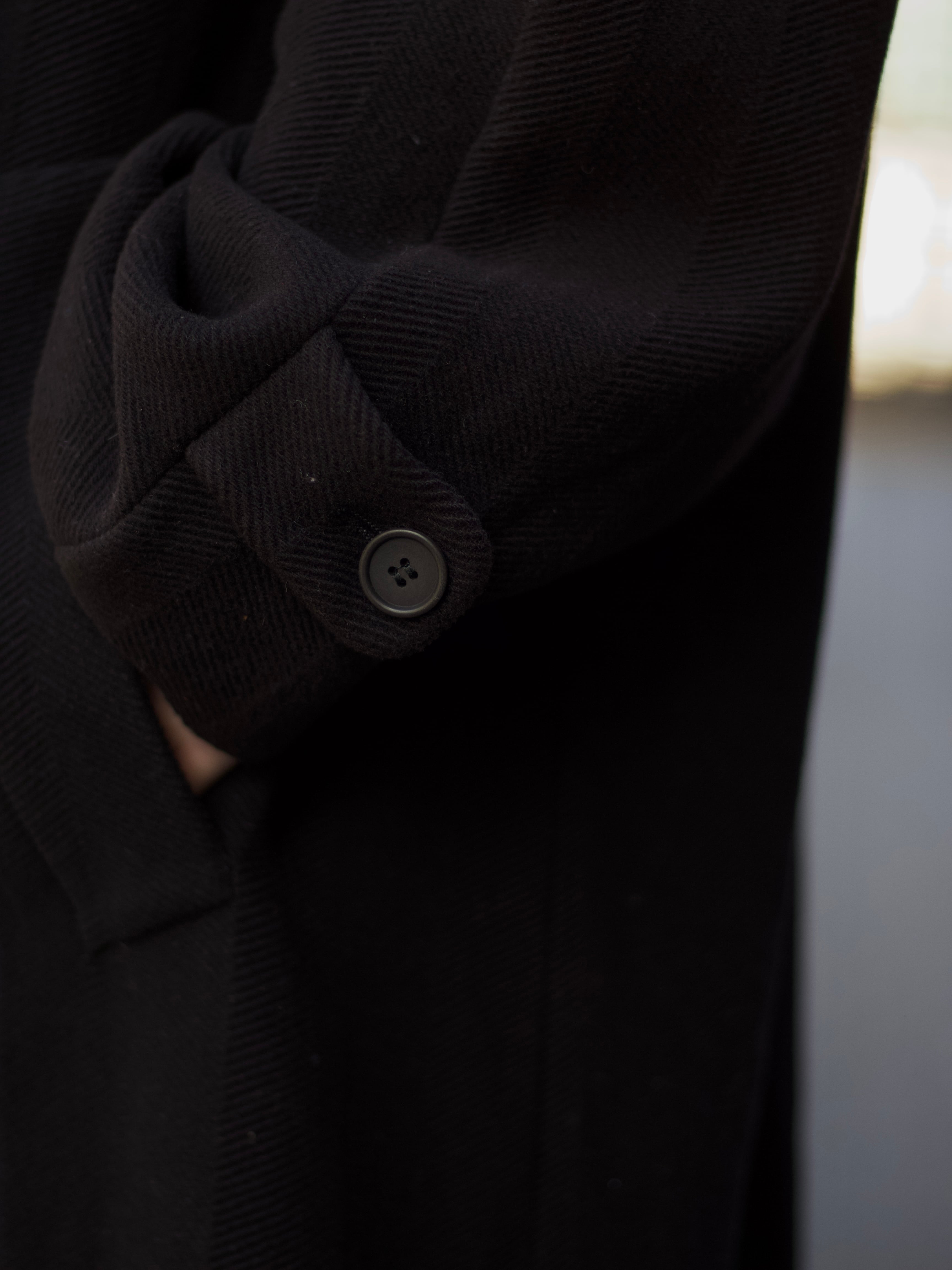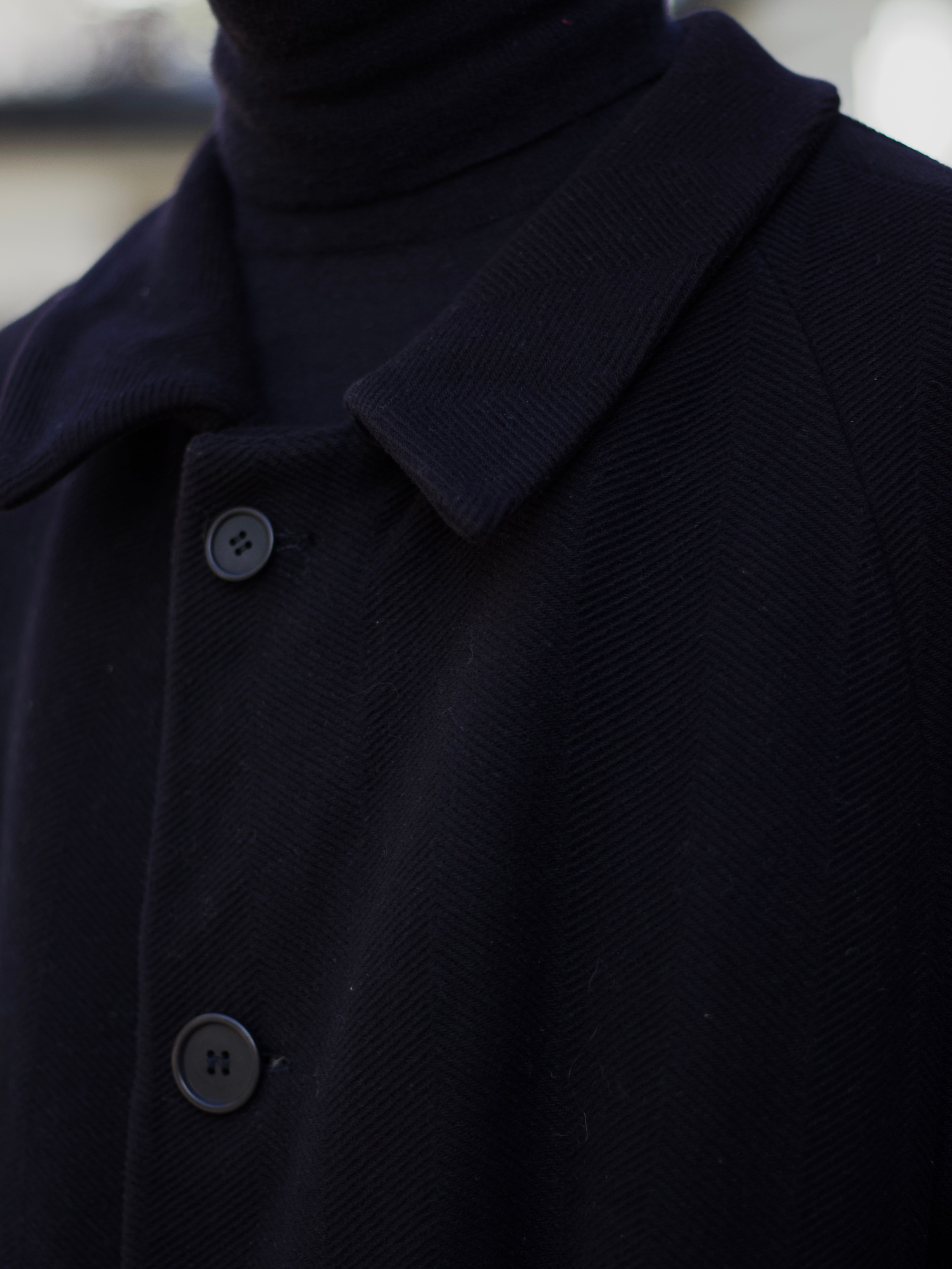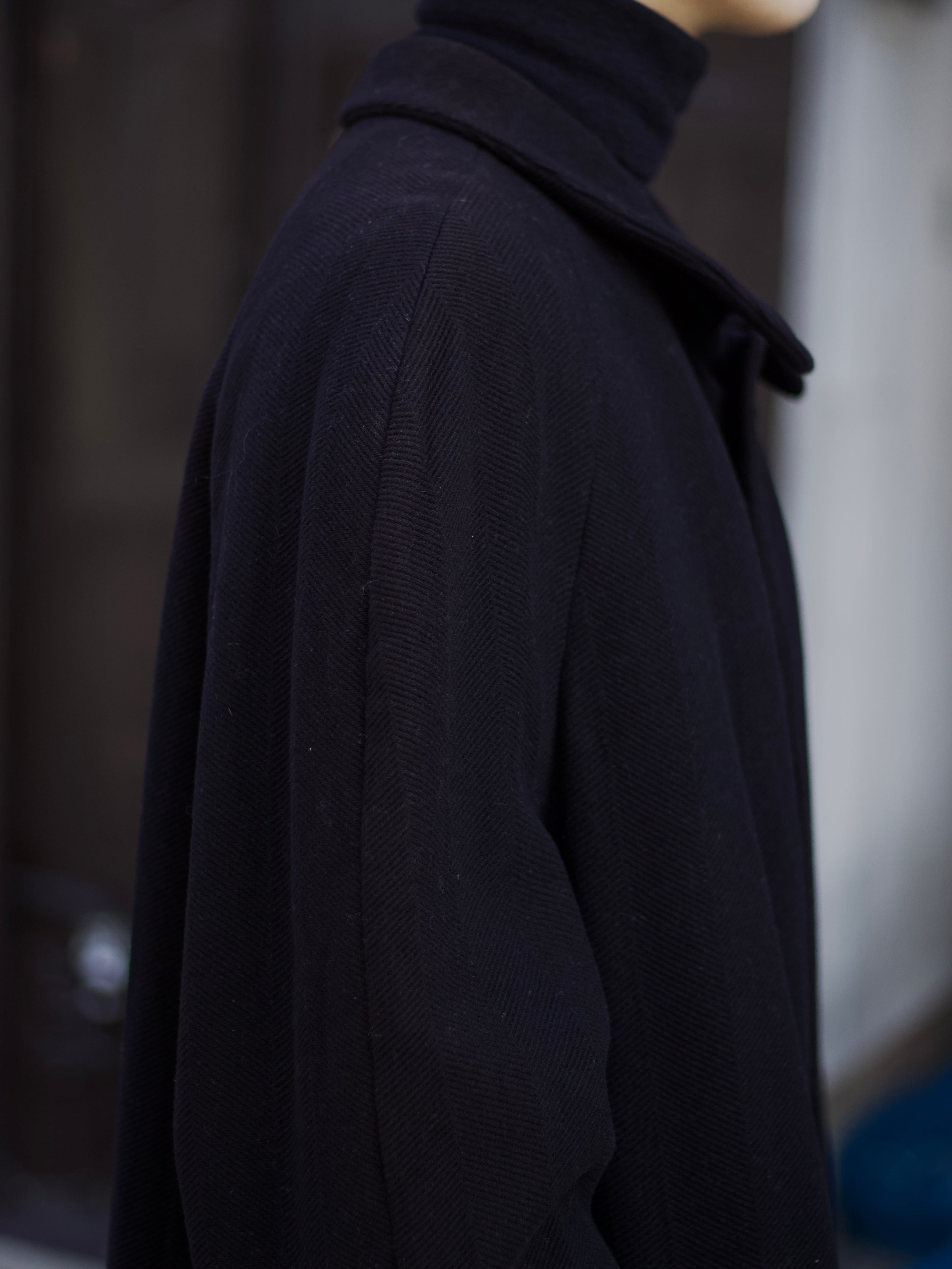 ヘリンボーン織の雰囲気は単調になりやすいブラックのコートでも差別化ができますし、ブラックカラーのコートをお持ちの方でも欲しいと思いますね〜