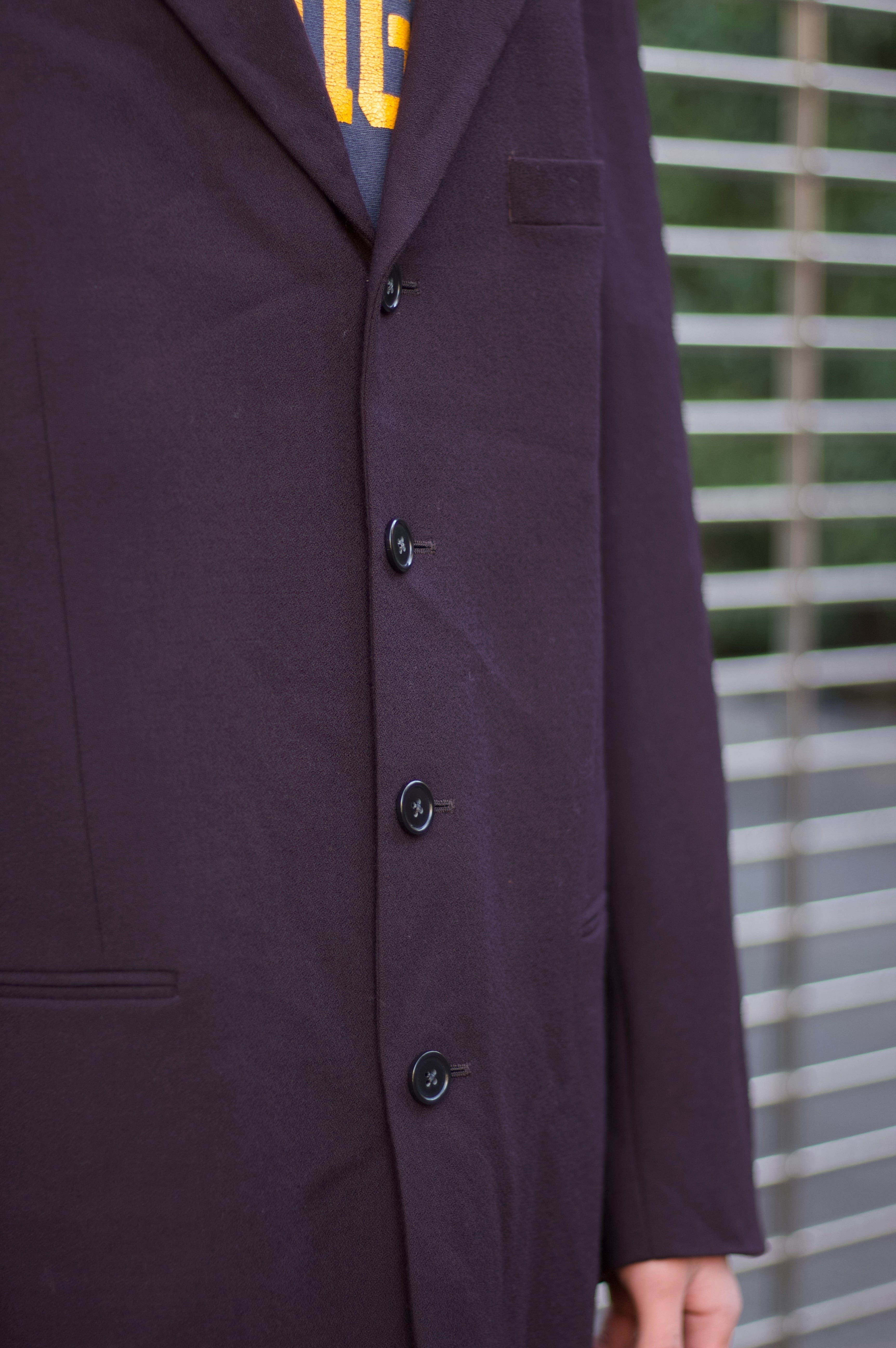 フロントは4ボタンのシングル仕様で2,3ボタンよりもクラシックで絶妙なバランス。