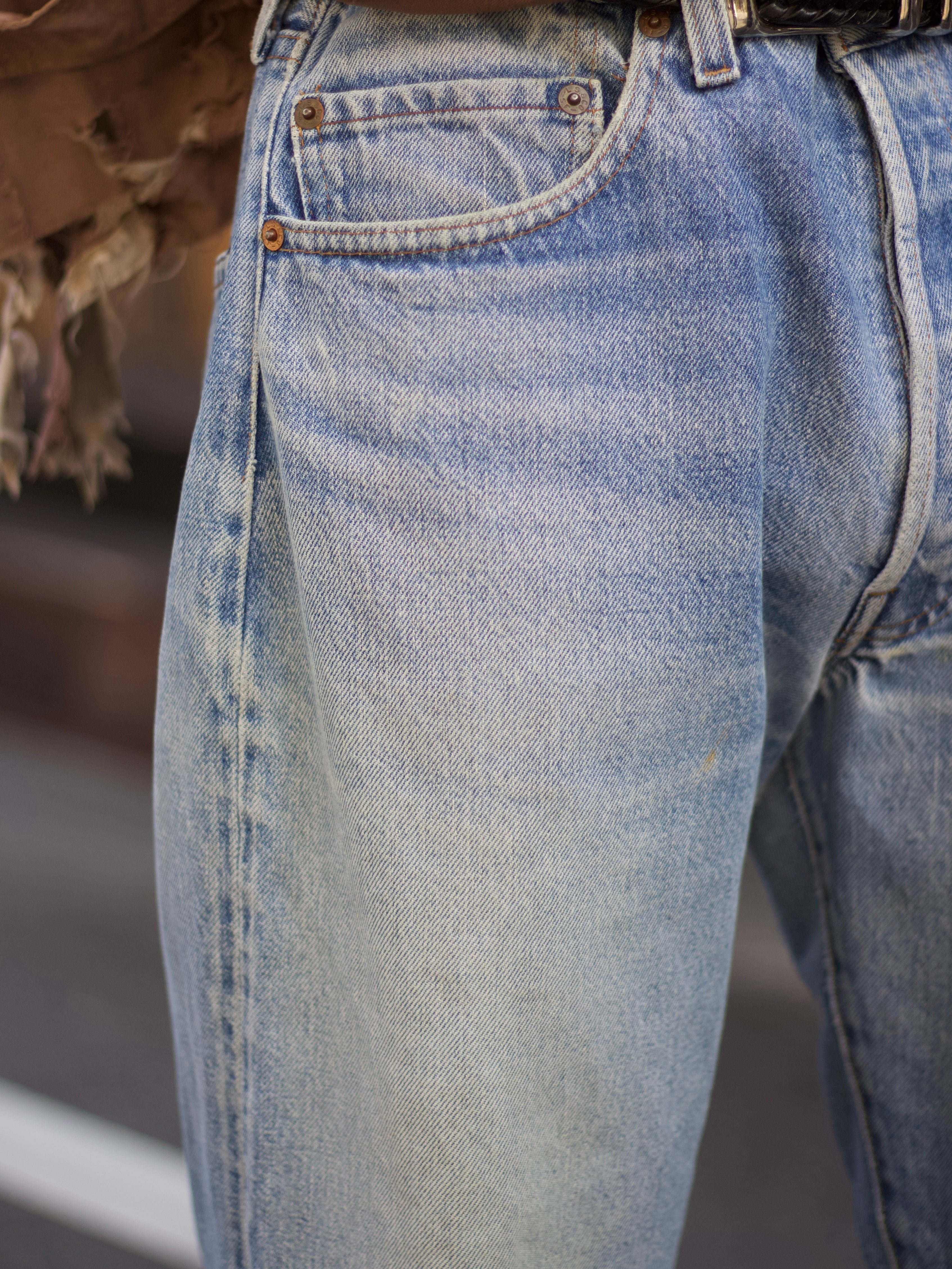 自然な縦落ちとヒゲが入り、問題なくリアルヴィンテージの風合いに育っています。
