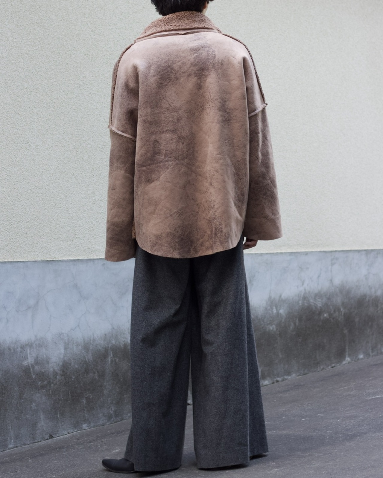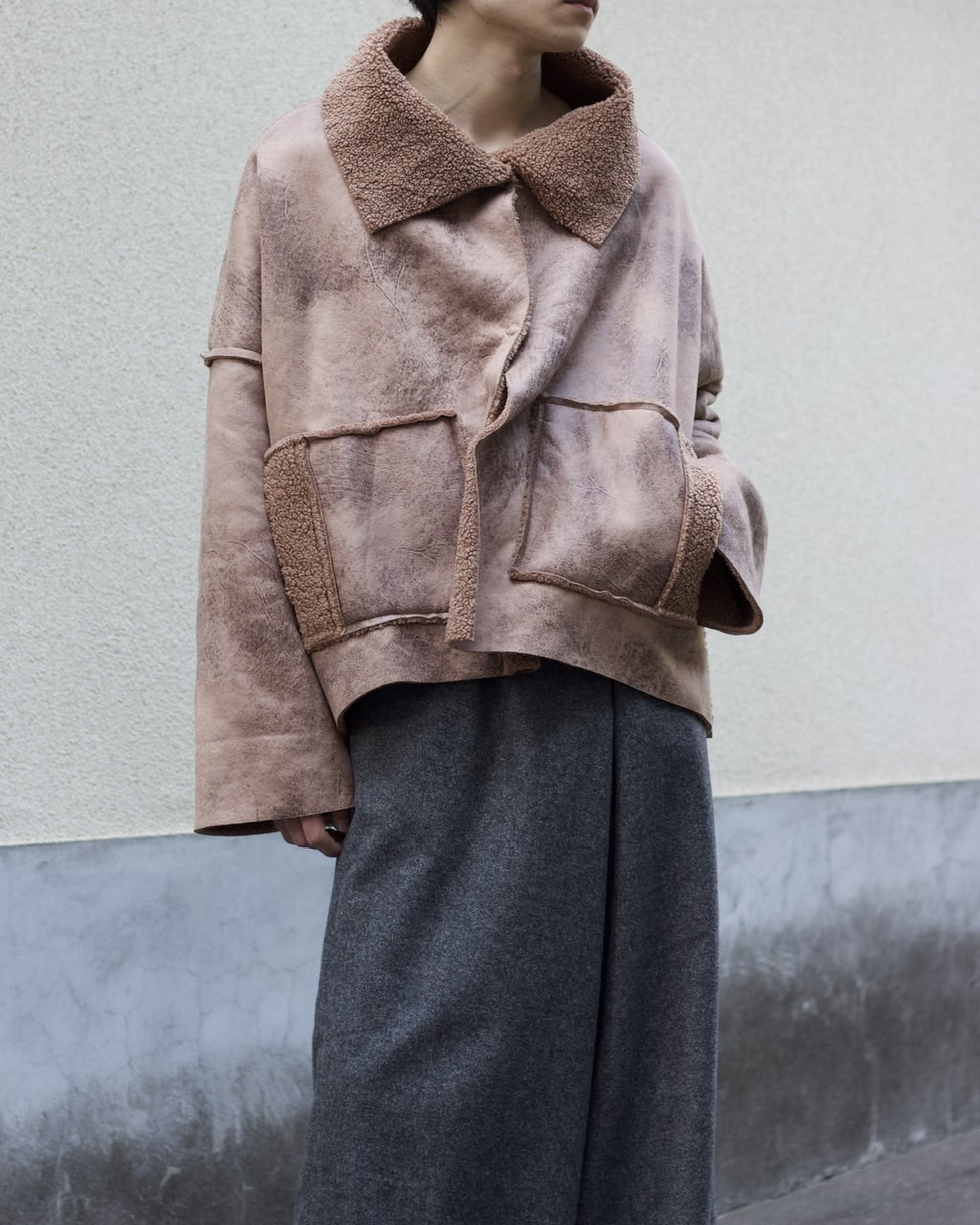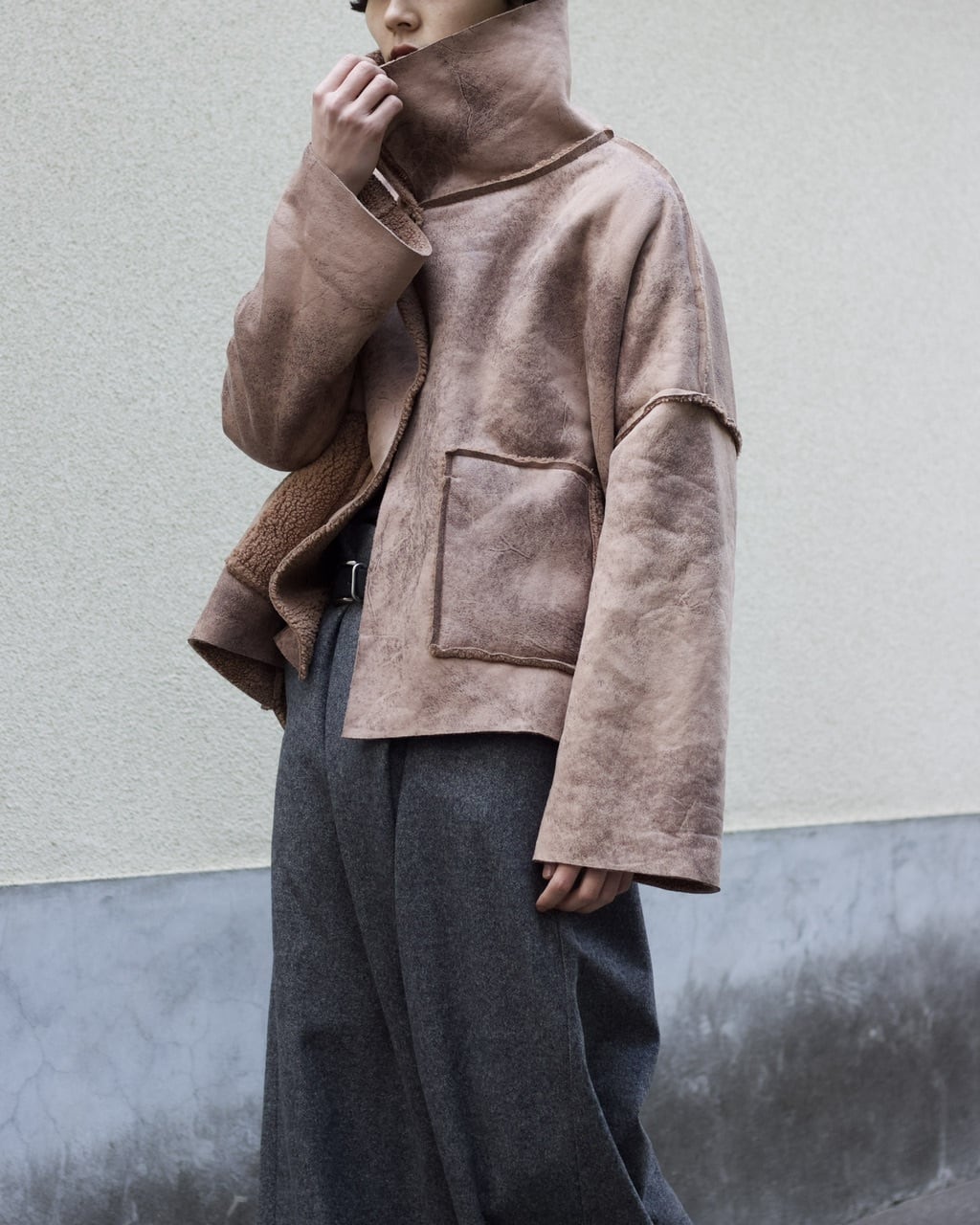リアルムートンだとかなり重くて扱いづらいところを軽くてさらに、現代的なファッションに昇華させたようなお洋服!