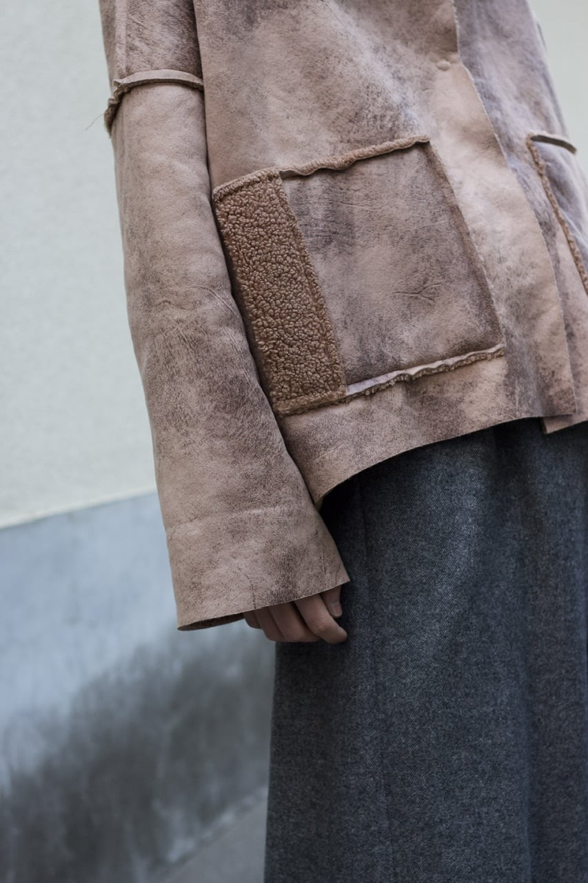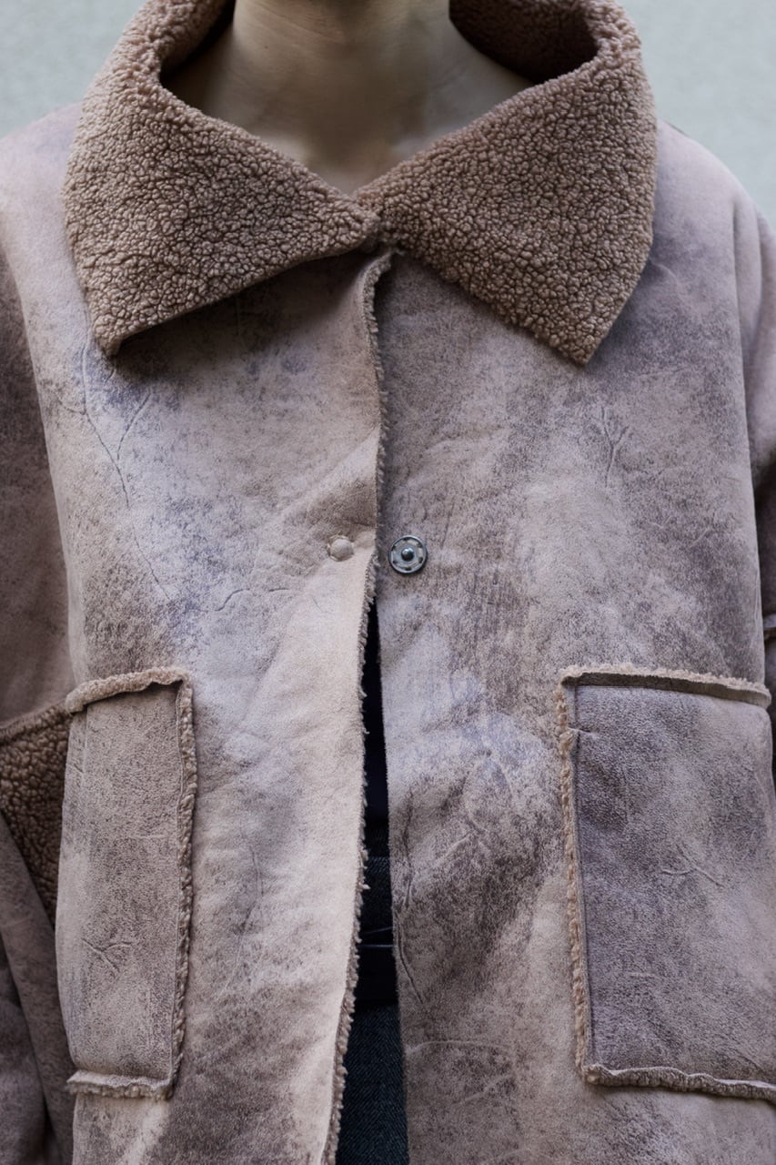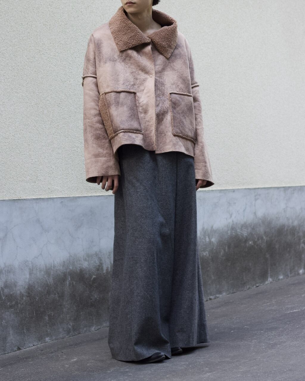 リアルムートンだとかなり重くて扱いづらいところを軽くてさらに、現代的なファッションに昇華させたようなお洋服!
