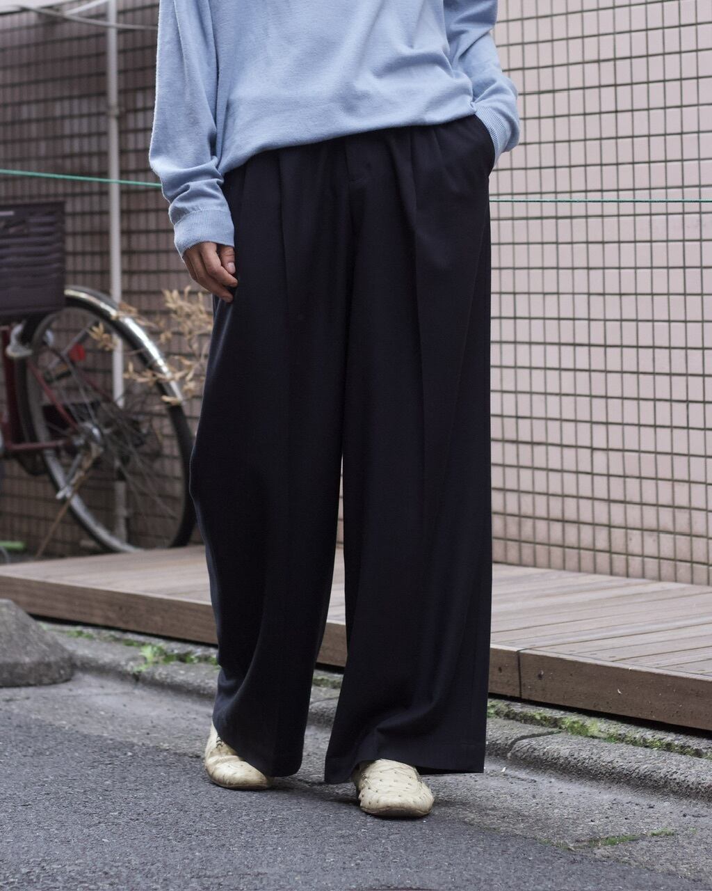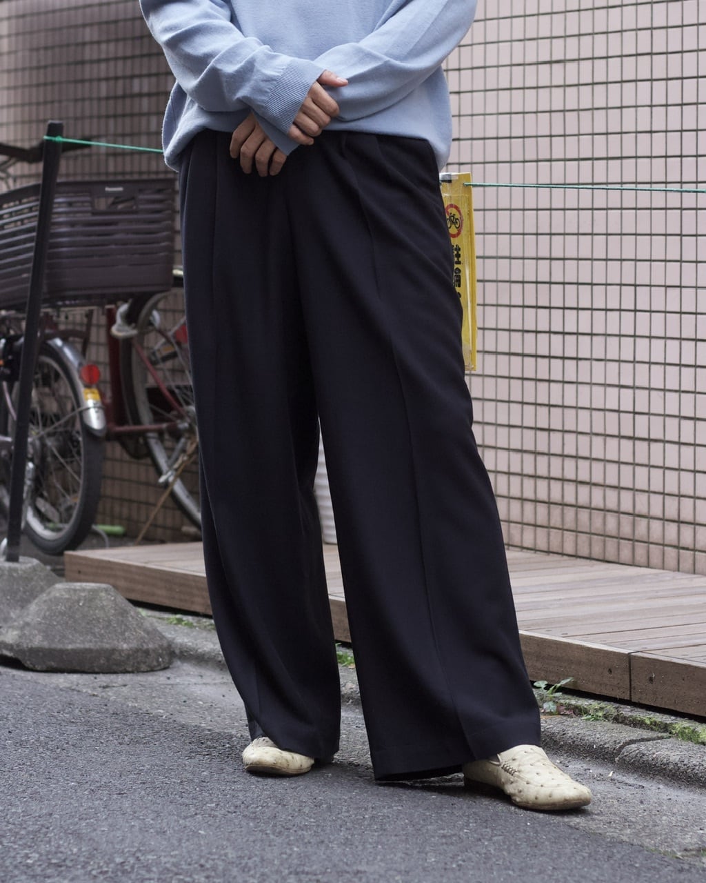 2タックのワイドストレートシルエット。