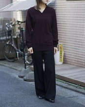 こちらは逆にモードな雰囲気でメンズでも履けちゃう1着かなぁと思います。 スラックス感覚で履ける楽ちんなパンツですね。